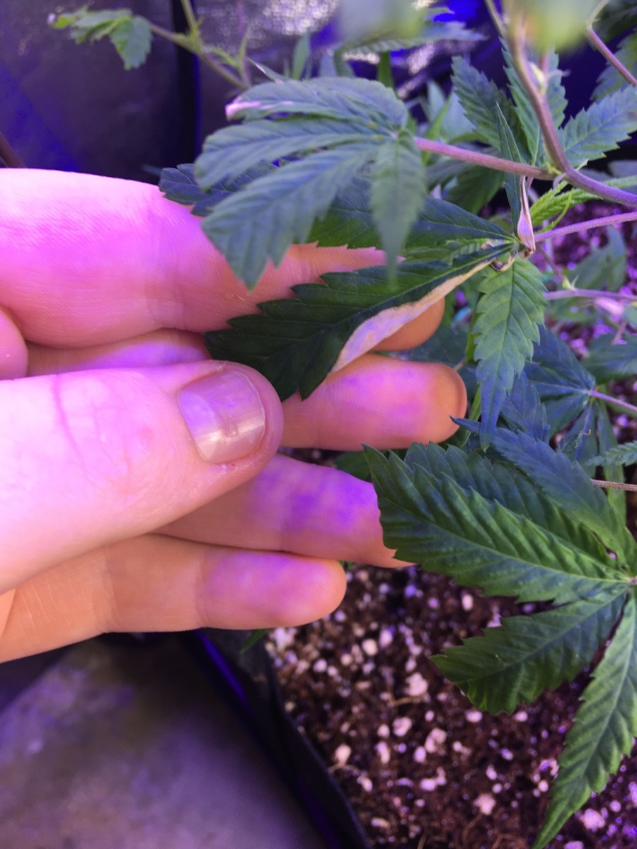 I have 5 plants all in coco coir and perlite. I watered them this morning (second time watering them and first time I used nutrients so this time I only used calimag) and since I got them they've had small brown burn marks but it can't be my light as it's 24" away and my cfl t5 light is 4" away, but even if it was that light the plants on the opposite side of the tent which are 12" away from it (t5 is on it's side to the right) have the same symptoms. Any idea of what's happening? Nutes are cali mag and the flora trio, should I just clip the leaves? thanks