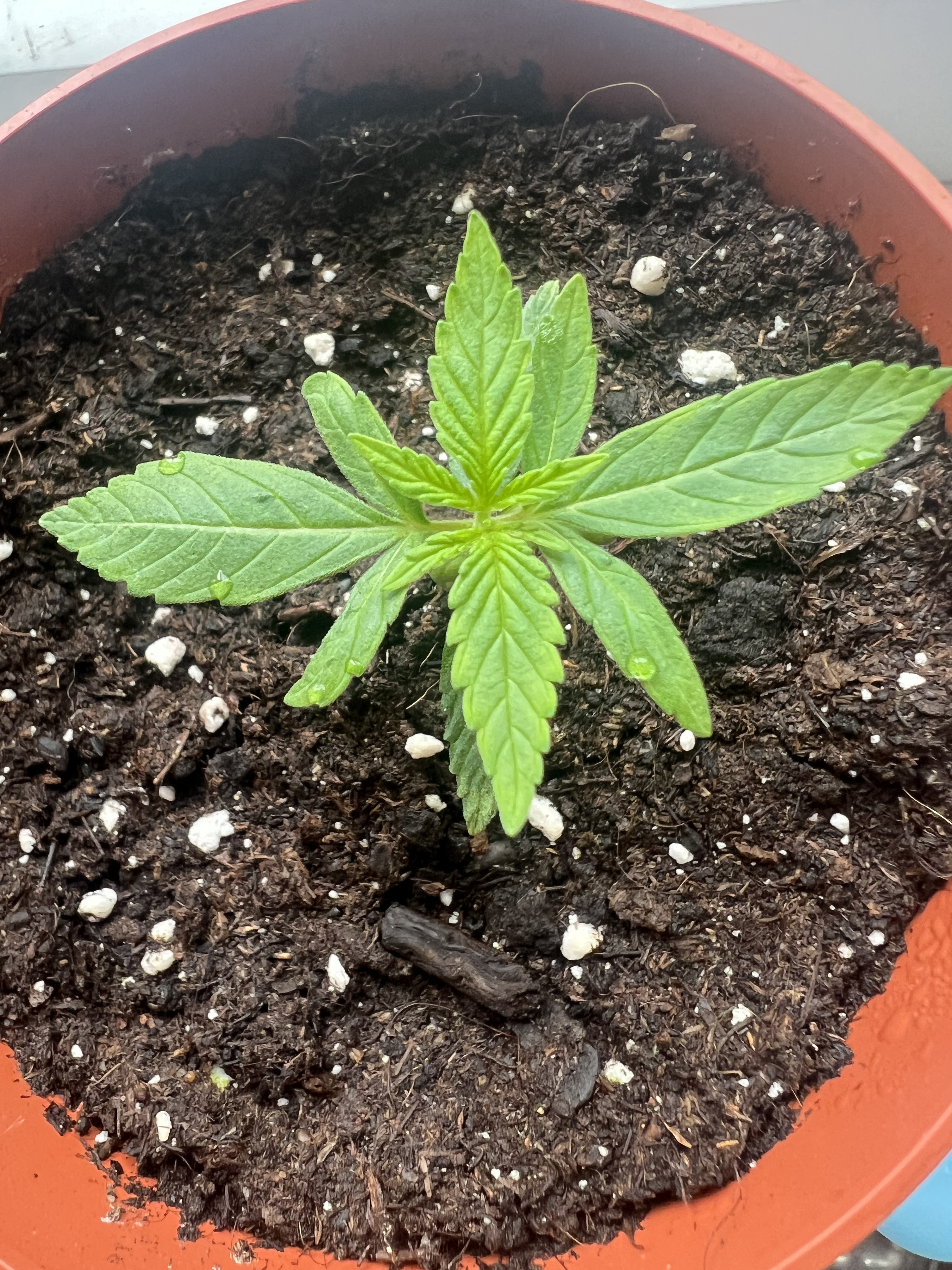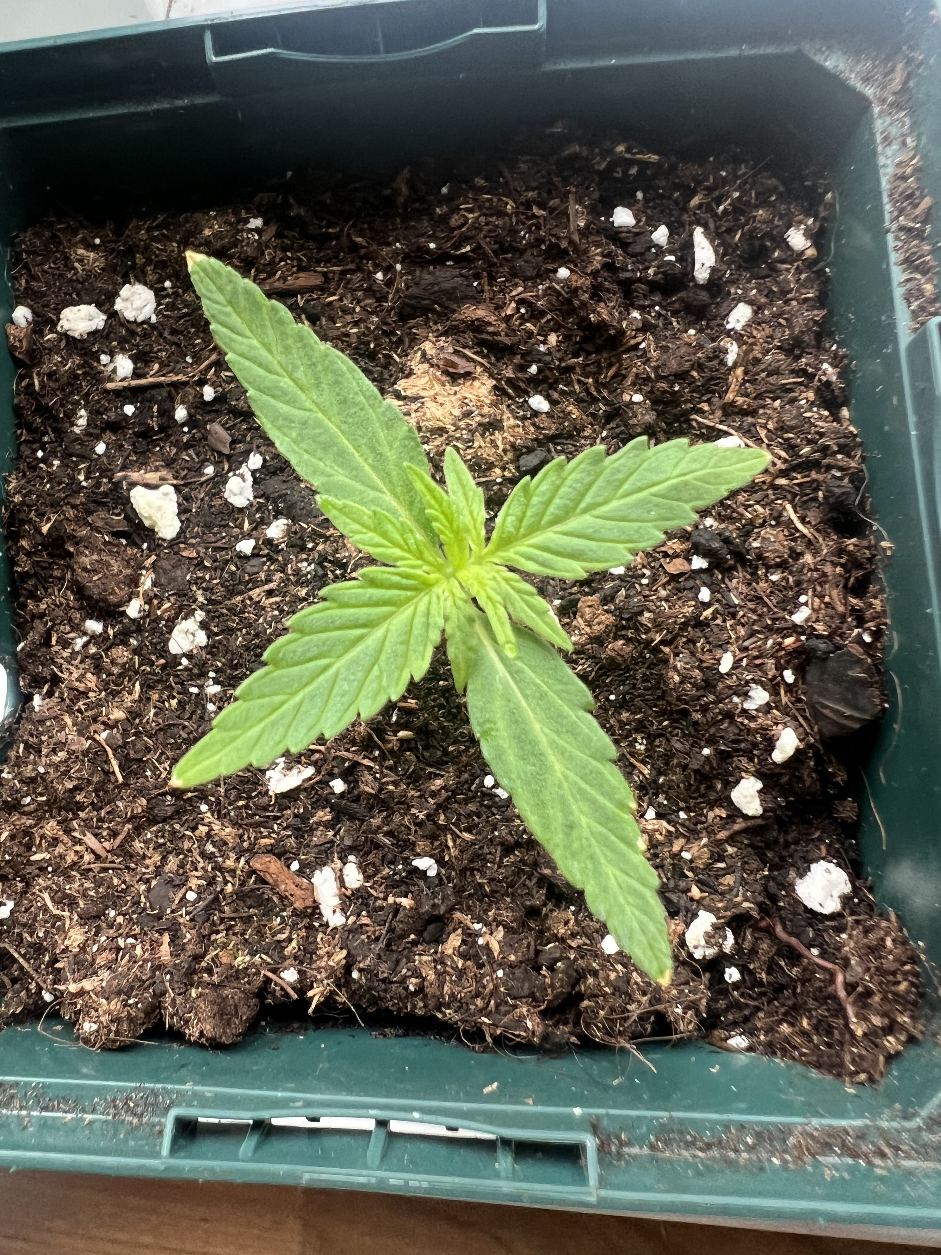 I started feeding today coming up to 3 weeks old. Using Canna professional soil mix (never again for seedlings, personal preference) I realised too late it was nitrogen rich. Another nice cock up but I think the strong one has pulled through it just about. Abit touch and go at the very start tho. Lovely noticeable growth everyday even with the slightly damaged one. Wel see what happens there. I’m using rain water at present and will continue with this on this grow. Been very sloppy with PH levels which could bite me in the arse soon but wel see. I will be going full organic next grow but I think one of these is at least healthy. Just leaving her get used to the feed abit before I crank the lights up to 80%. My thoughts were not too shock it too much as I transplanted into her final grow pot today,