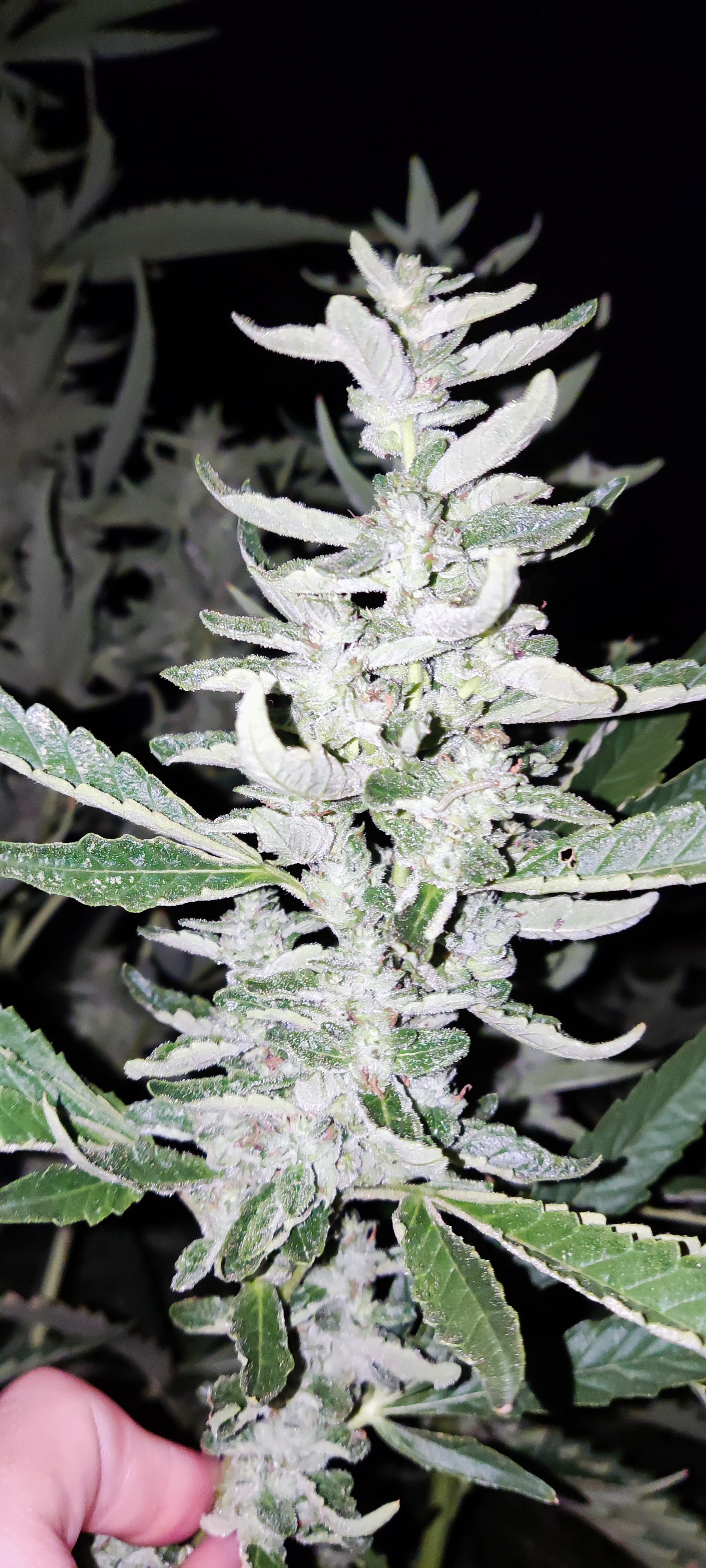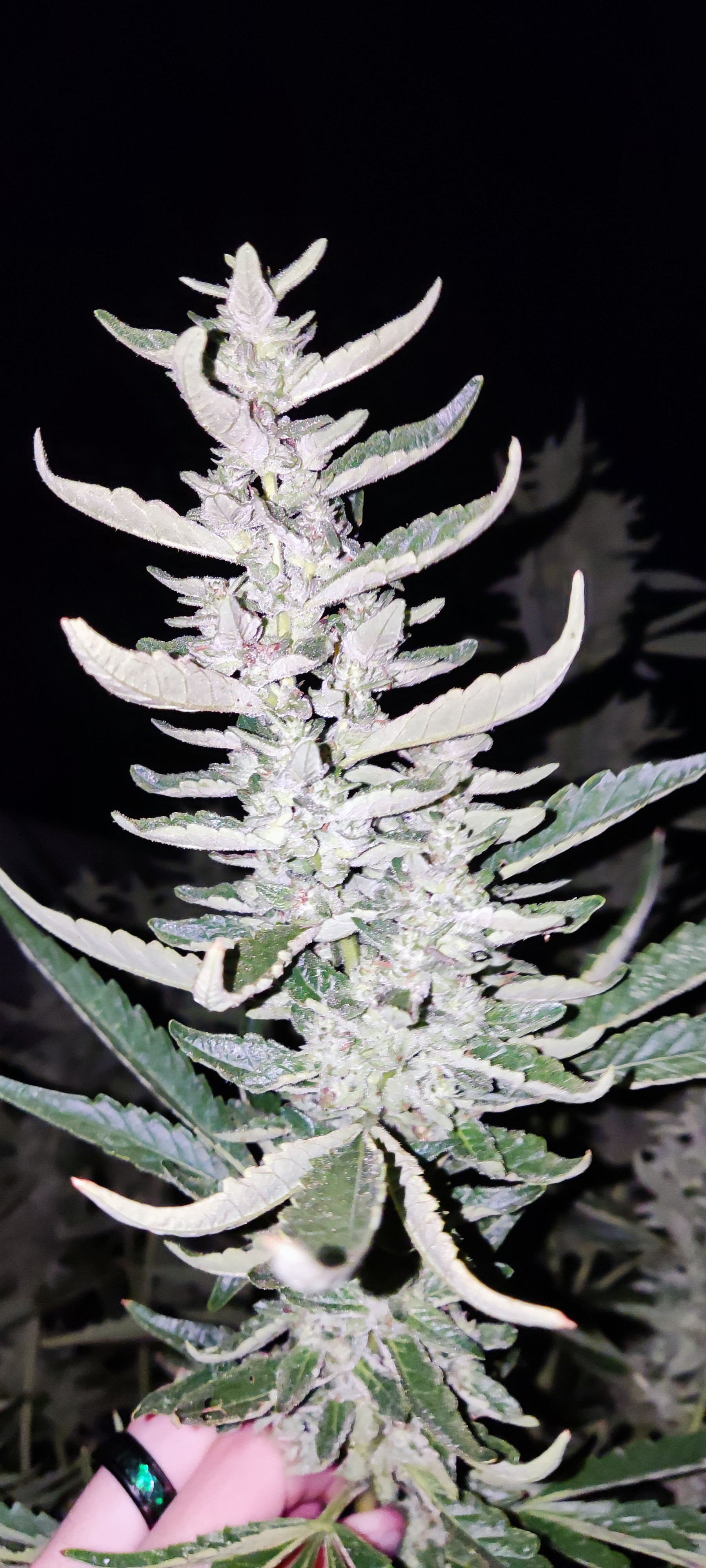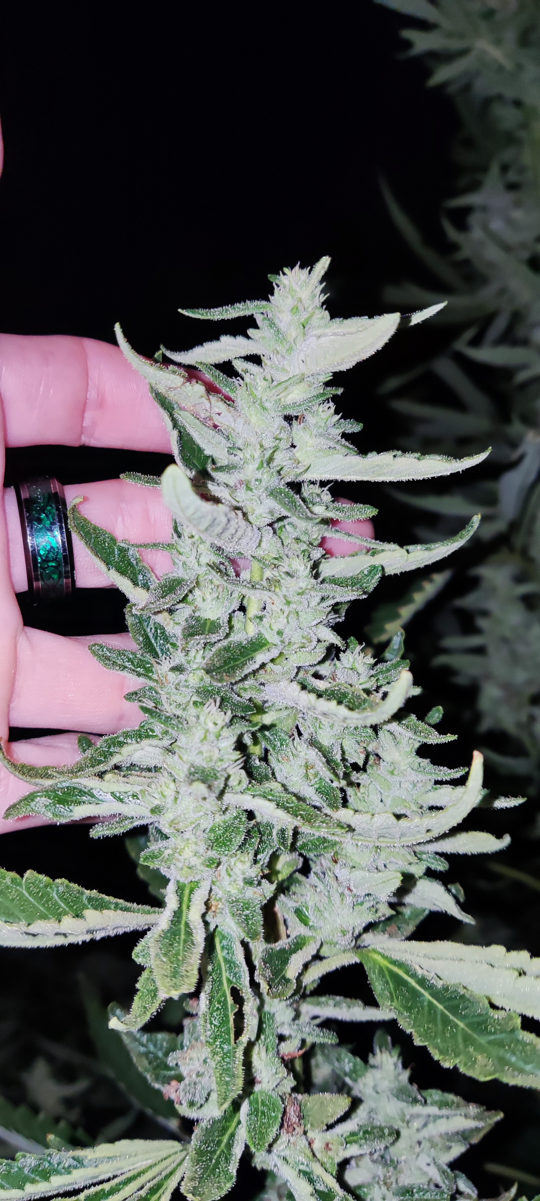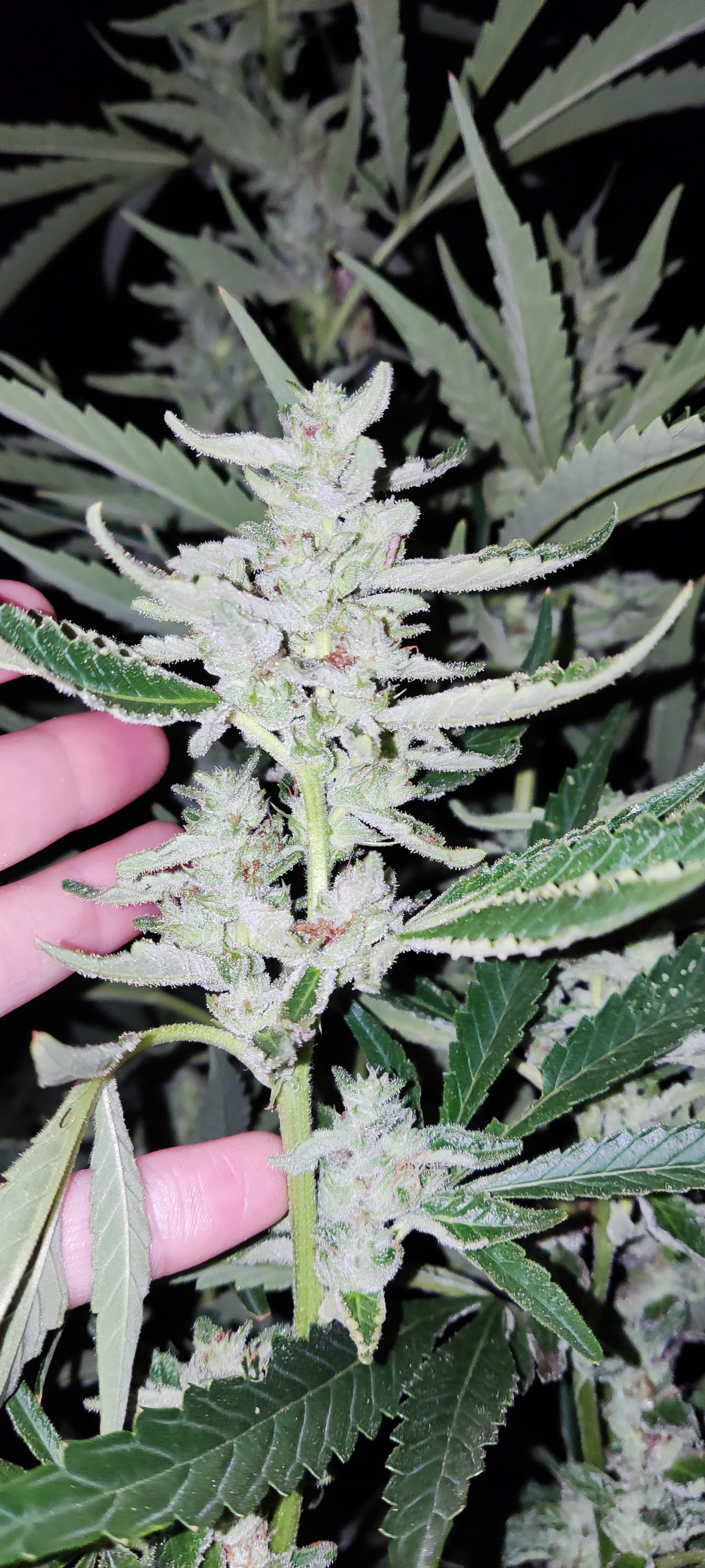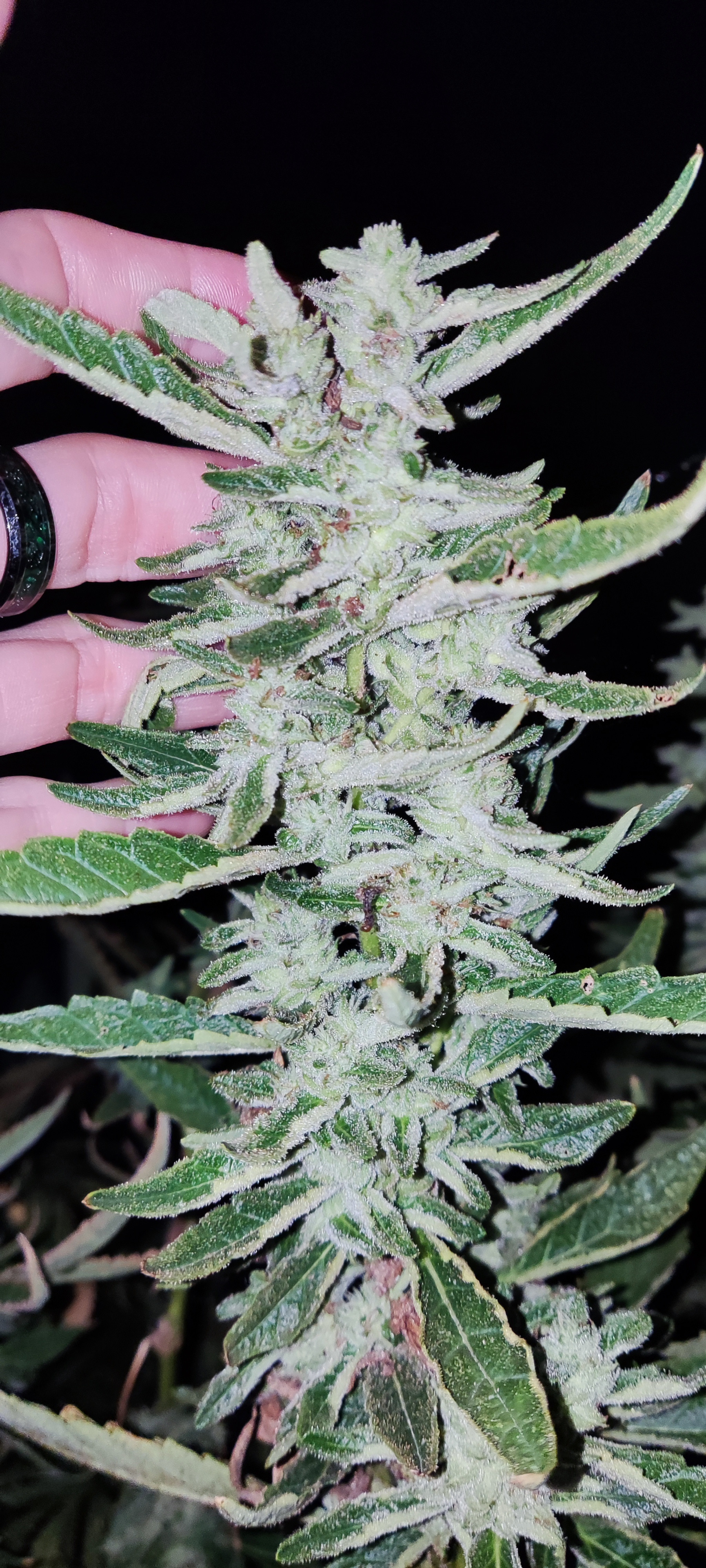 I just took some picture of s couple of strain that got too stretched due to what I'm explaining. The calyxes are hard and meaty. Swollen but sparse. I out your handle of the piece of paper so you know I just took them. Normally buth these strains are very dense but this was the hottest summer I've ever grown in and it shows