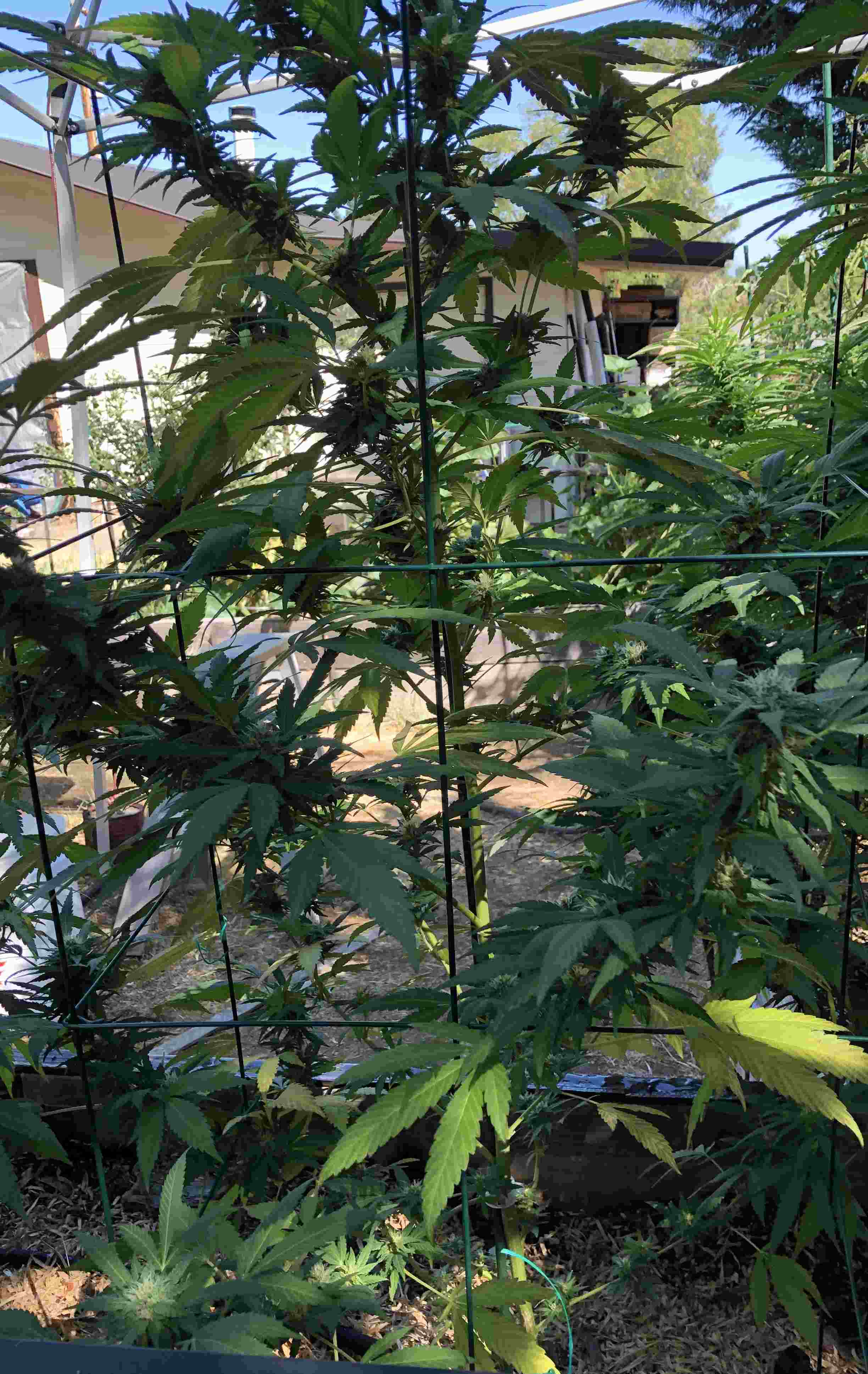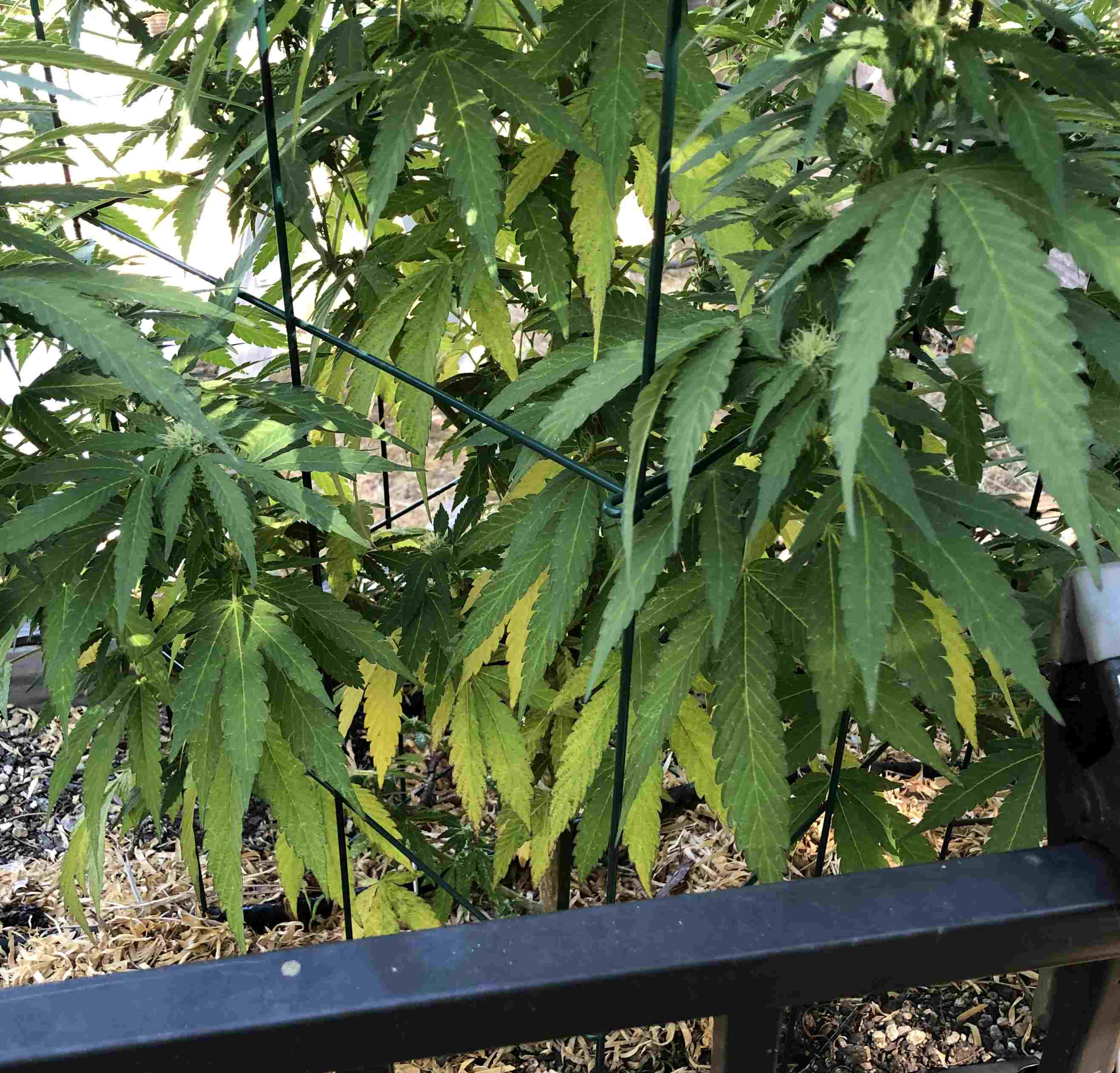 Been noticing more than normal(at least for me) yellow leaves. My girls have flowered and buds are growing so I expect some leaves to turn but not this many I'm getting about 6 to 8 per day. Could there be a problem? Also, this is my 3rd year of growing outside and this year the plants seem to be what I call skinny, not bushy like the previous years. These are Shishkaberry clones. I'm using the same dirt(fresh), watering schedules and nutrients that I have before. Here are a couple pics showing the yellow leaves and the other showing how skinny they are