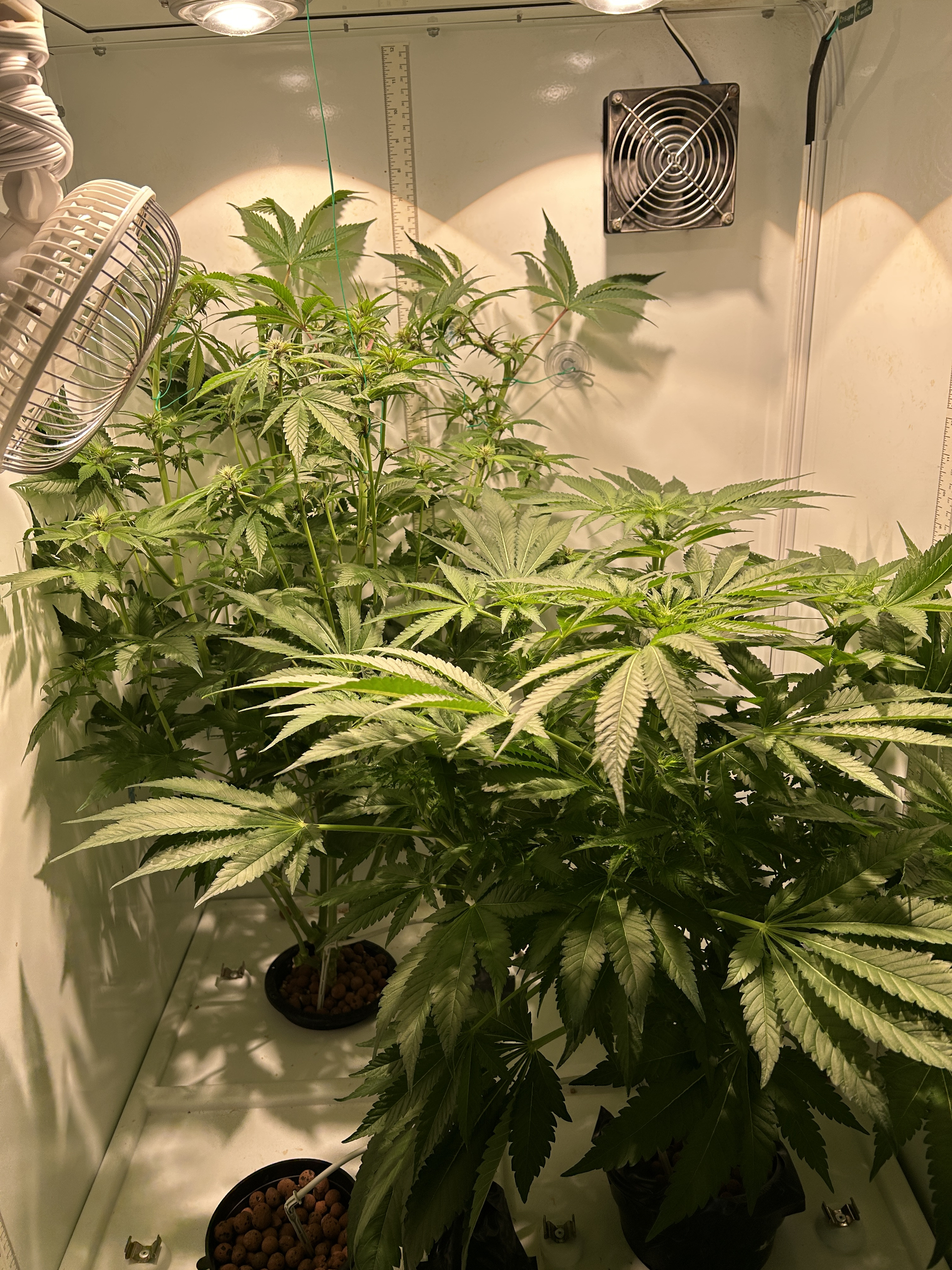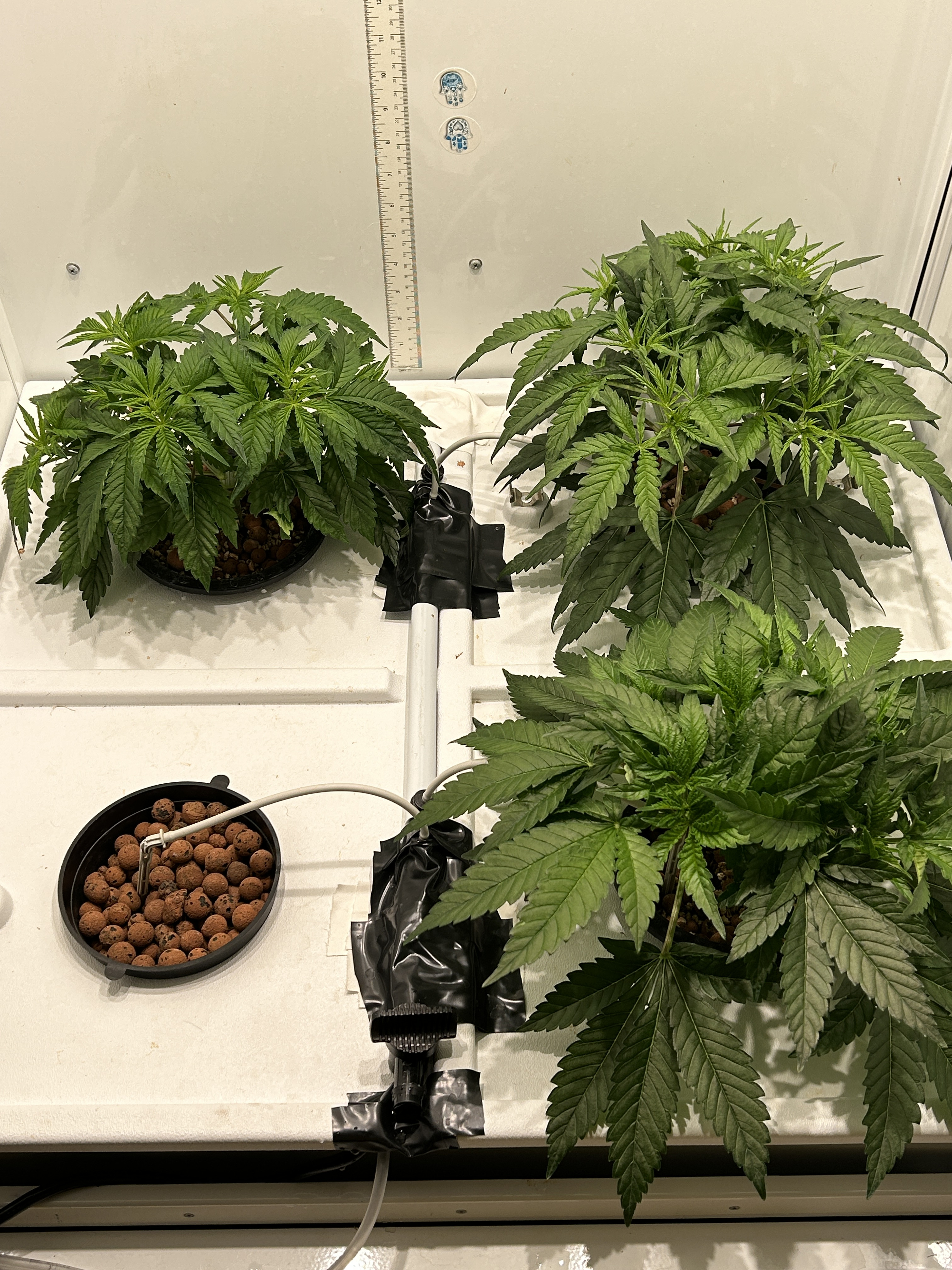 Before and after a little LST. Two Future 1s on the right: the one in back exhibiting more sattivesque characteristics; the one in front more Indica-ish, shorter and denser.