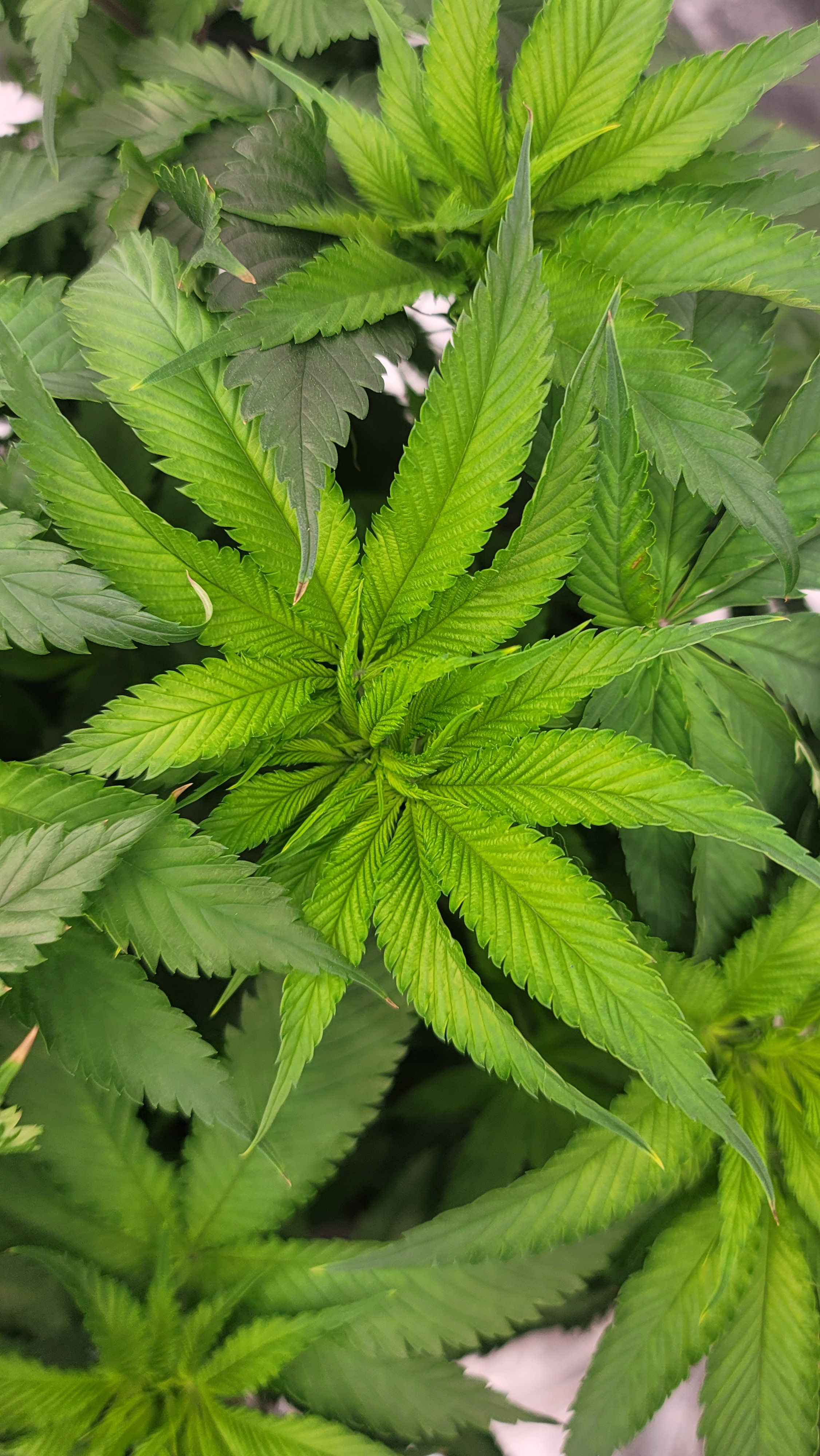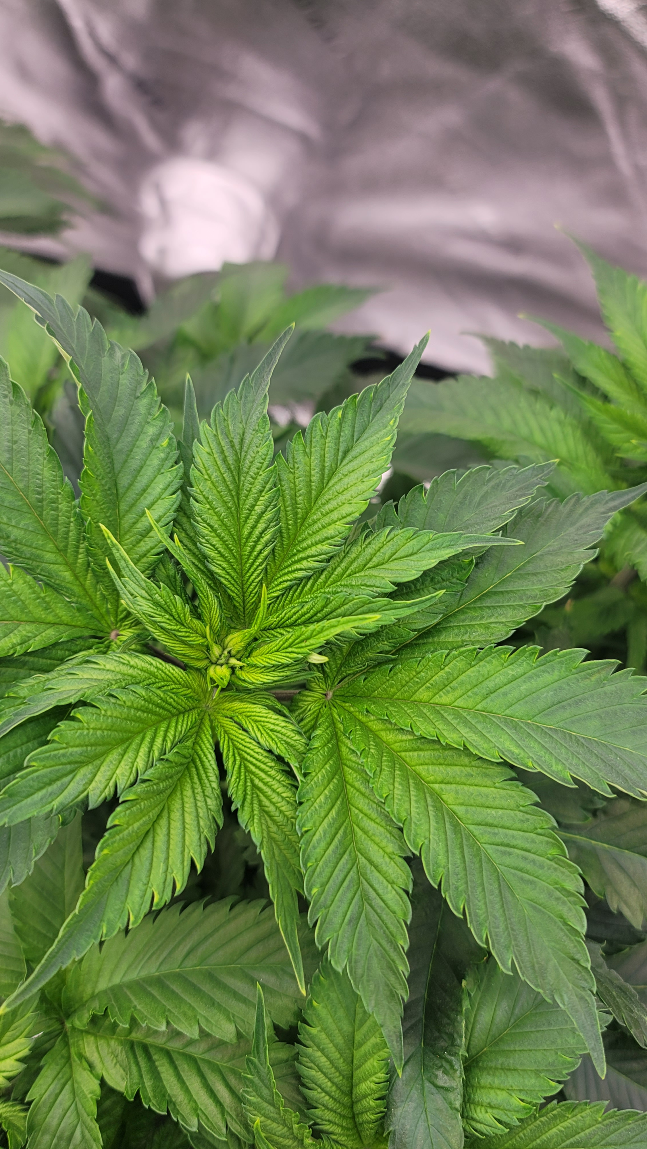 Have you got a fan in there aimed at a wall to give a good breeze through the leaves?Flower Room: 11' x 7' x 7.5'H, 480w AC, 13gal/day dehumidifier, 1.5gal ultrasonic humidifier, 60gal (27gal usable) nute tank, 16" pedestal fan & 18" wall fan. Lighting and climate automated. Hand watering.