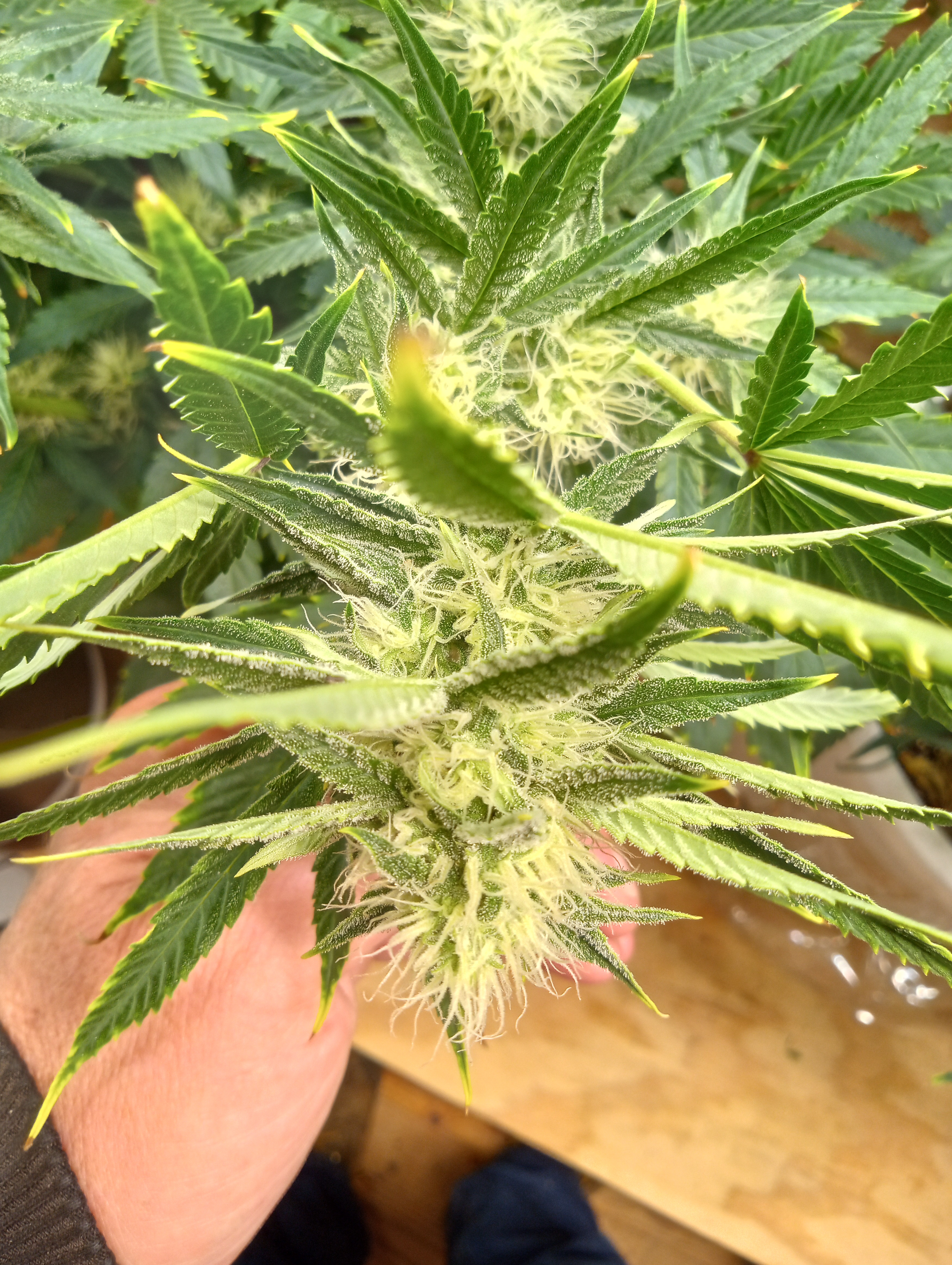 Ok now that the photo run is done let’s get back to the roots. As in auto roots. Did enjoy my first indoor photo run but the returns weren’t there and I knew this going in. Sugarcane isn’t a big producer. Very runtzish looking buds. Frostiest buds I’ve ever grown for real. In House are legit. Of course had to do some pollen chucking on #1.