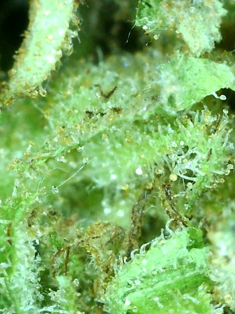 1st pic I was thinking spider mites as you can just see a few fine webs, but on the bud??, but those webs look like mould in the next pic or two and those buds definitely look like they have succumbed to a nasty bud rot attack. You can see it clear as day in most of the top buds in the pics....even the main stalk is white with mould.