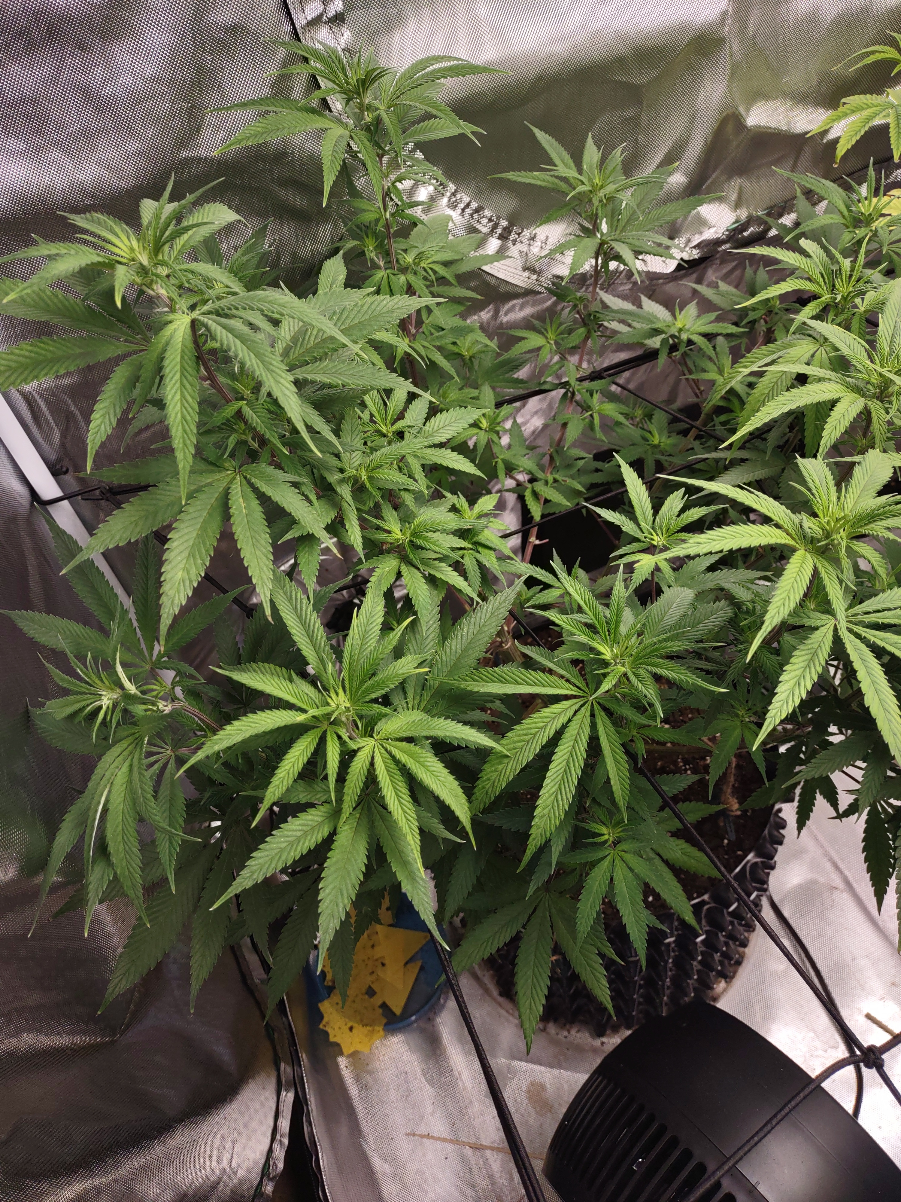 Edit. Your plant is looking really good. Don't fret.Flower Room: 11' x 7' x 7.5'H, 480w AC, 13gal/day dehumidifier, 1.5gal ultrasonic humidifier, 60gal (27gal usable) nute tank, 16" pedestal fan & 18" wall fan. Lighting and climate automated. Hand watering.