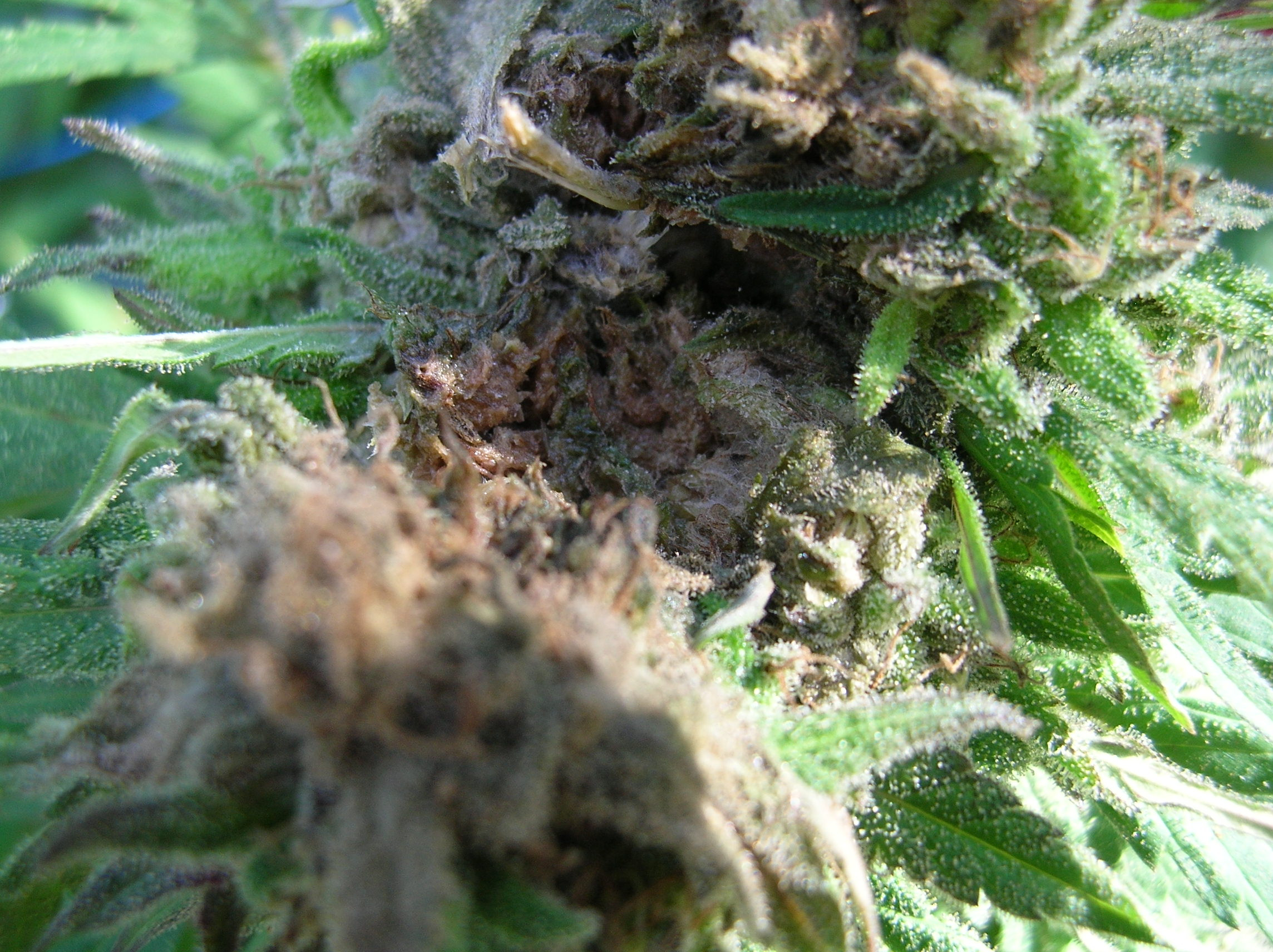 I think if you don't find them worms when you broke open that bud it's more like bud rot. When i find worms in bud it's usually right there munching occationally i find them chewing right in the center and i see a very small spot of brown. Do you see any teeny tiny poop balls? It looks almost like flea dirt? If it's been real wet an humid could of been rot.Smoke Ganja create Peace Respect Nature don't trash the Planet