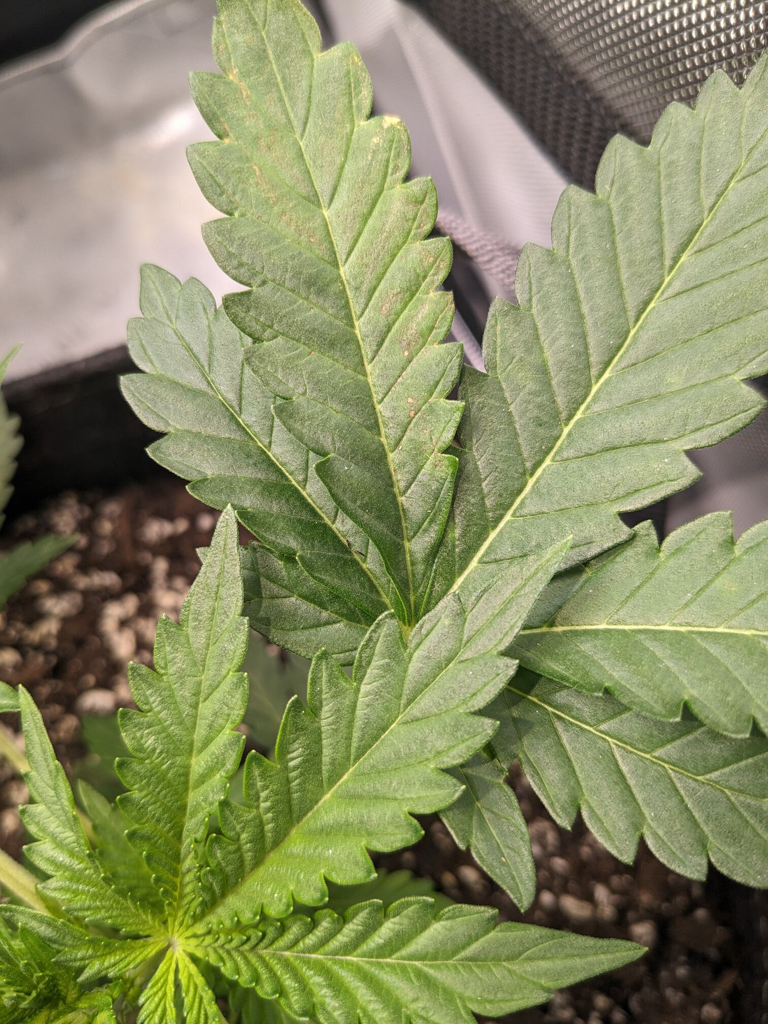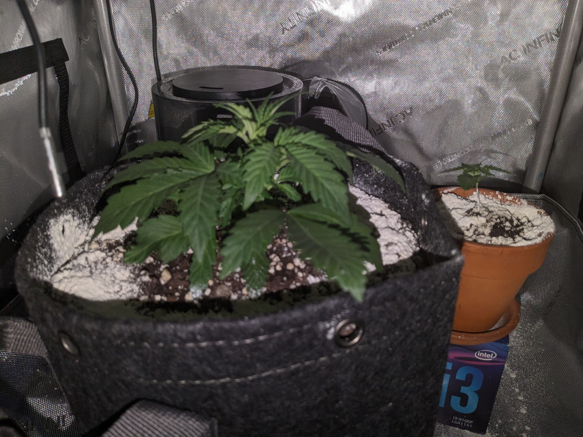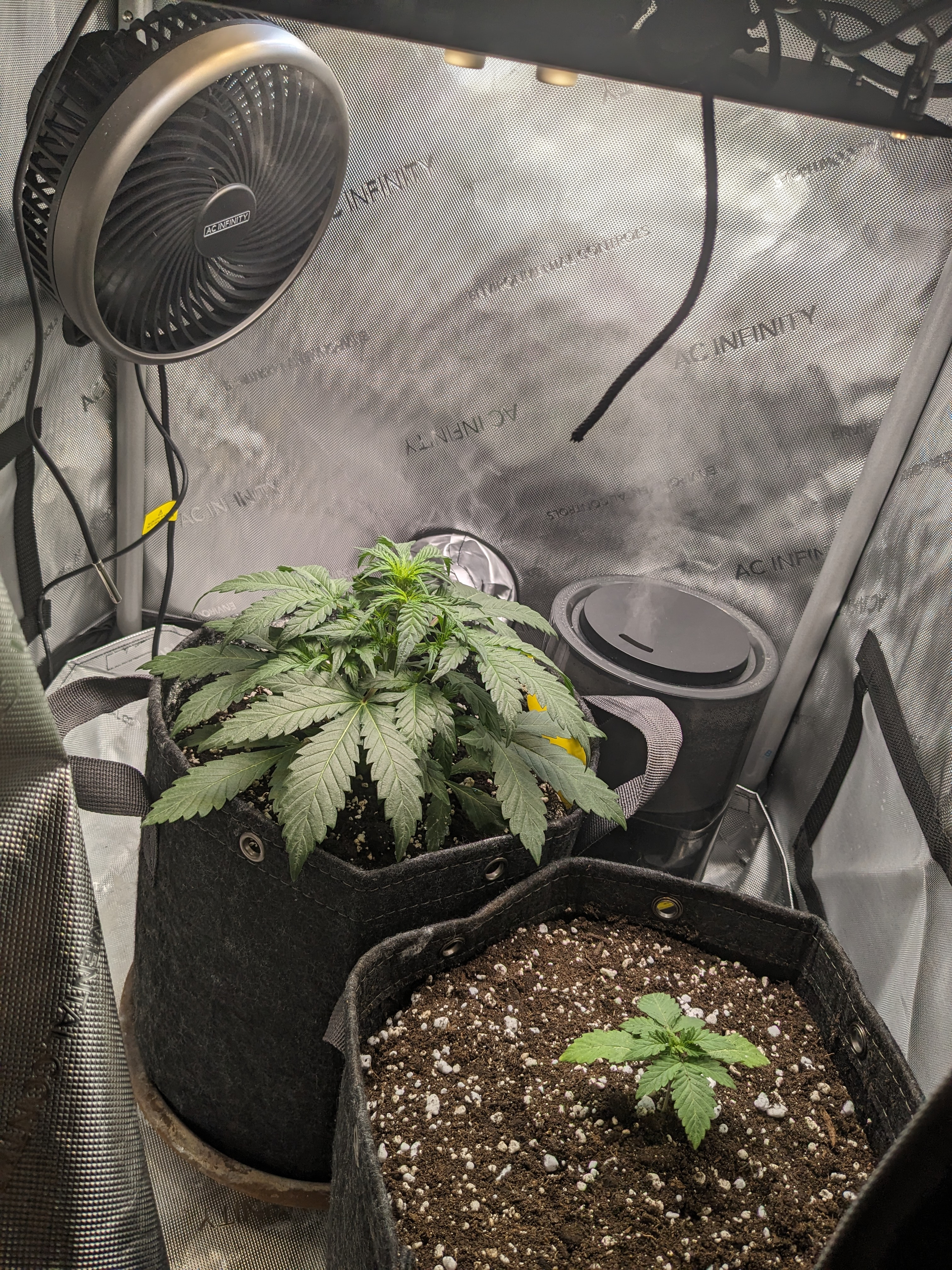 The pot doesn't feel heavy or light, I don't really have a frame of reference. I wonder if the humidifier is somehow keeping everything moist, since I have the fan blowing mist into the plants. The inline fan has to keep running to keep VPD from getting too low, and the whole house gets misty.