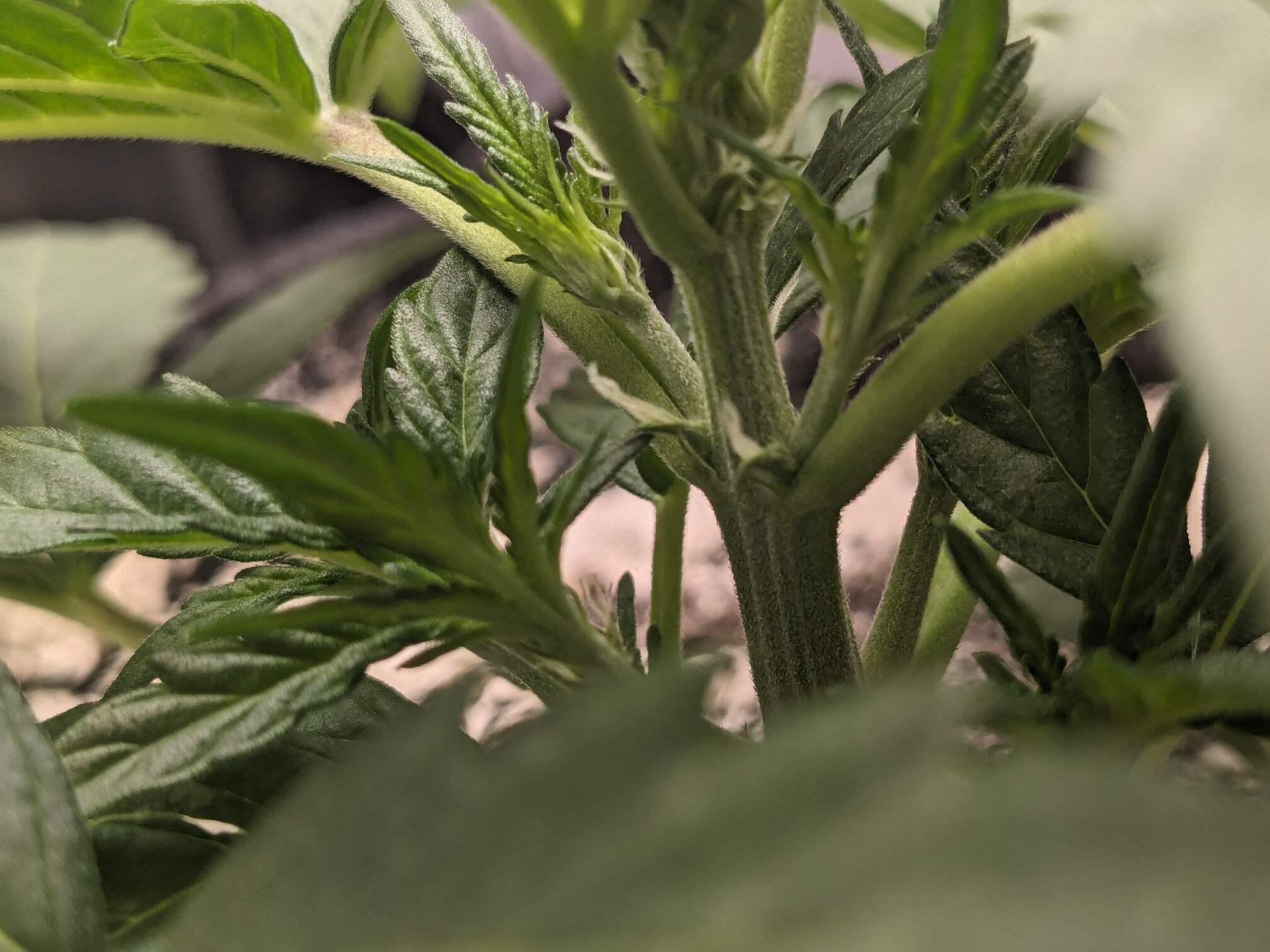 Couldn't resist trying to do some gentle leaf tucking with twist ties. Should I already cut the first few sets of leaves that are almost laying on the soil, and much smaller than the fan leaves above them?