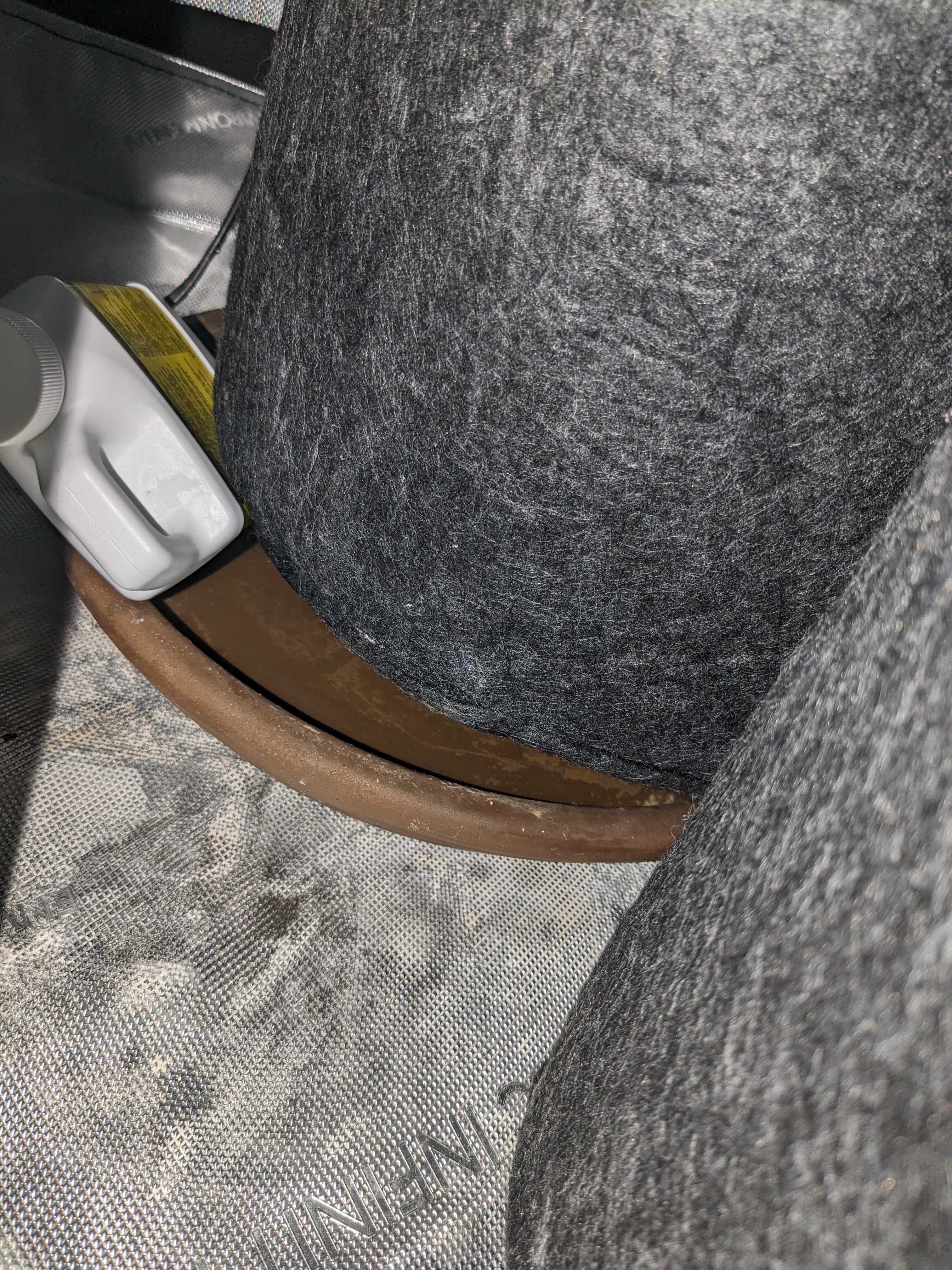 I found what I think are fungus gnats crawling around in the clay pot of the smaller plant, but couldn't find any dead ones. Reddish wings, crawling fast through the soil. Didn't see them fly. I sprayed a bunch of neem oil and then put diatomaceous earth all on top of the soil. Was reading, seems diatomaceous earth can make drainage slower. So I may try to scoop some of it out later.