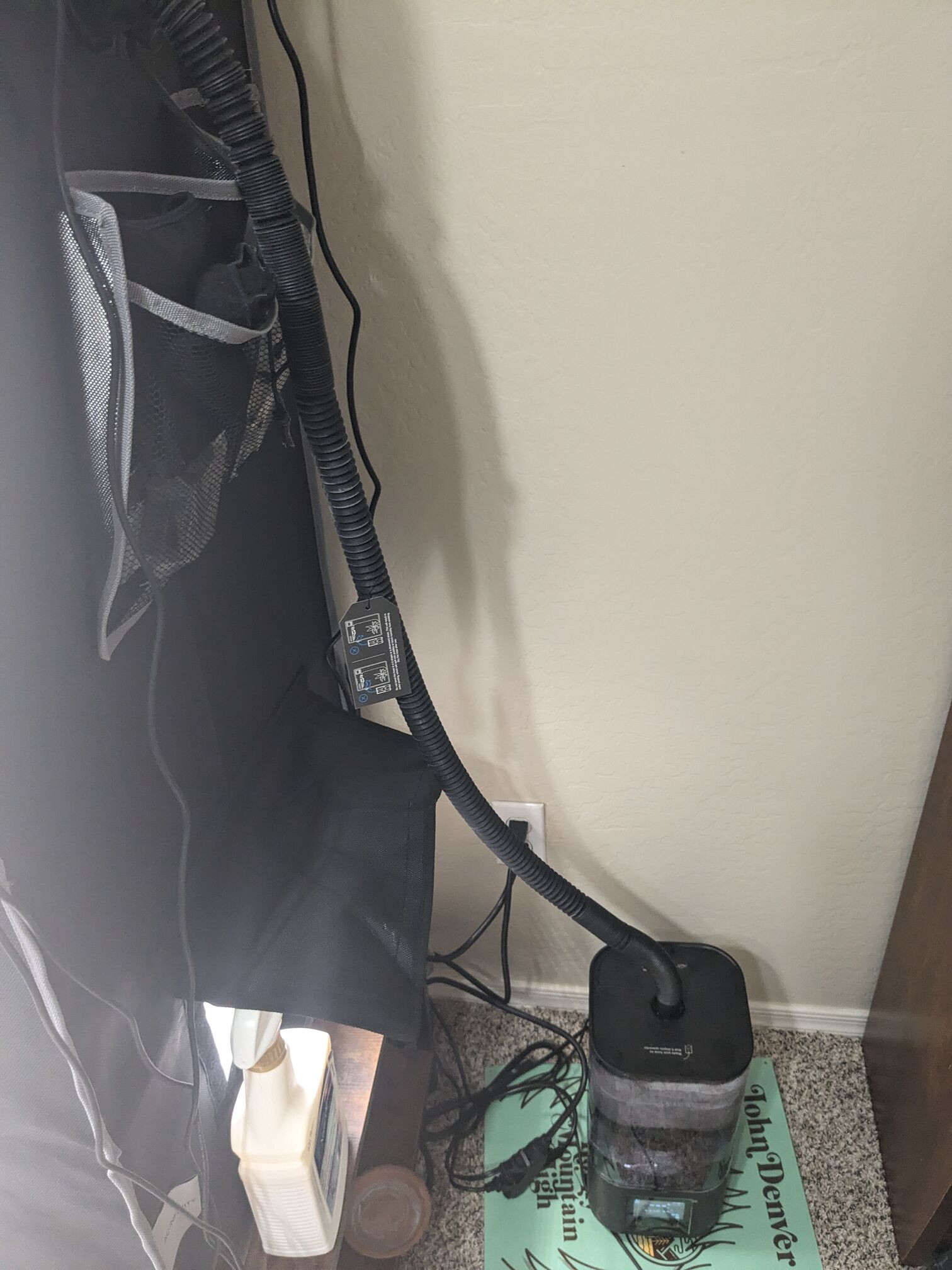 Stupid hose needs to only curve upwards. I just put the humidifier inside the tent.