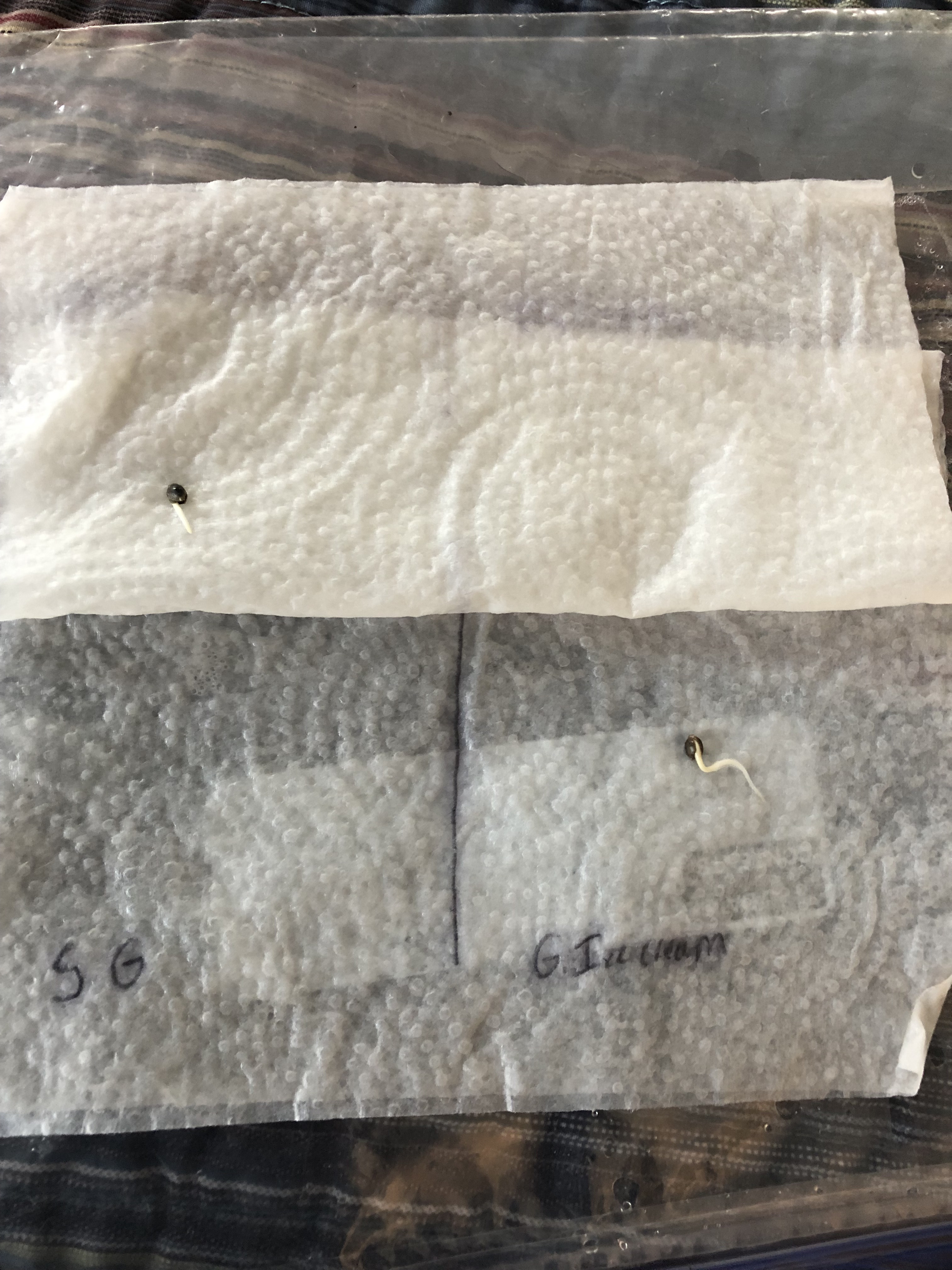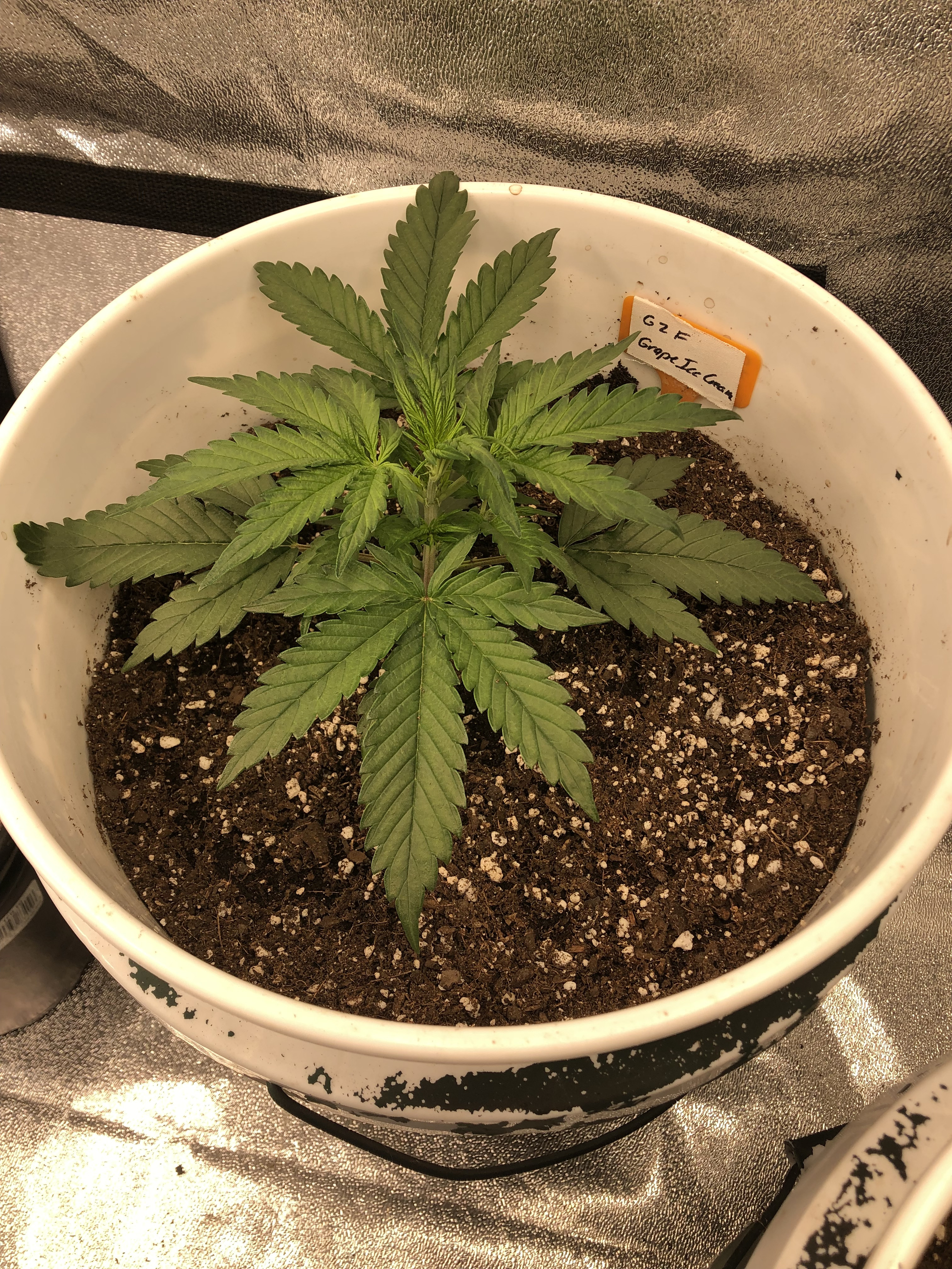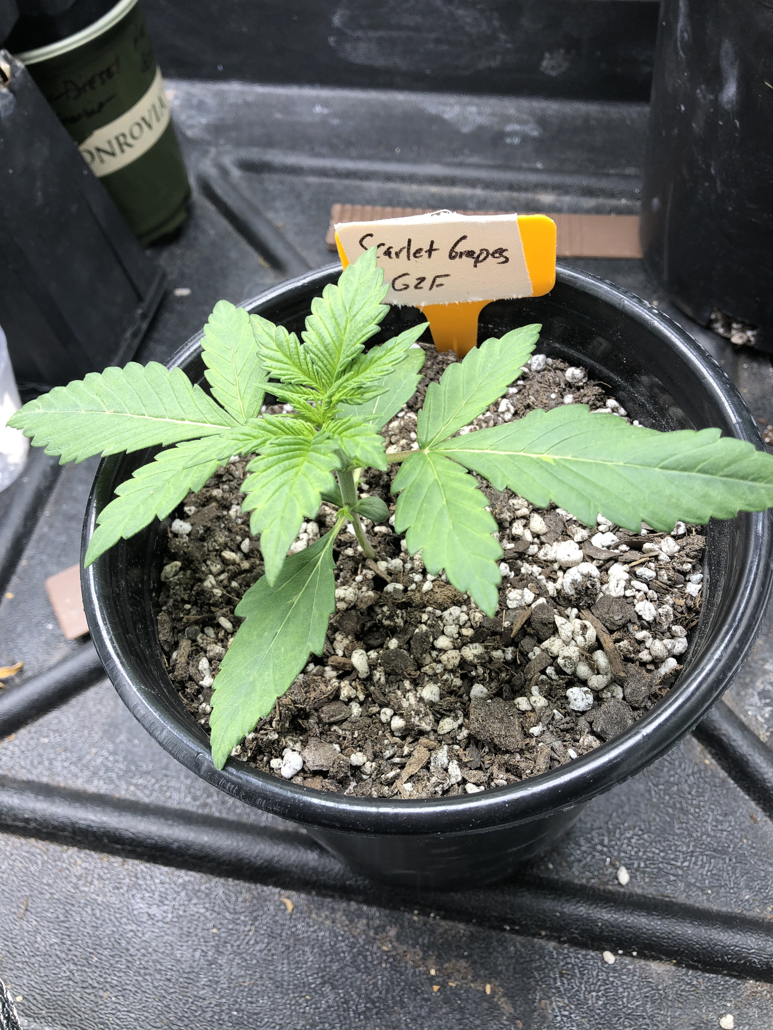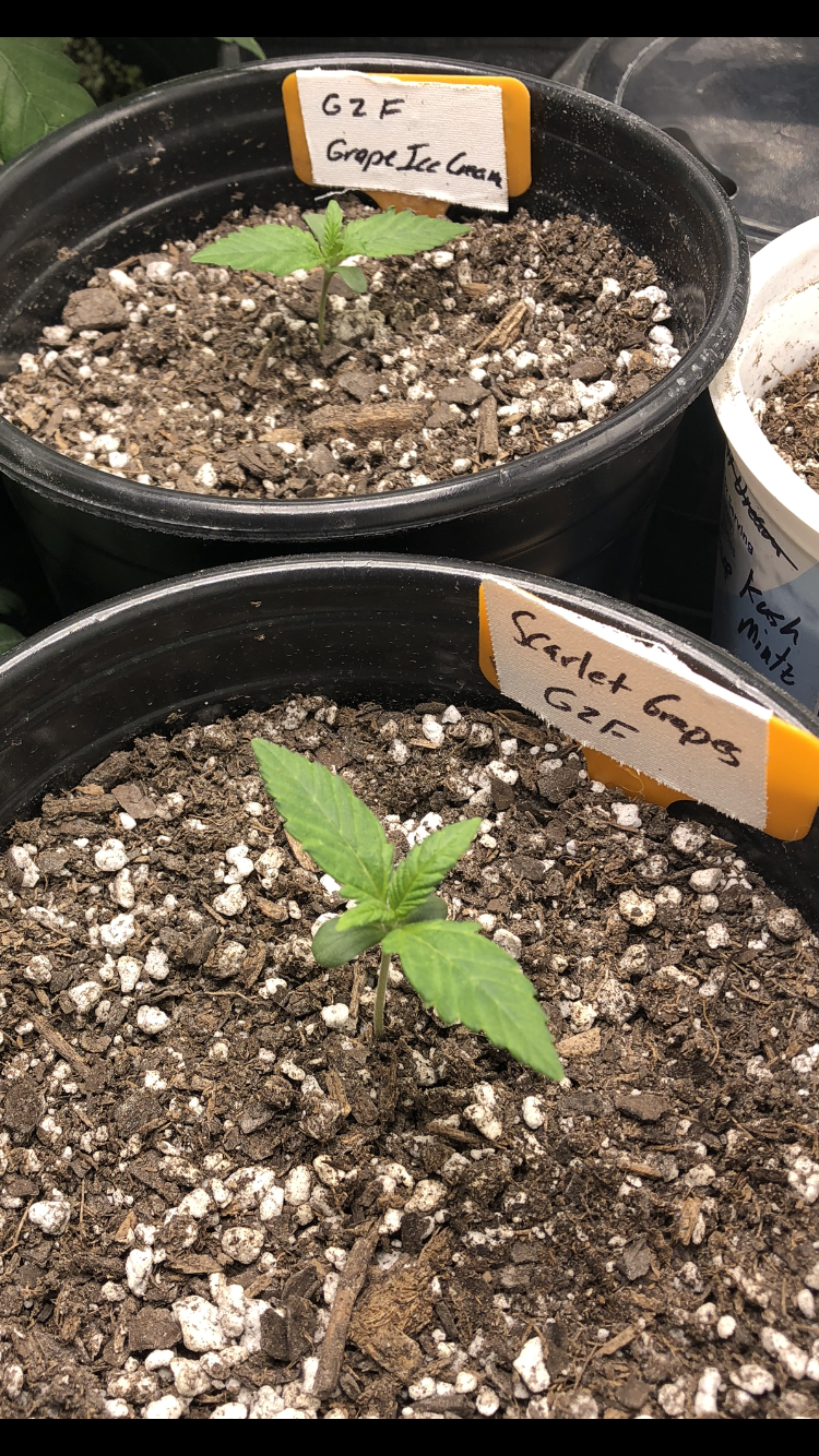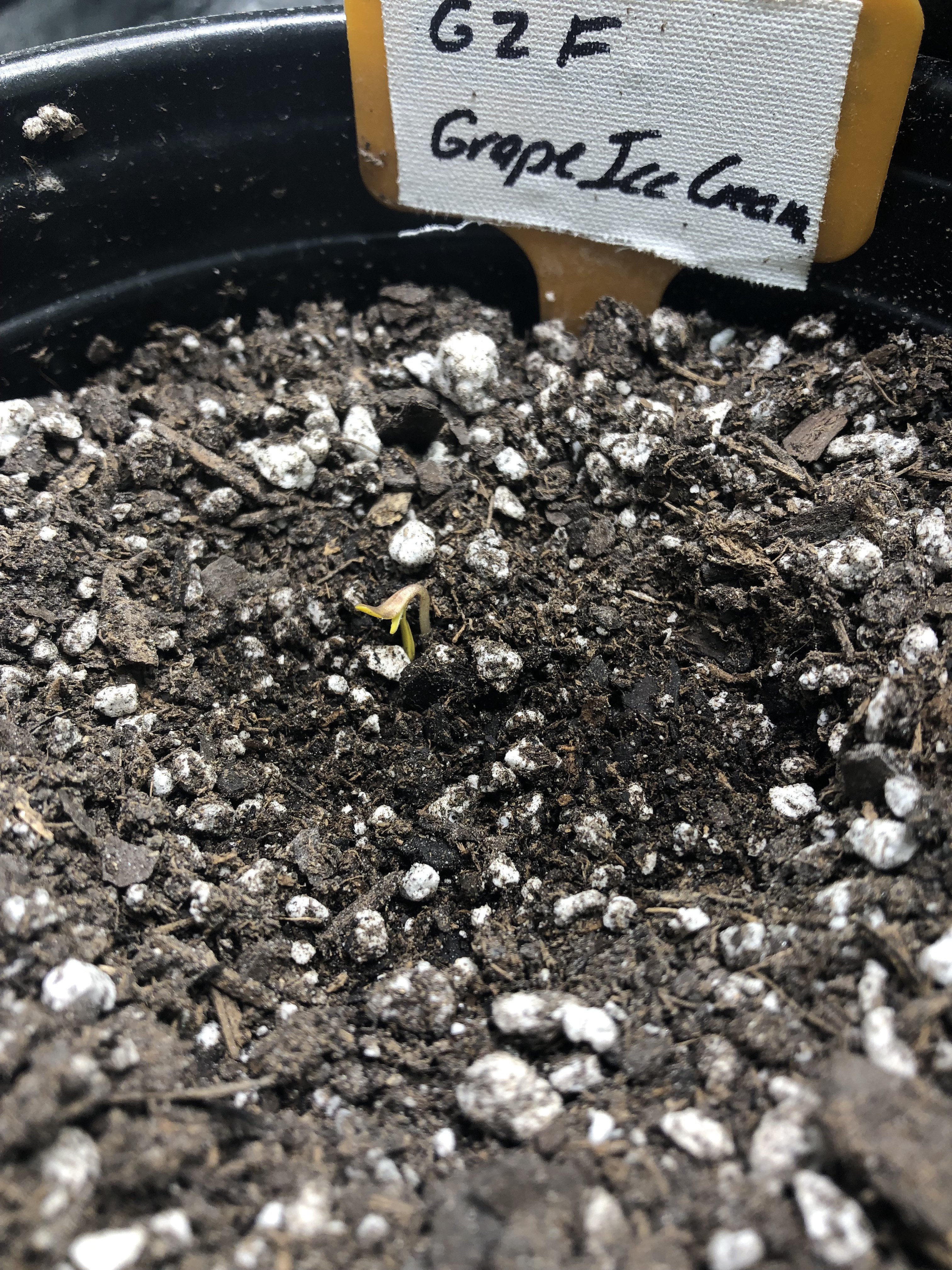 Happy almost spring everyone! It’s about time I posted on my Going2fast autos. He graciously gifted me two strains of his fine work, Scarlet Grapes and Grape Ice Cream. I started germination with the full moon on 1/25 with my normal paper towel in a zip lock on a heating mat controlled to 80f. I had tails showing in 24 hrs but waited another 12ish to plant. Seedlings up on 1/29 in 1 gallon plastic pots with happy frog with added perlite and dolomite lime.
