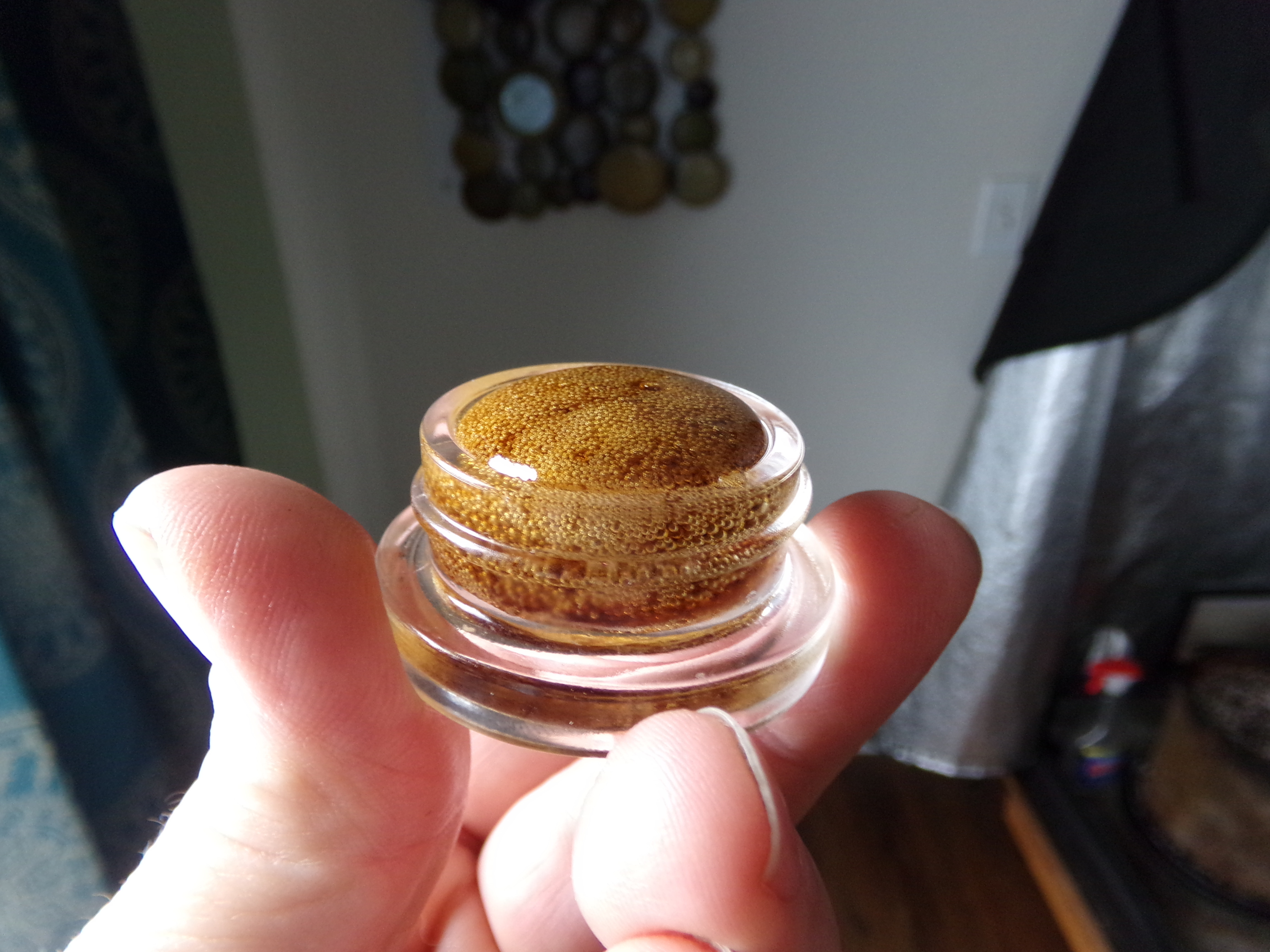 My first attempt at this made something much less viscous. This time I got something liquid enough to be sucked up in a de-needled insulin syringe and squirted into a vape pen cartridge. The difference in viscosity might be the amount of time spent dewaxing in the dry ice and ISO.