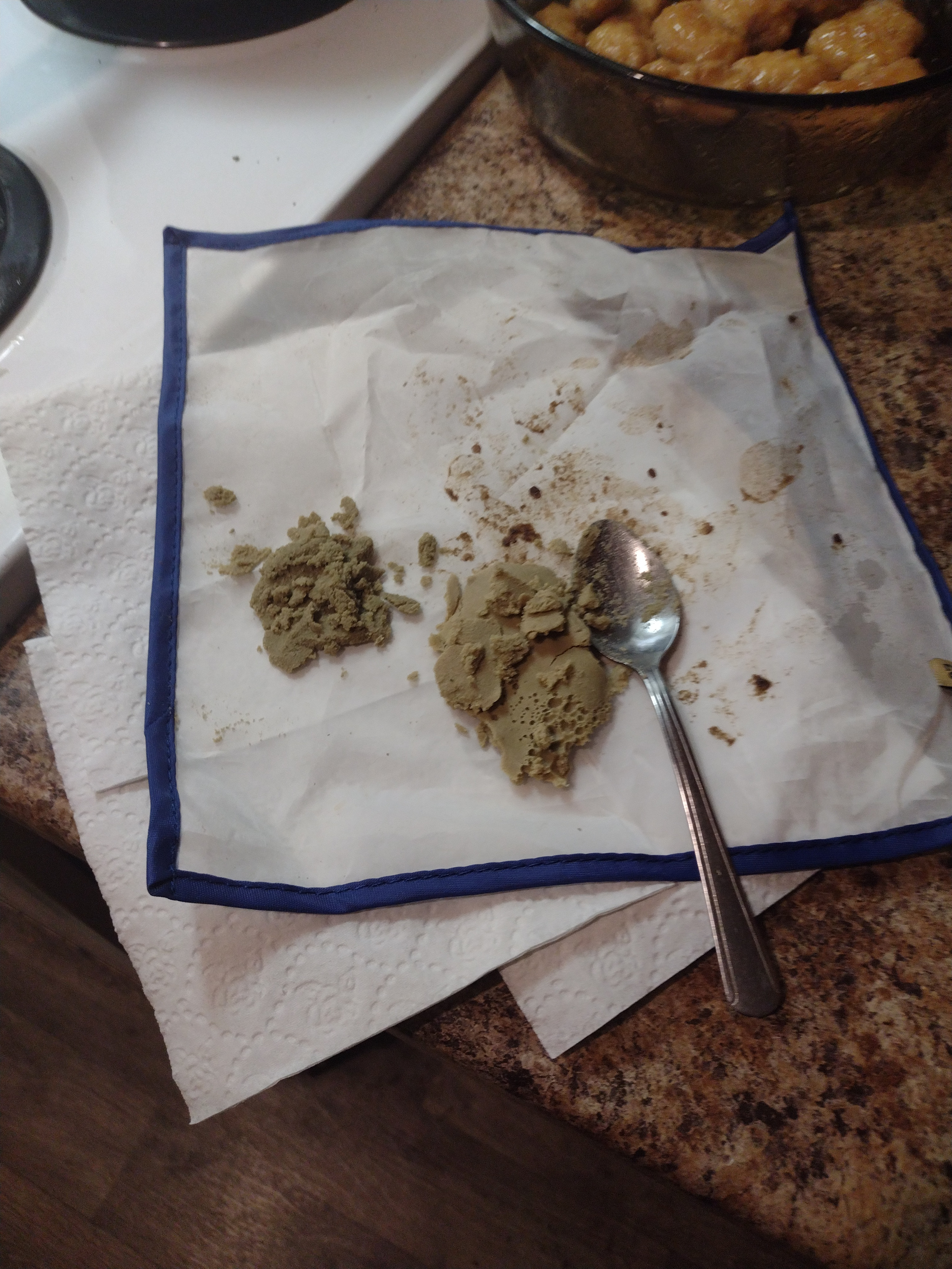 About 3.5 grams of the same is in another jar and drying out on a plate after a minor spillage incident. So, I'm calling this a 10 gram haul. That 175 grams of bud I started with turned into about 160 grams after the friend gimmies. Ratio wise, about a 6.25% return. About half what I could expect from blasting. I don't know how much kief I started with but I am confident I would not have gotten more than a quarter teaspoon from another run through the bags. In the end, I am happy. This is the best I can make. My penultimate. Soon as I win one of the lotteries, I'll be posting about my fractional distillation setup. Just you wait, boy-o! Click image for larger version
