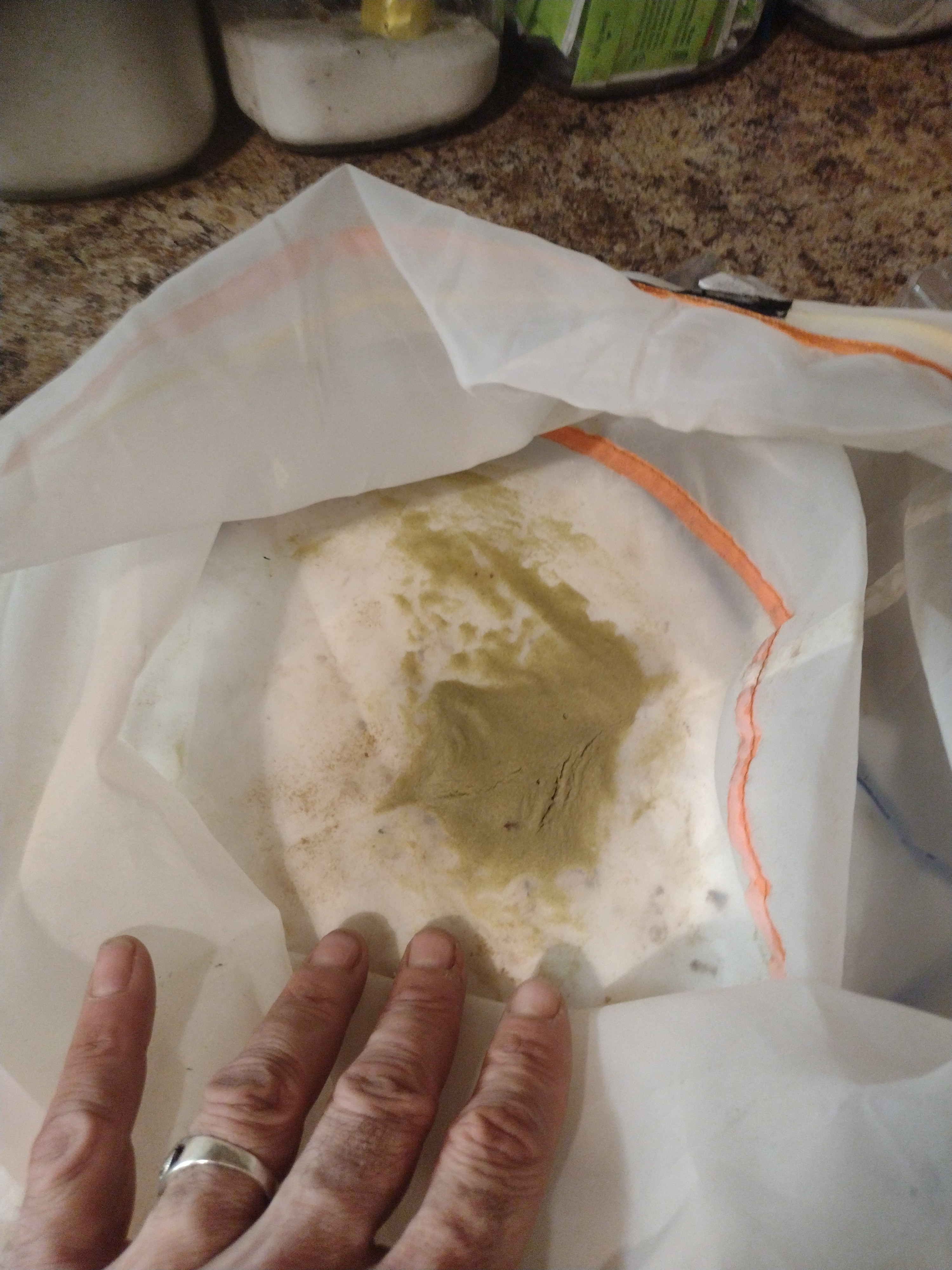 Take a look at my previous post. That was the first run. Text for the previous post is in the previous, previous post. That is basically the detritus I get but the run in the picture was from 2 ounces of bud in a much less successful kief'ing in gallon bags.