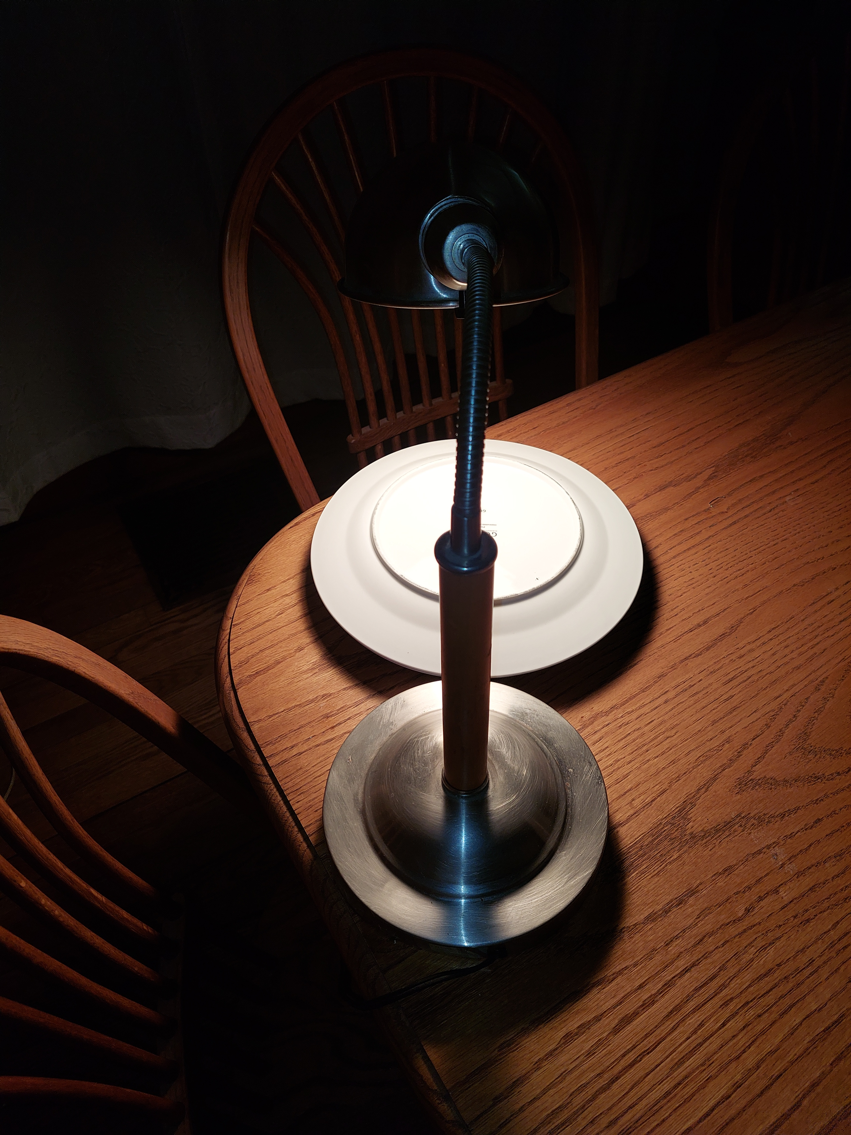I place the damp towel between two porcelain dinner plates. I use an old desk lamp with a 100 watt. incandescent bulb, to warm the plates. I adjust the lamp so that the top plate is warm. Baby bottle warm.