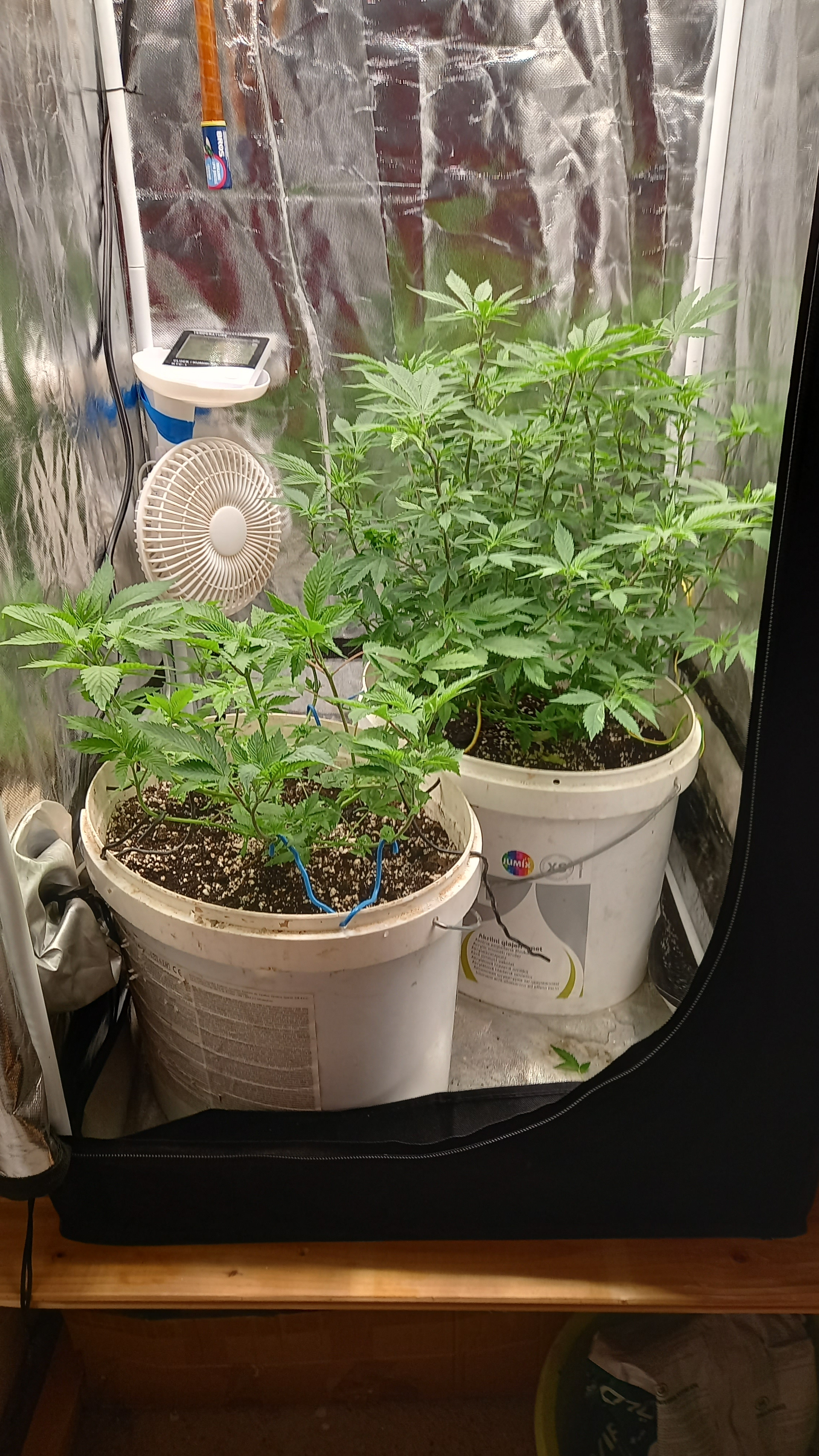 I'm not sure what to do with the smaller plant. I think I will take it out of the tent while the other one is switching to flowering and put it back after to let it veg a bit longer.