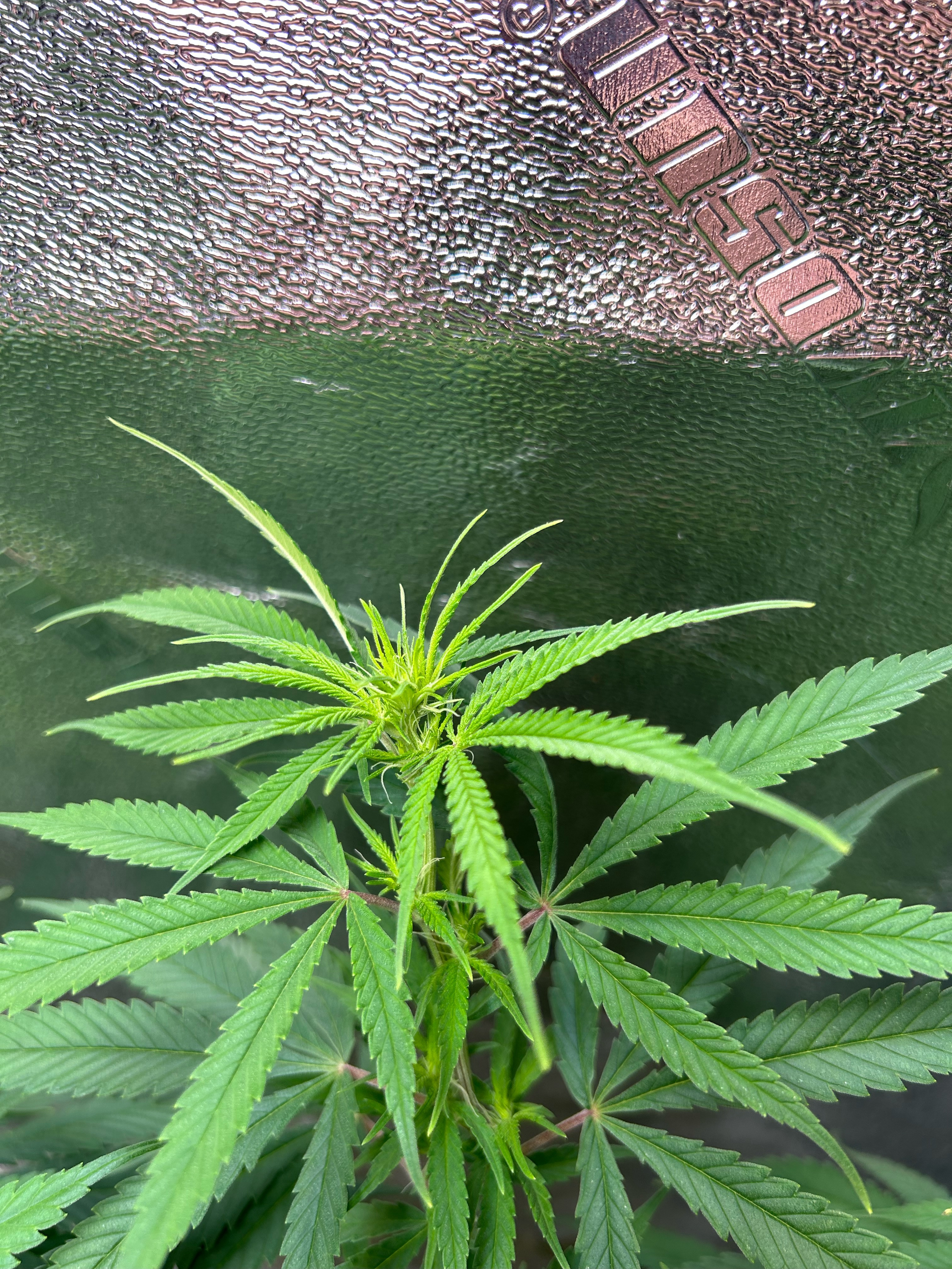 Background: I received bonus seeds from a reputable seed bank labelled as Gorilla Glue AUTO. However after 9 weeks, of a great vegetation phase, it showed no signs of flowering. I contacted the seed bank and they confirmed that the bonus seed is supposed to be AUTO. Since an Auto is supposed to start flowering after approx 6 weeks, I changed the light schedule from 18/6 to 12/12. The attached photos are after 11 days on 12/12 light schedule.