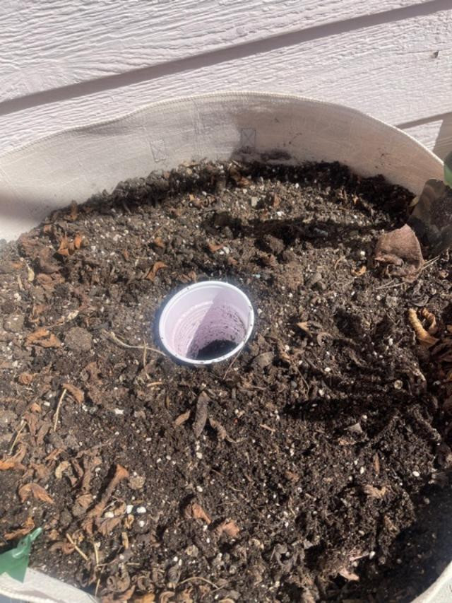 When your soil is ready, bury an empty cup with drain holes in your final container