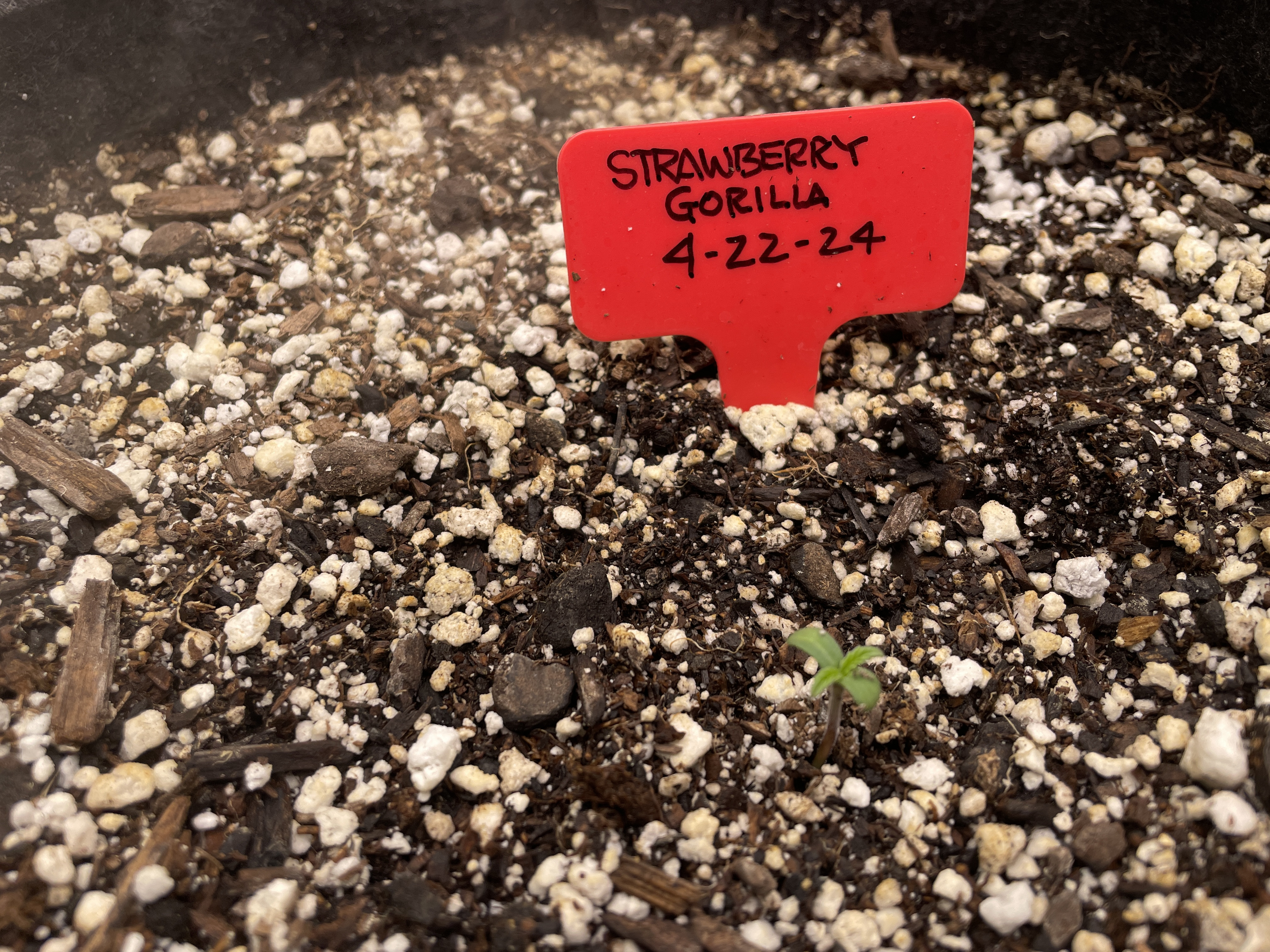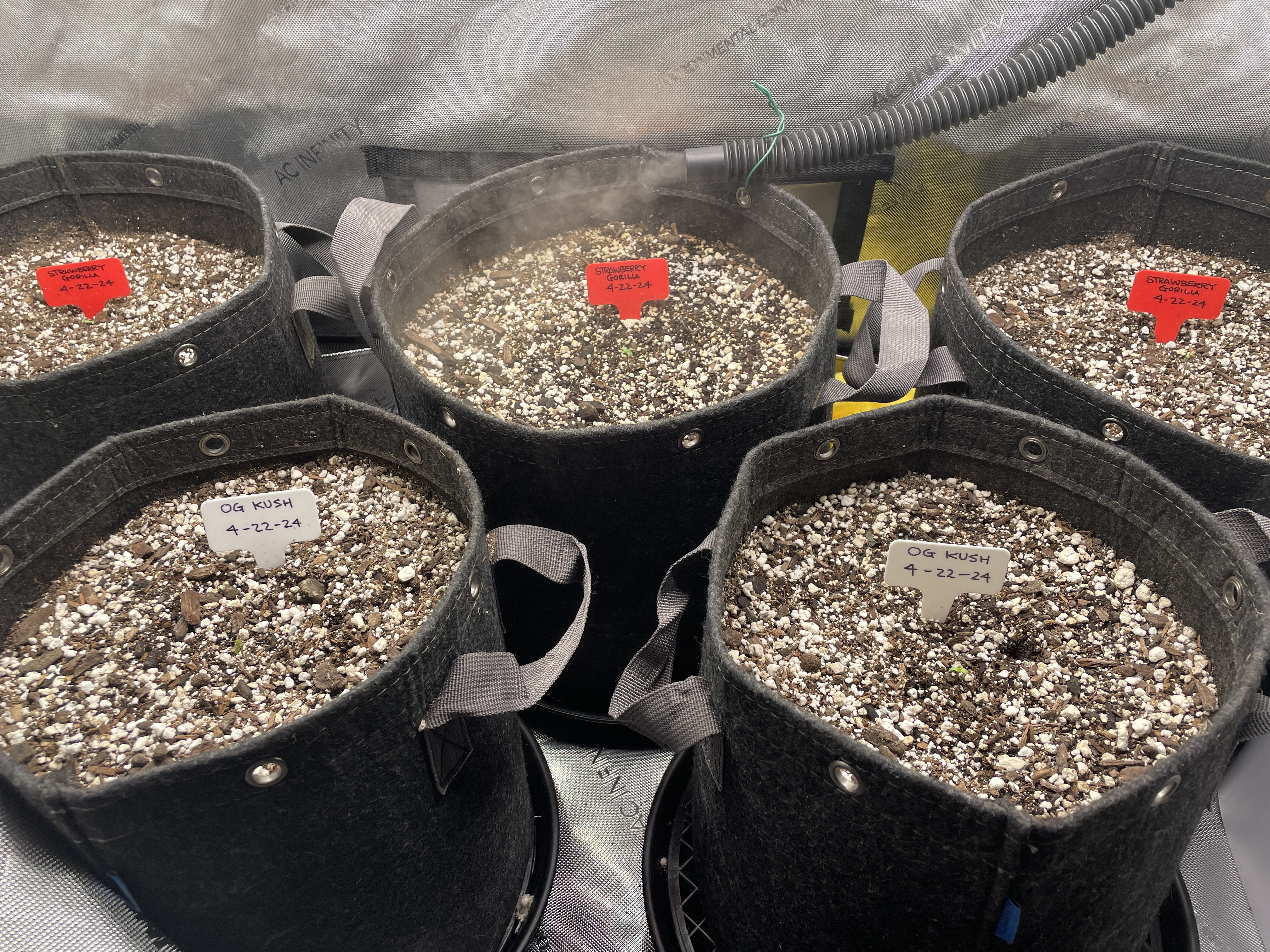 Planted sprouted seeds in reused FFOF with worm castings and lime on 4/22/24 from last grow.