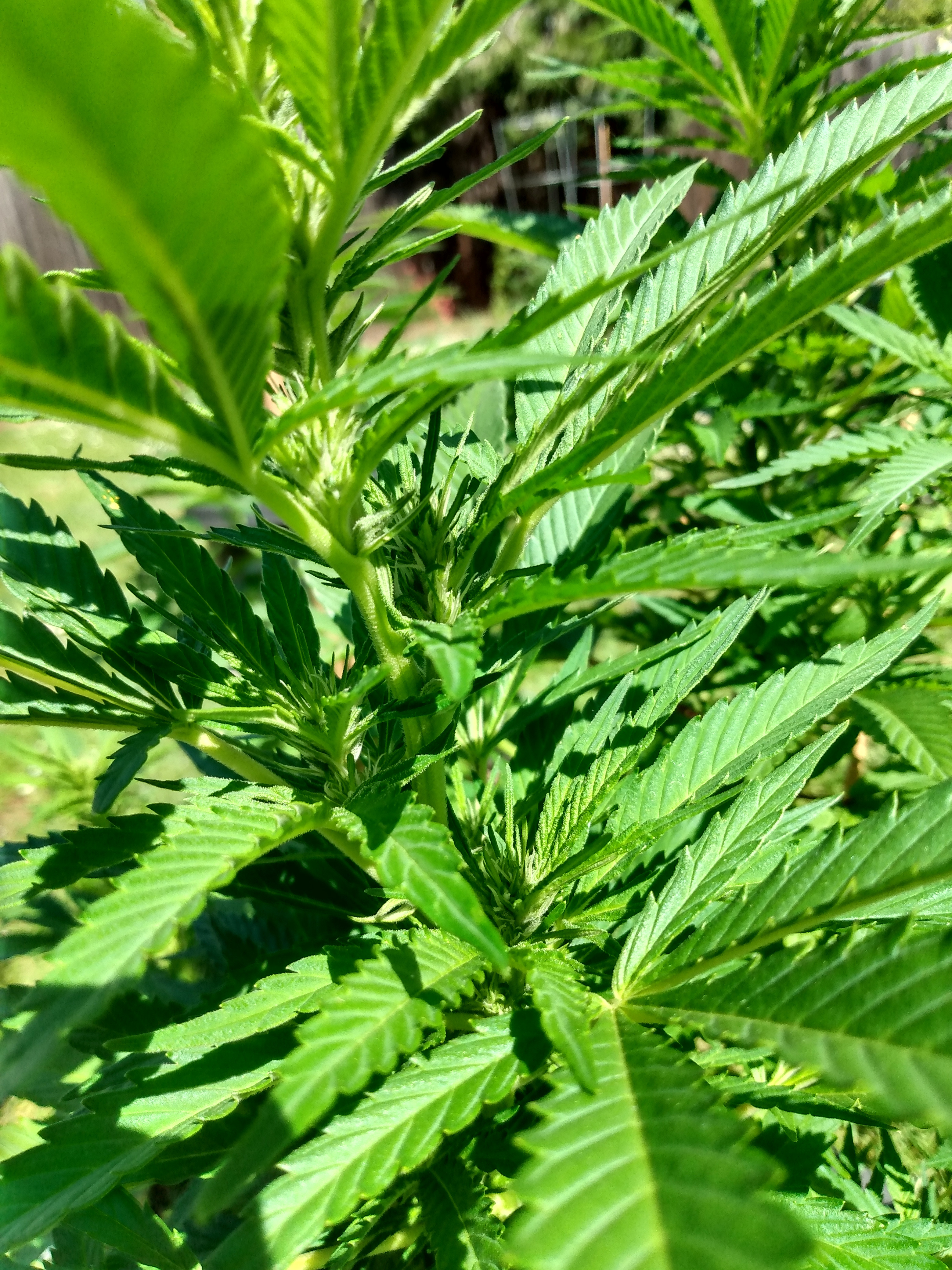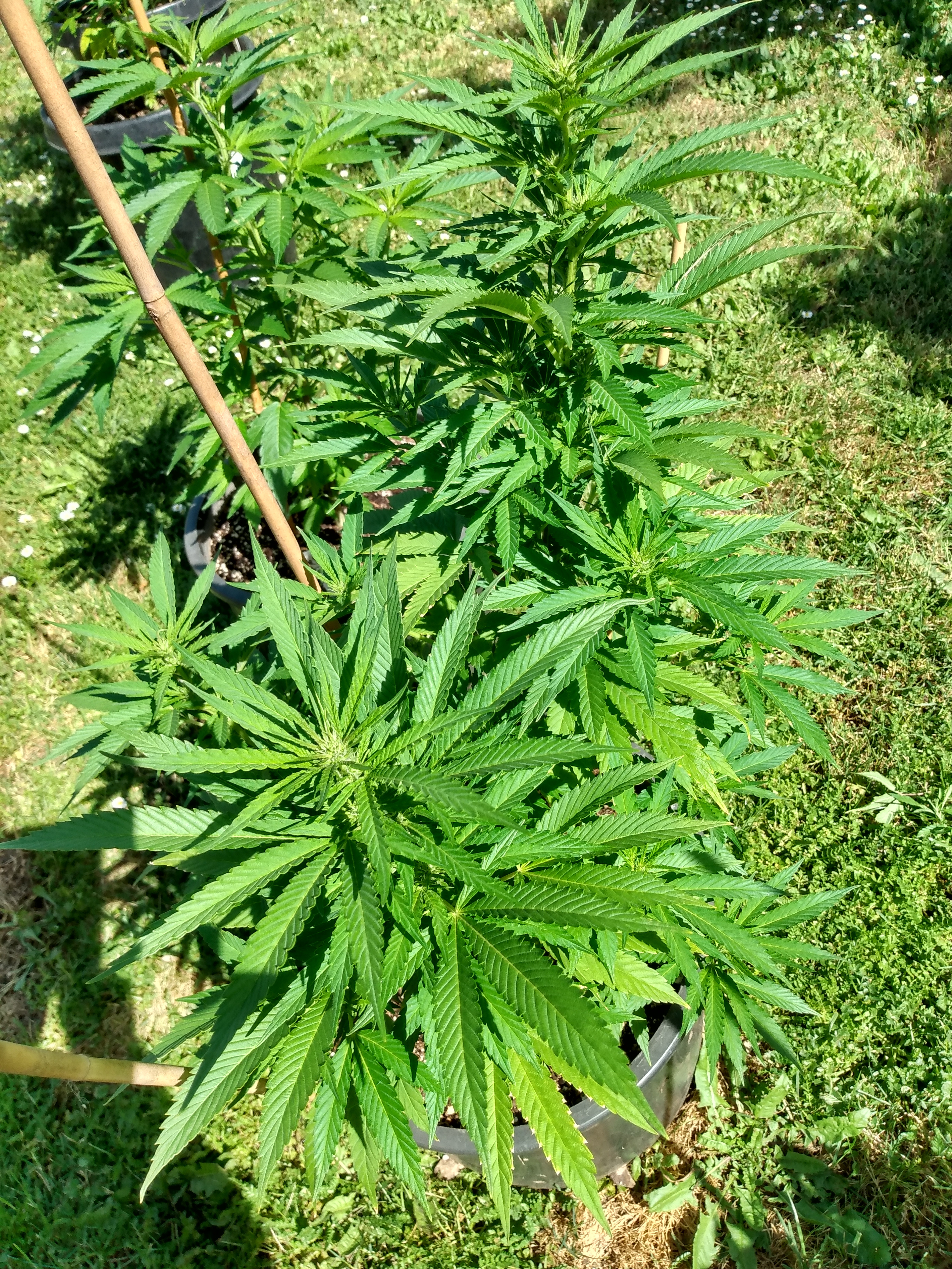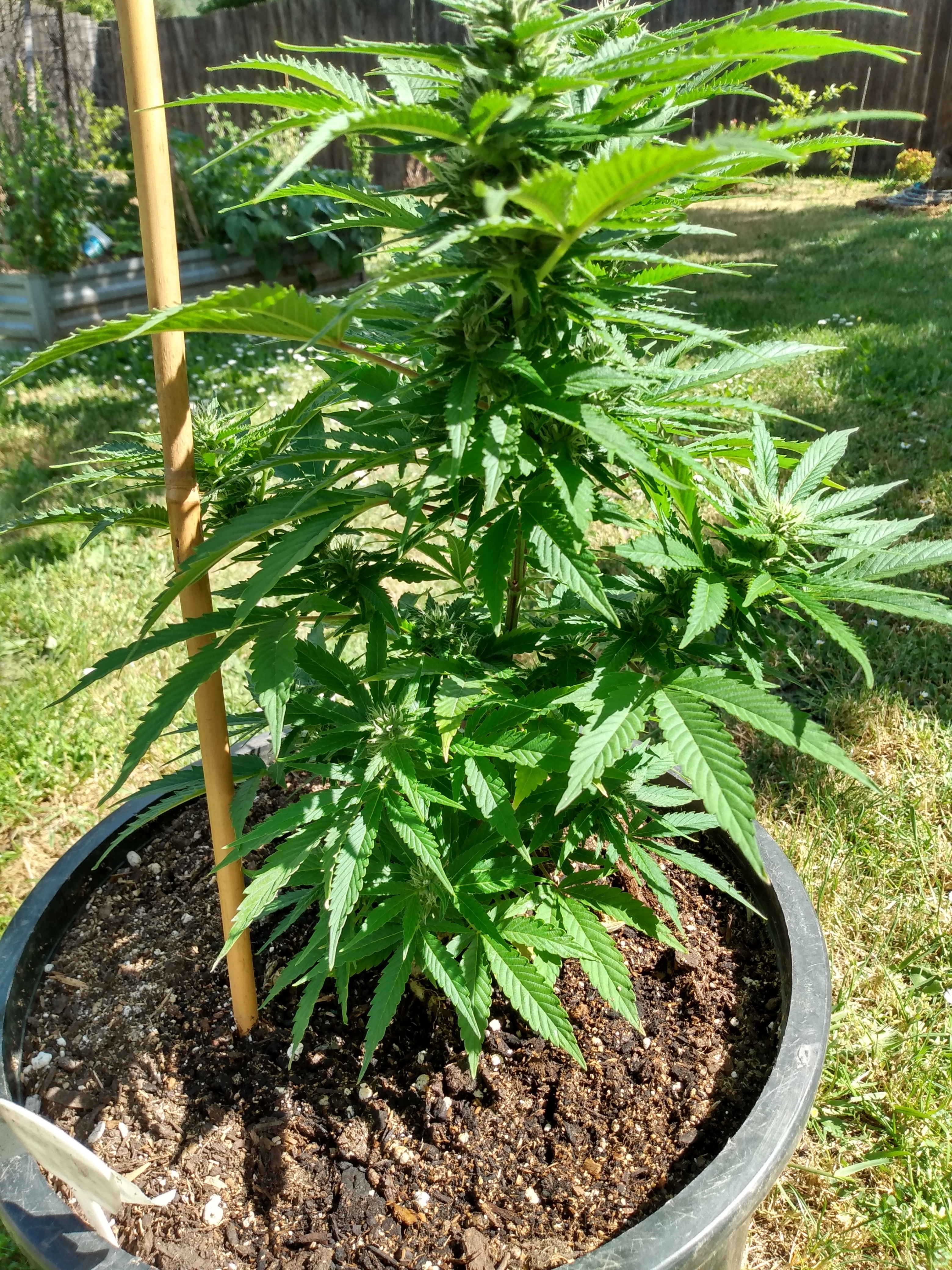 Full strength doses of Dyna Grow given to slight run off about every other watering. Of course i can lift these and bring them out to access them and water. I've taken off very large hand size fans off most of them and doing no other training. Gotta say i'm loving this grow going really well so far no big issues. They are pretty far from the light and i expect stretching when flowering begins no signs yet. I plan on taking the 2-2gal gals outside later in the month as the temps outdoors heats up.
