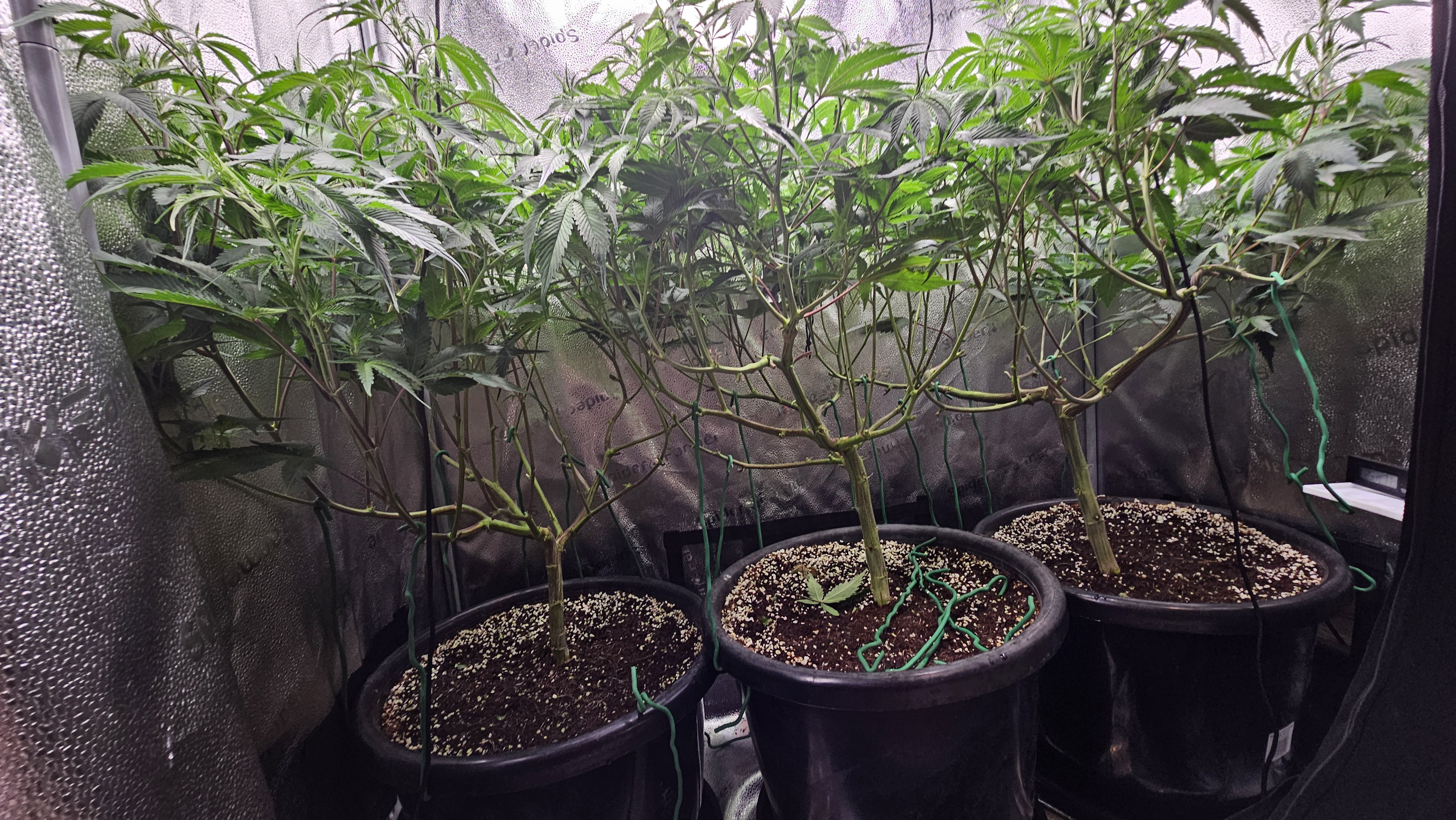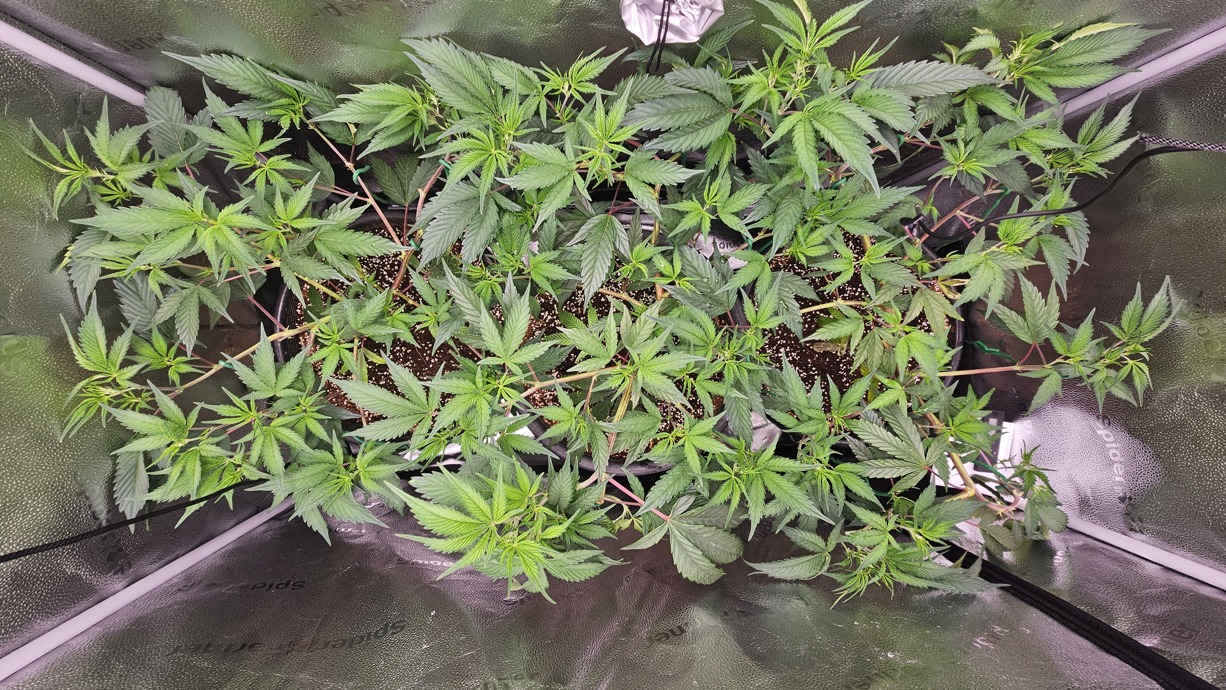 Will leave these in veg until recovered after haircuts, probably add two to three weeks to the grow fixing this mess. Lots of bent 90⁰ main cola stems. I don't want to stress it in flower