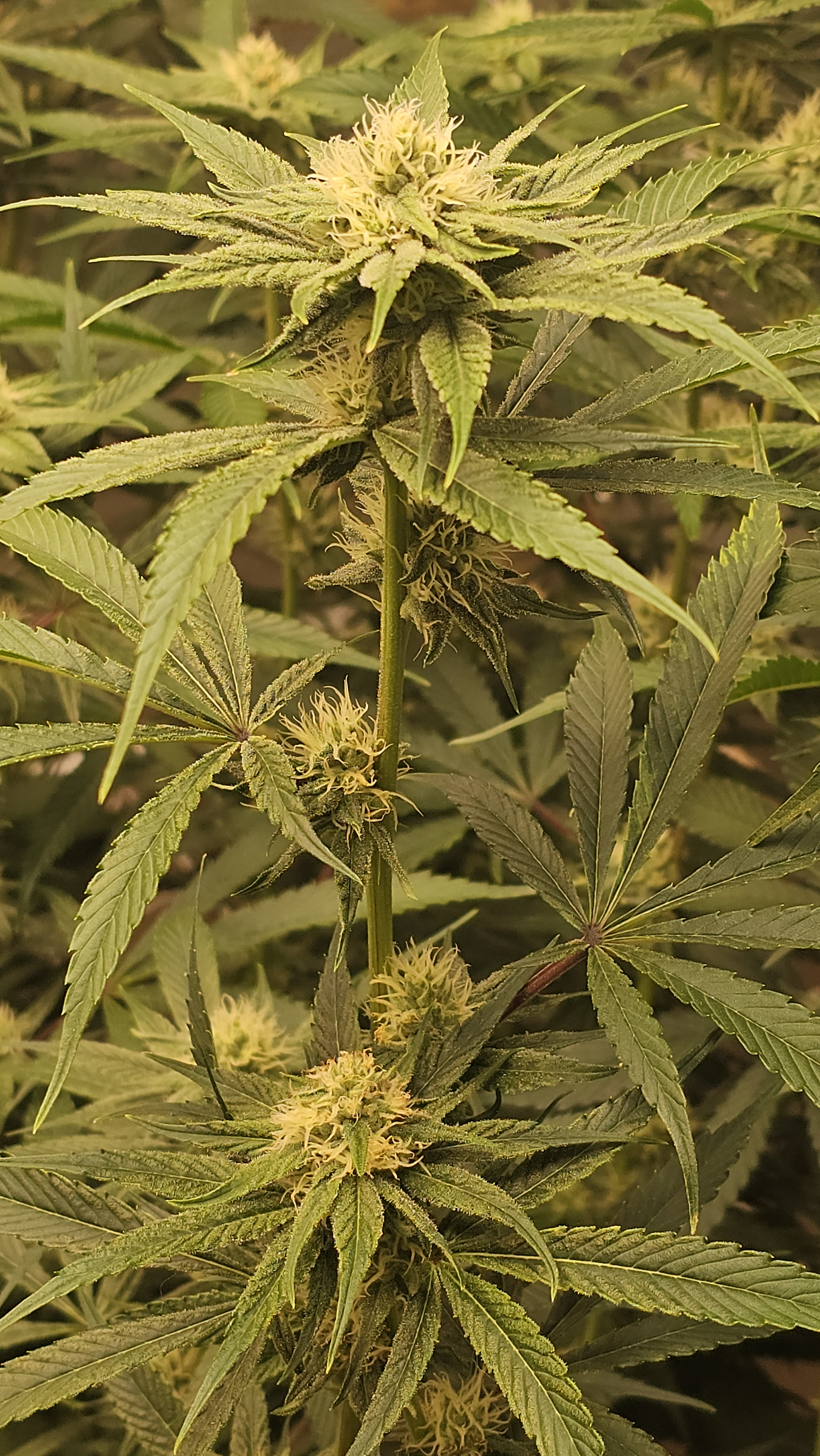 The sativa hybrid is looking indica dominant very much so and it's been, well never, that ive grown a plant looking like this. My two hybrids have always been sativa dominant in their appearance but to smoke mixed results. These have what appear to be the largest and likely be the most dense buds as there was very little stretch even with supplemental reds. It's also an indica trait IMHO.