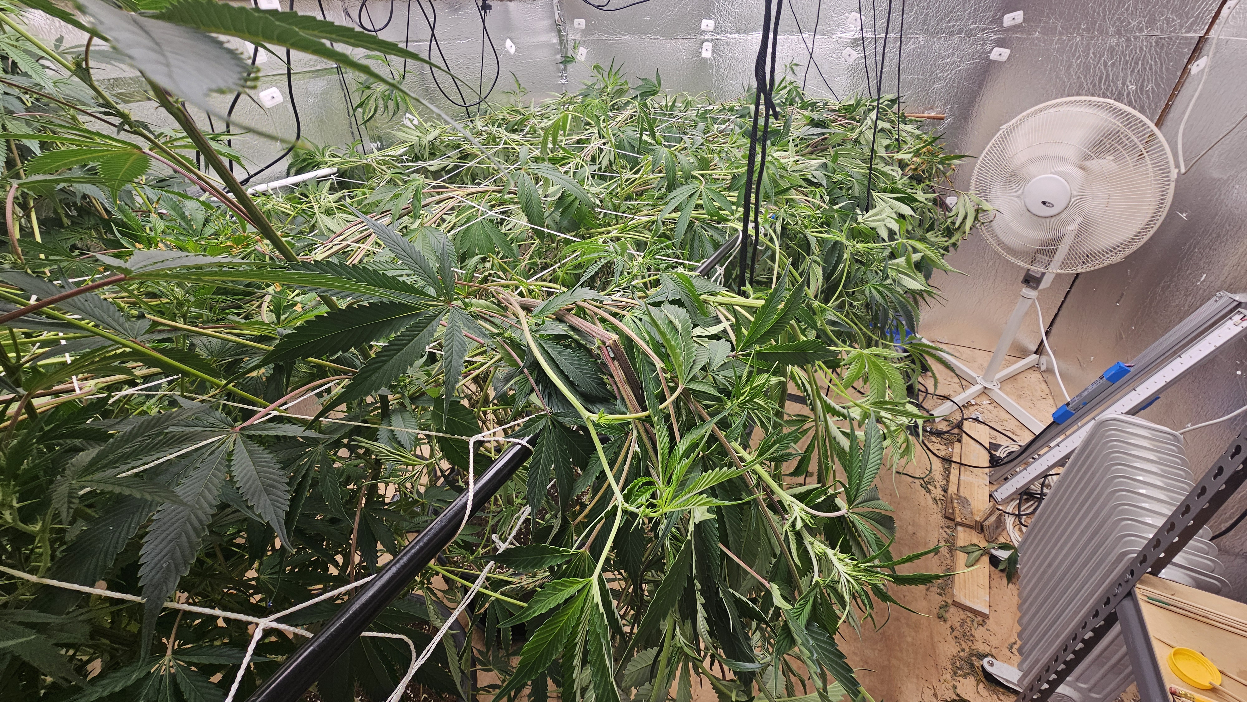 Harvested the sativa hybrid today. Wet trimmed, easy job compared to the other two. Drying @ 18.5⁰C & 57%RH