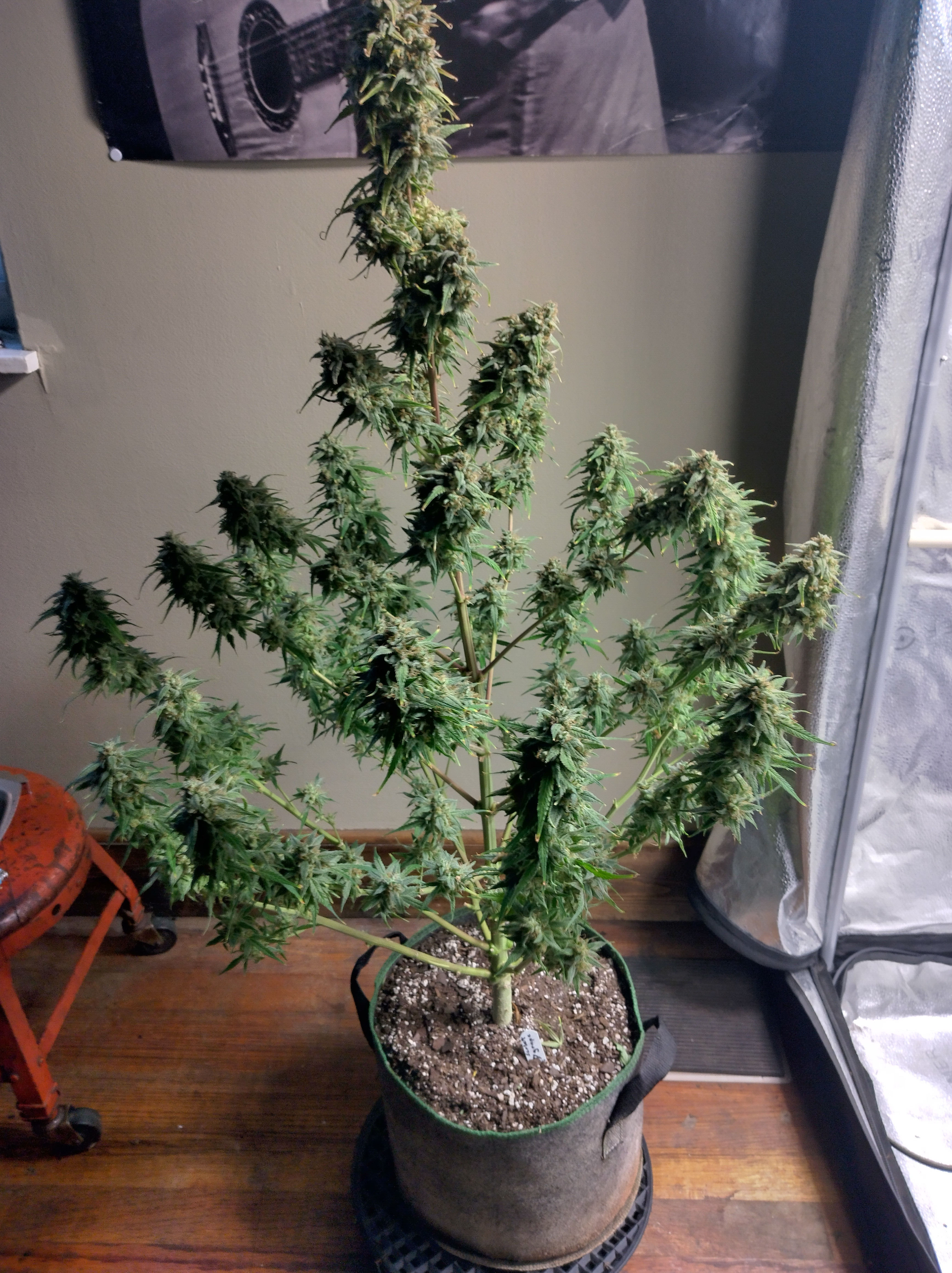 I pluck pretty much as soon as I see a fan block light from the lowers so there isn't much more than non-sugar bud leaves. A little bushier than yours.C'mon, mule!