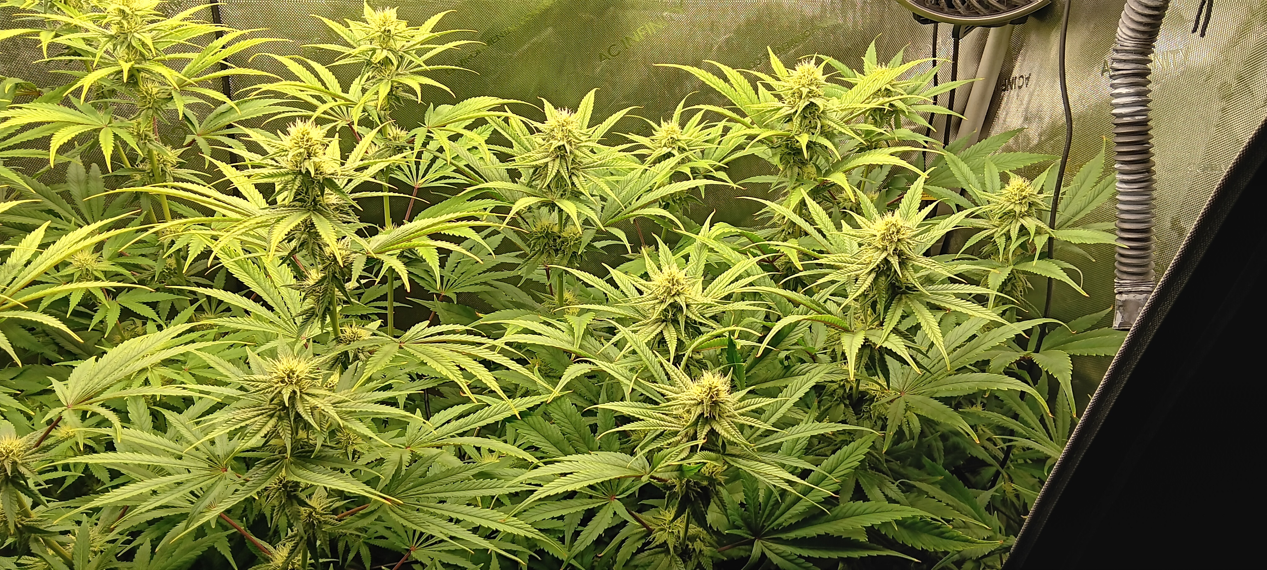 Lights: 20/4 schedule, 250w Migro Aray 4. These were an issue at the start because I was trying to go through my smart controller but that caused a flicker that I didn't notice or correct until about day 3-5 after sprout. a couple of the bunch looked to be stretching, eventually got lights in a decent place. We are now at day 20-22, lights are at 60% and sitting 14in from the top of the highest plant. I do not have a par meter or other light tester but I don't believe light to be an issue here, though it was at first.