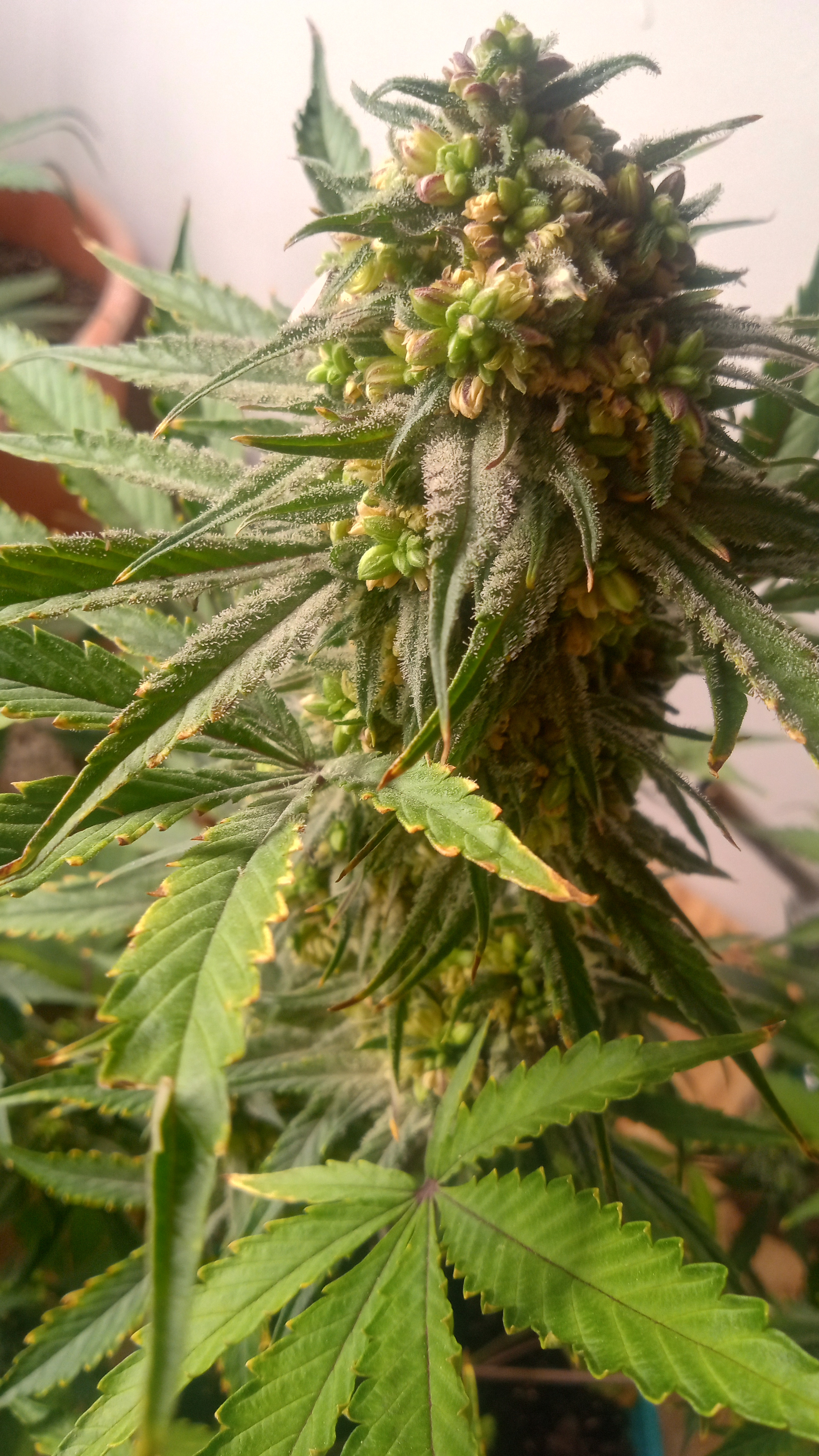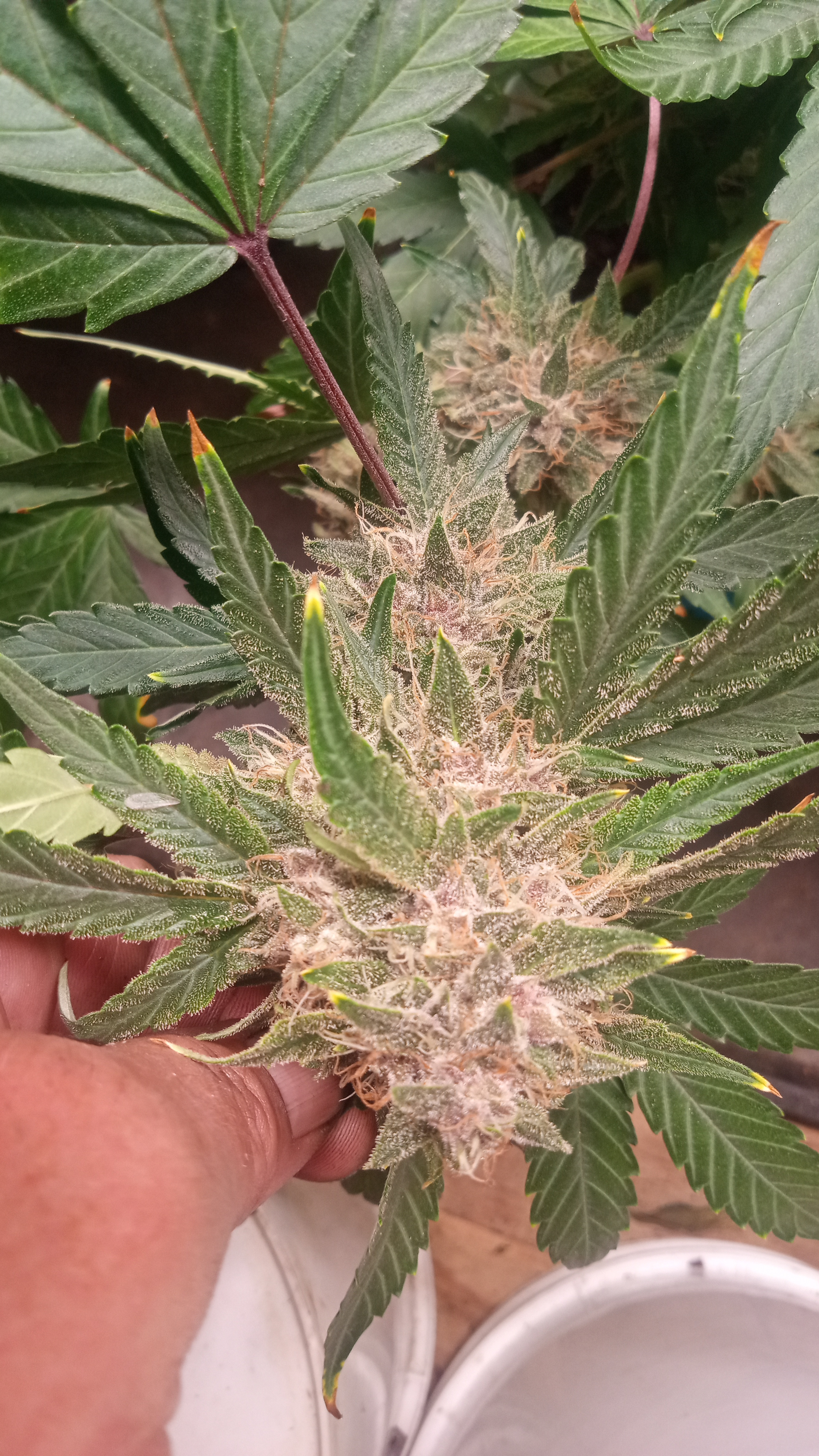 Thought y'all would like to see how I make my crosses. I use sts to turn the females into males. The part a and b regents have been in my fridge for over 2 years. As long as you keep them out of light and heat they have a long shelf life until you mix them. Then it's only good for about 6 months if kept dark and cold. The ladies I reversed are my blue razzberry fem autos. She is blue cake x razzberry runtz. I Got two phenoes of her. The tall green pheno smells like cherries and grape with some floral mixed in. The lavender pheno smells like razzberry bubblegum. I pulled the green pheno to s1 on her own in favor of lavender. The recipients of her/his pollen are Bruce banner auto, black mamba auto and a cross of strawberry cheesecake and sour livers from a friend. I will add pics of the start of the project but here's pics of the present. The one pic of the plant not flowering is supposed to be gammathon og from night owl but I don't think she's an auto. Anomalies happen so I will try her again later.