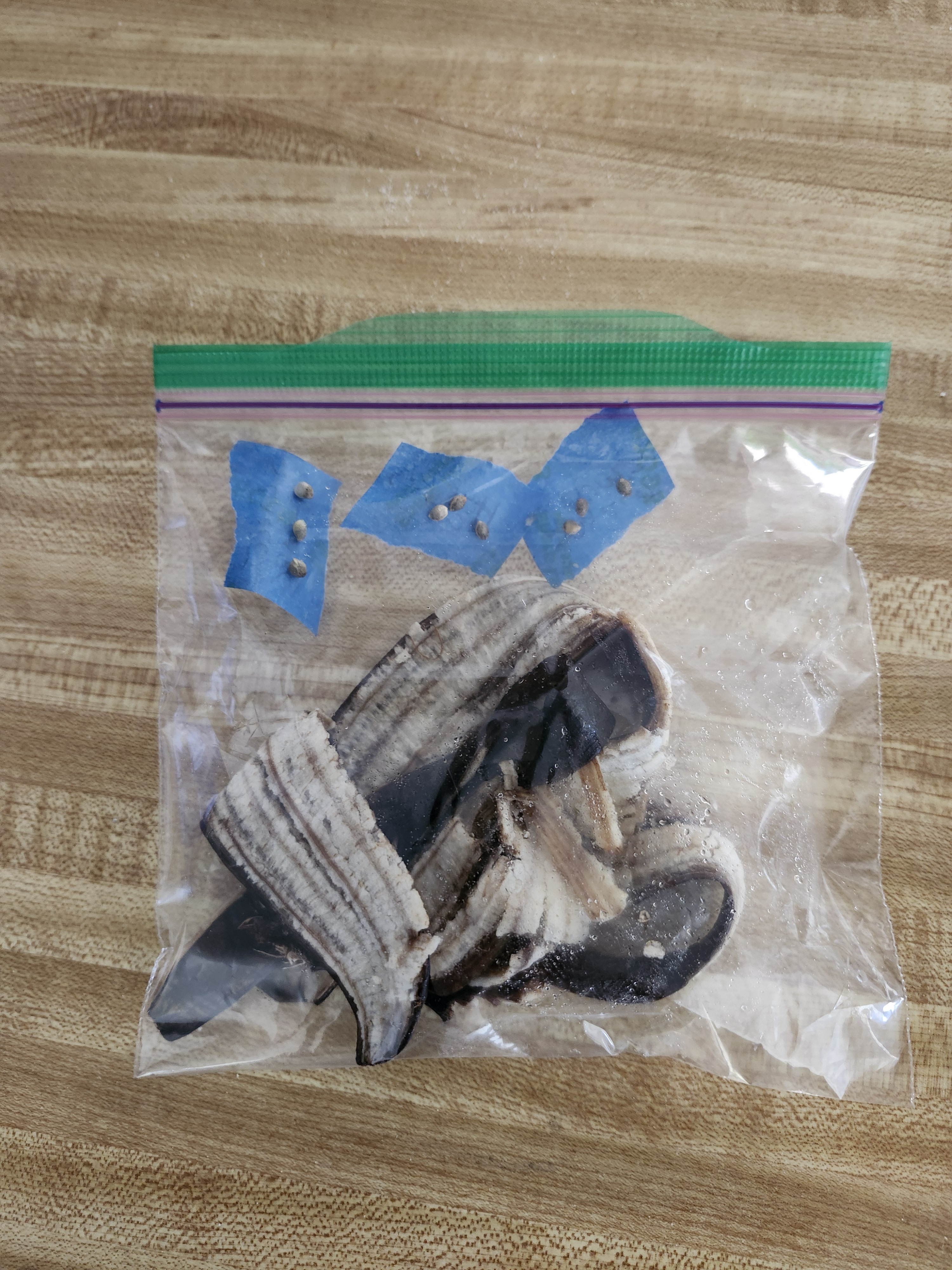 Going to top one and FIM one of each. I want to see how they react to see what is better for autos. Seeds are currently sequestered in a zip loc bag with a banana peel. I want to see what happens if I expose the seeds to Ethelyne gas the peels give off to see how vibrant they get. That's not really a beginner technique but I'm trying to cram a bunch of different experiments into this run.