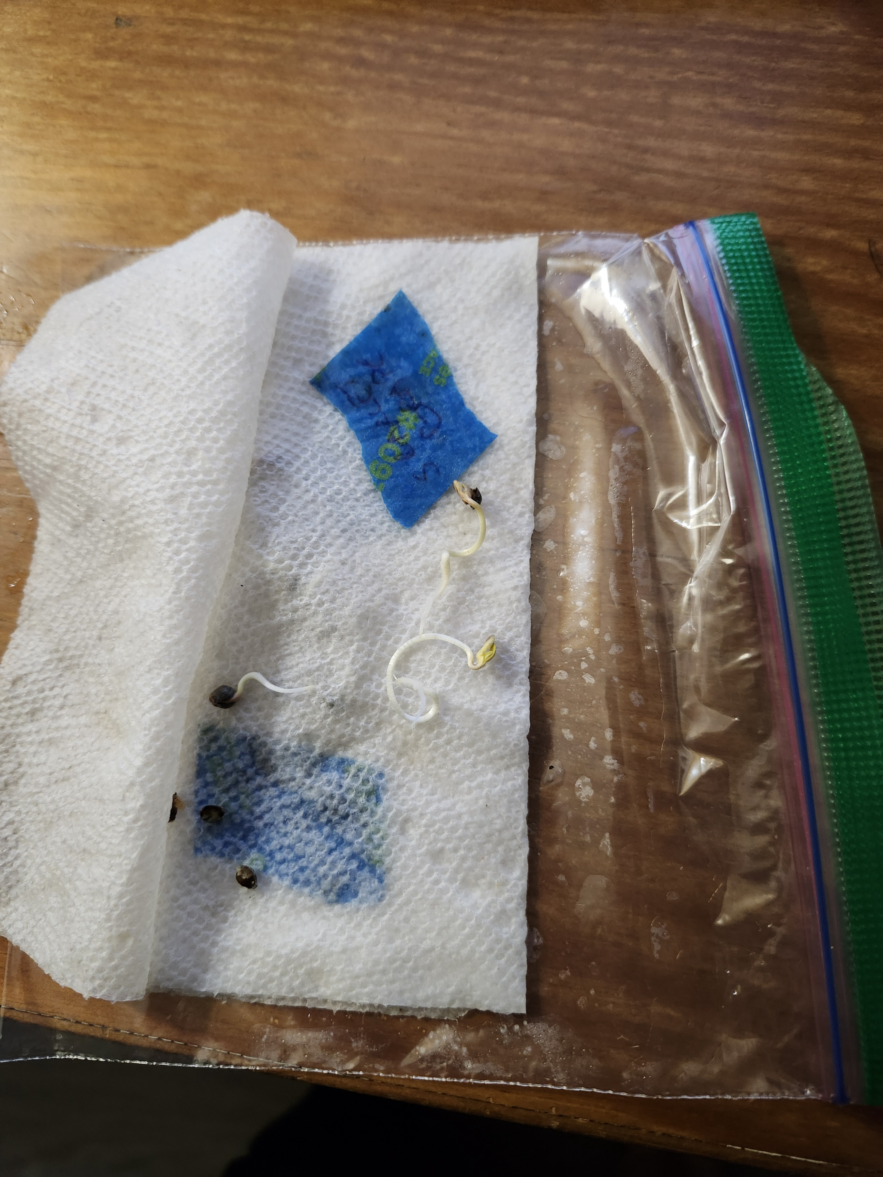 The seeds will be in their "banana" bag for approximately 2 weeks. After that I'll germinate them and plant them in 3 gal pots. I was going to sprout and go the traditional route of solo cup to gallon pot to final pot but I figured their final home is going to be 3 gal cloth pots so I'm going to skip the solo cup and go straight to soil like most newbs would.
