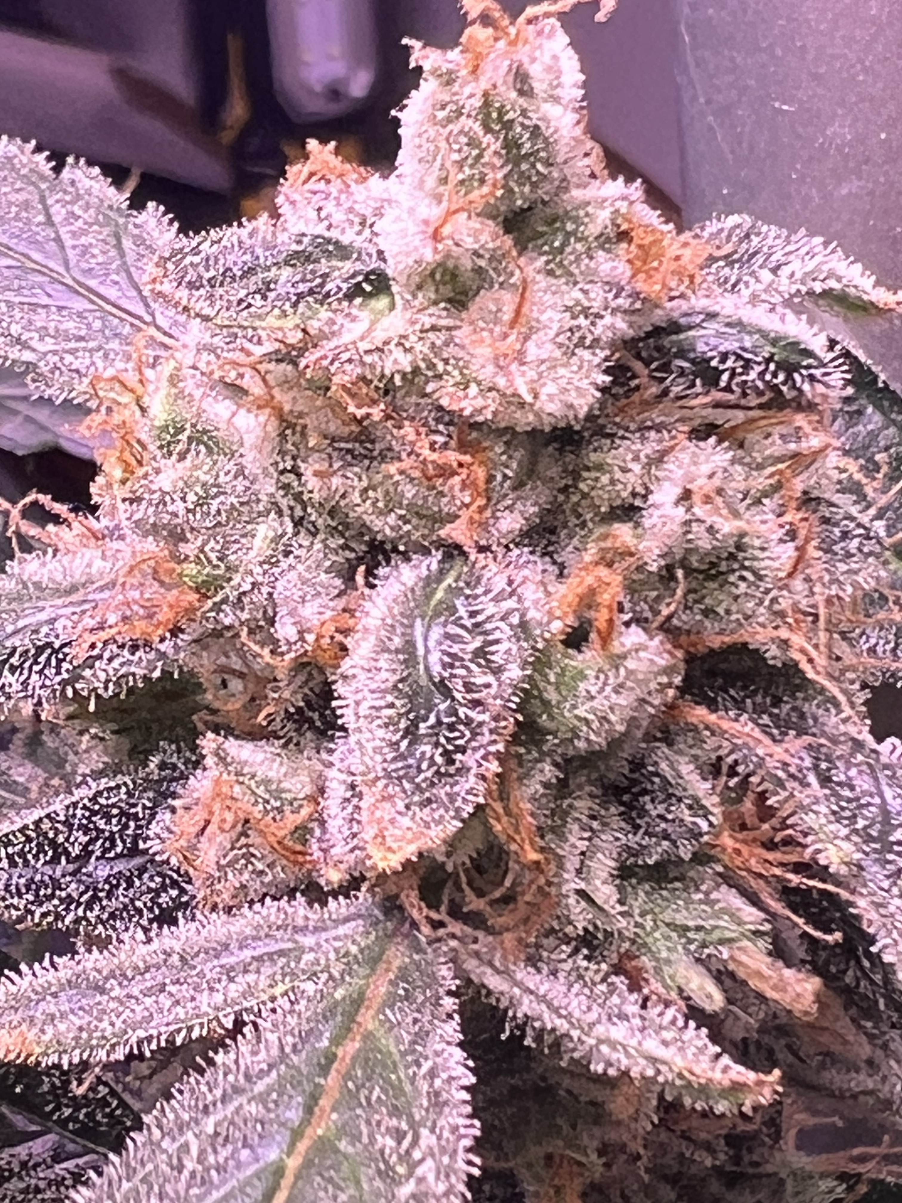My first try at this and I've been nursing this plant for 108 days now. I'm having a hard time seeing the tricomes. I have a loupe but a combination of me being having 70 year old eyes and the fact I'm a newbie....well, you get it.