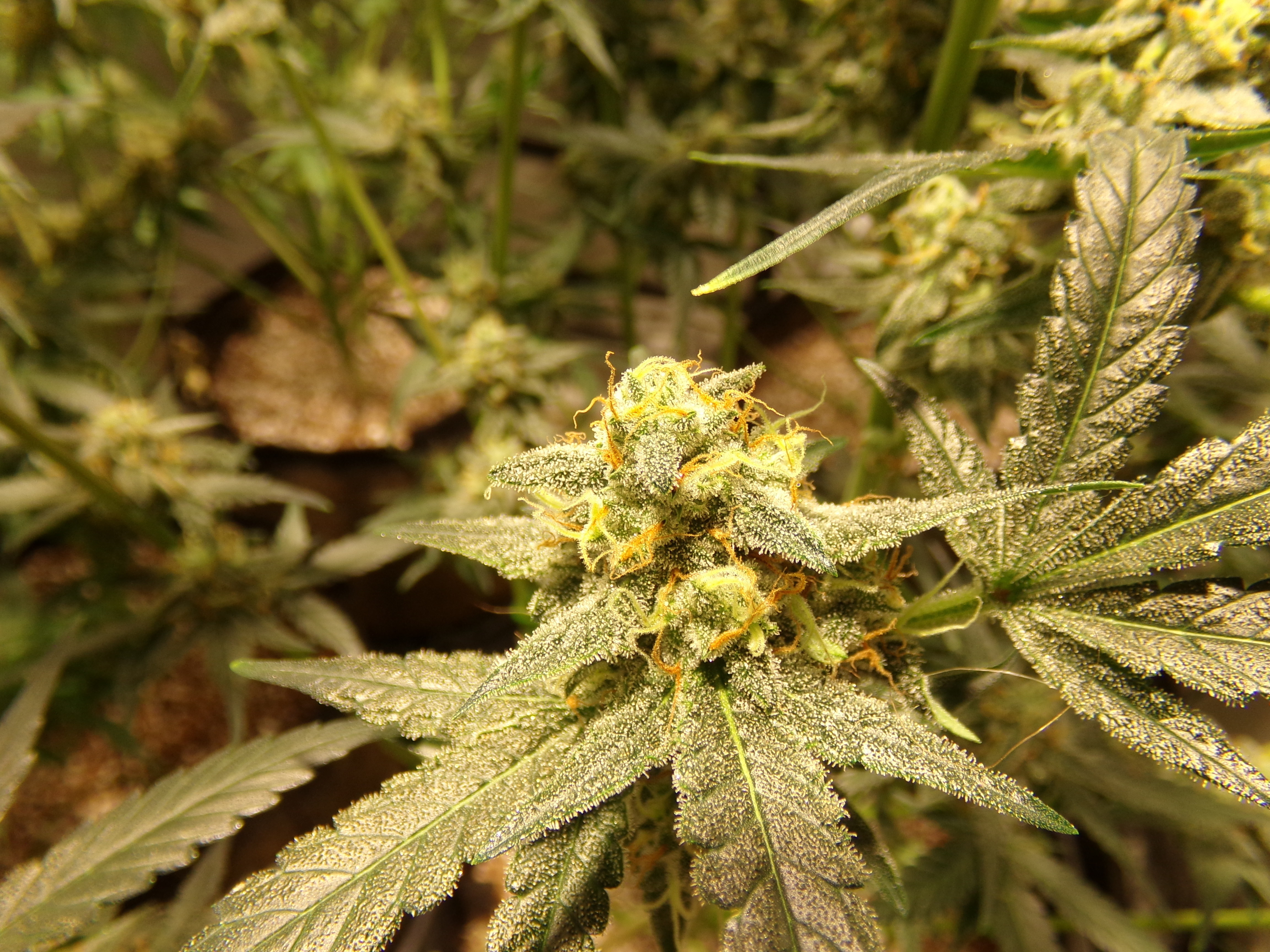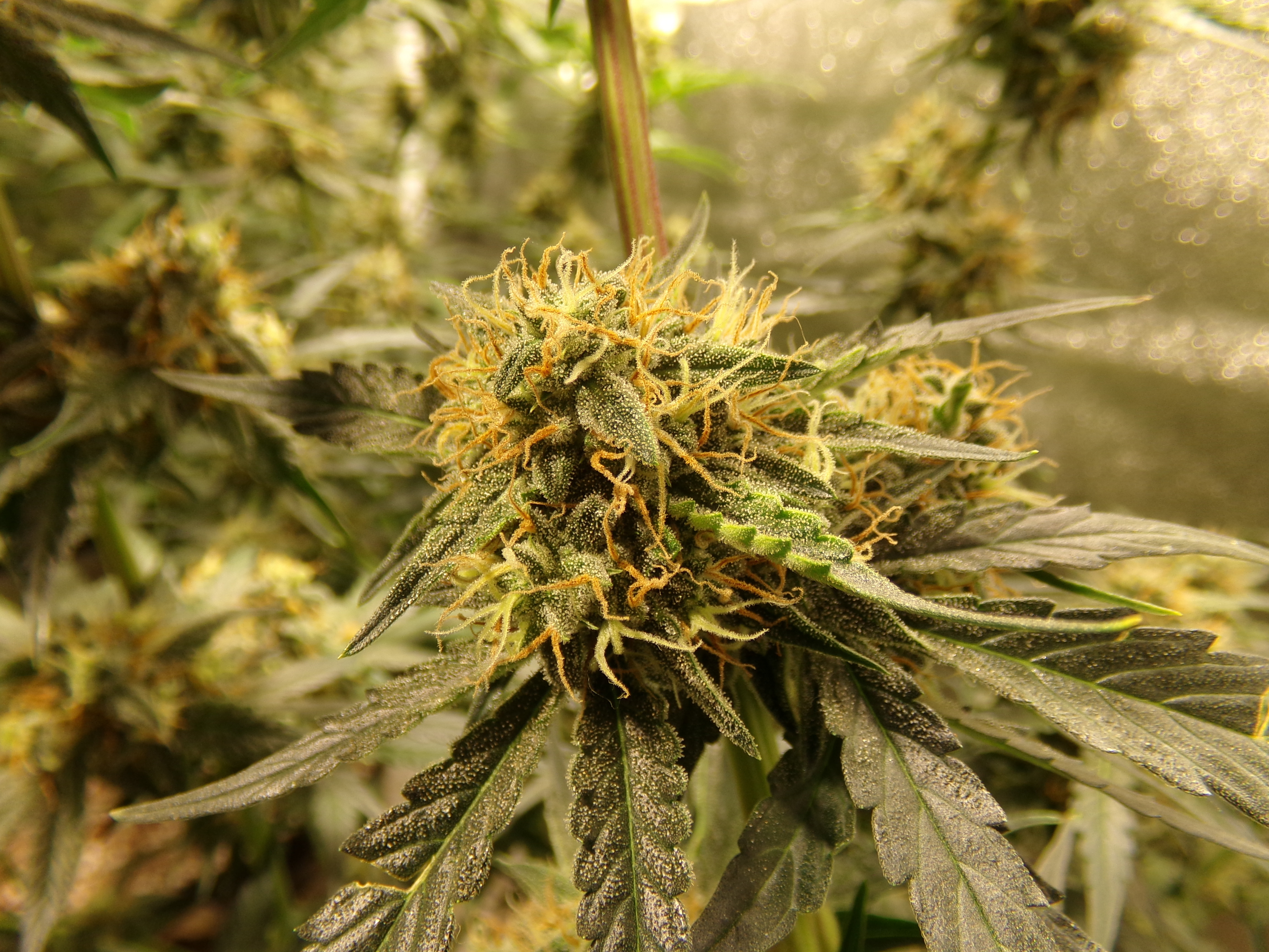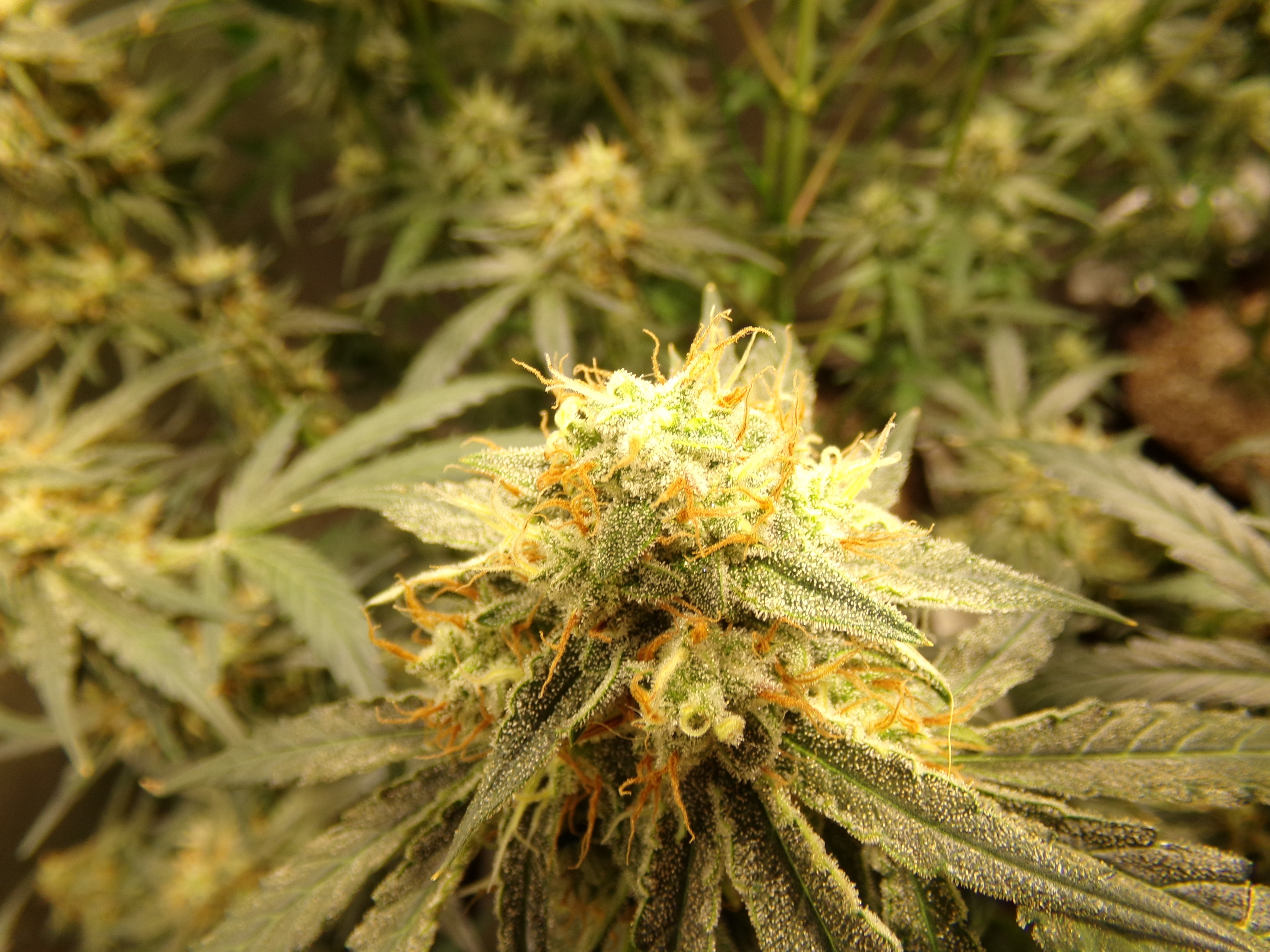 The pheno variations in the fast man's F1's have been crazy. One plant looks to want a good harvest in a couple weeks while another is still showing a fair amount of white hair. That has been typical. One plant has a fair load of trichomes while another practically reaches itself out the tent to stick to me. In my last grow, two plants were a good foot taller than the shortest and there was the codominant stem.