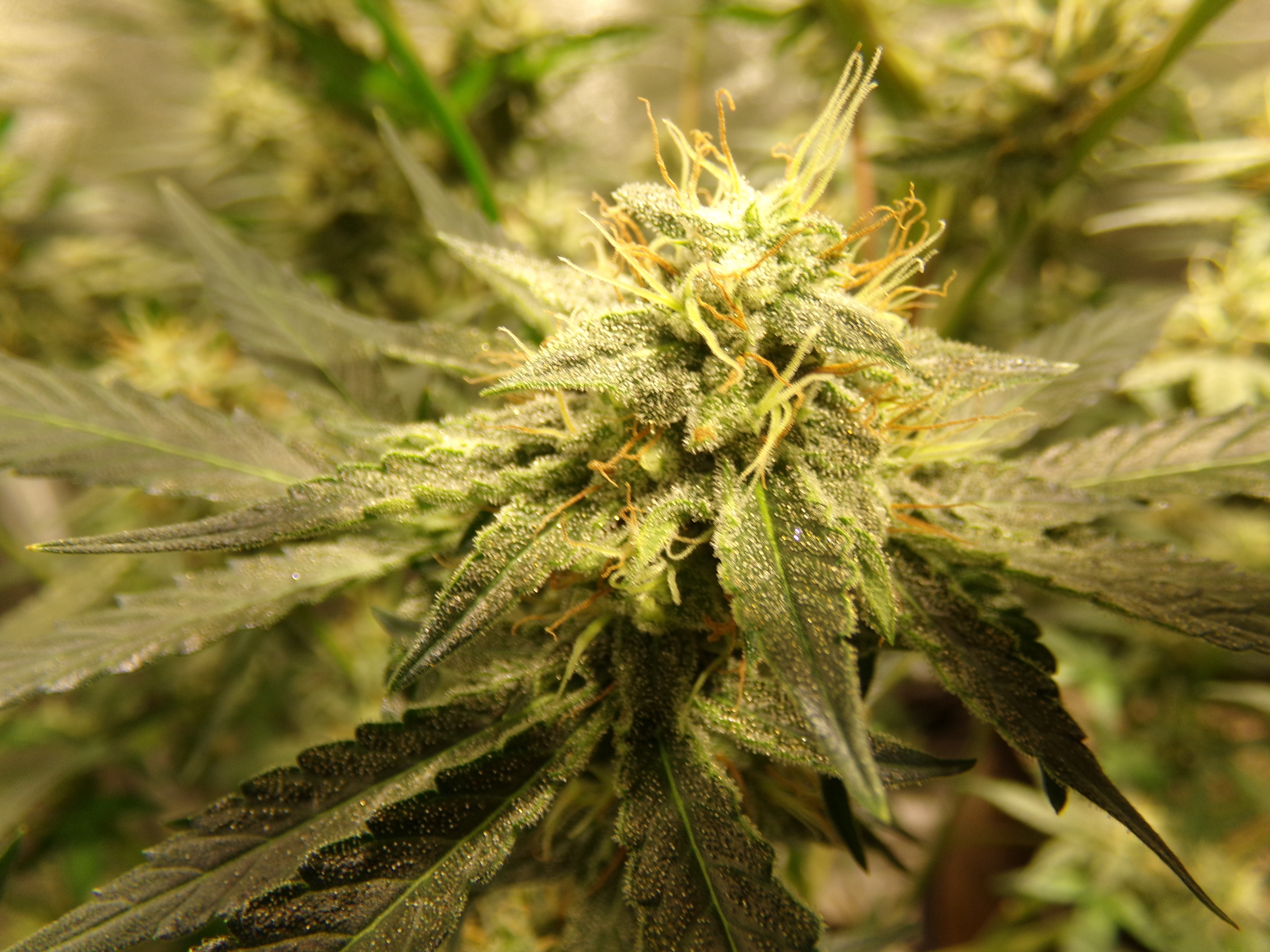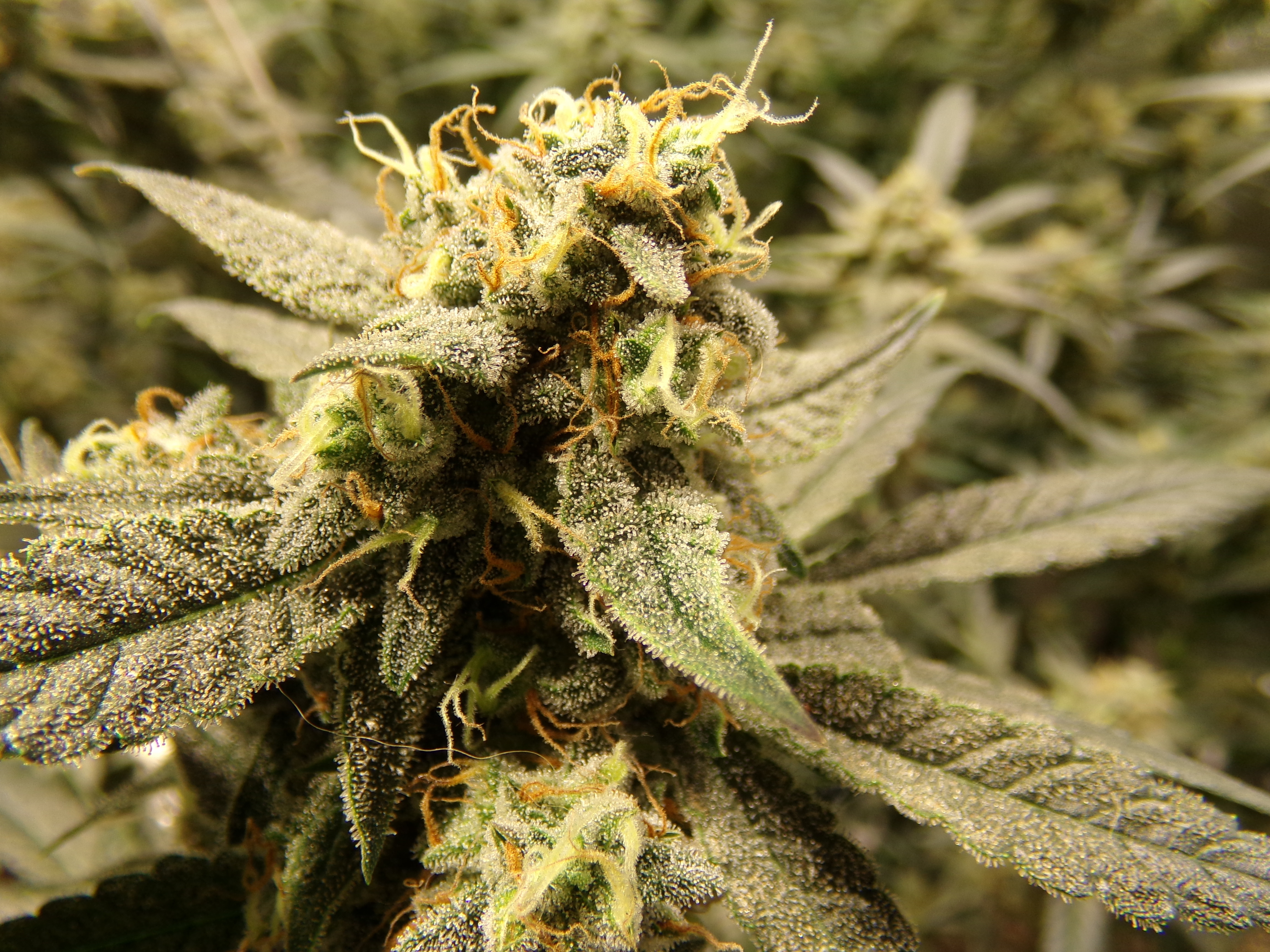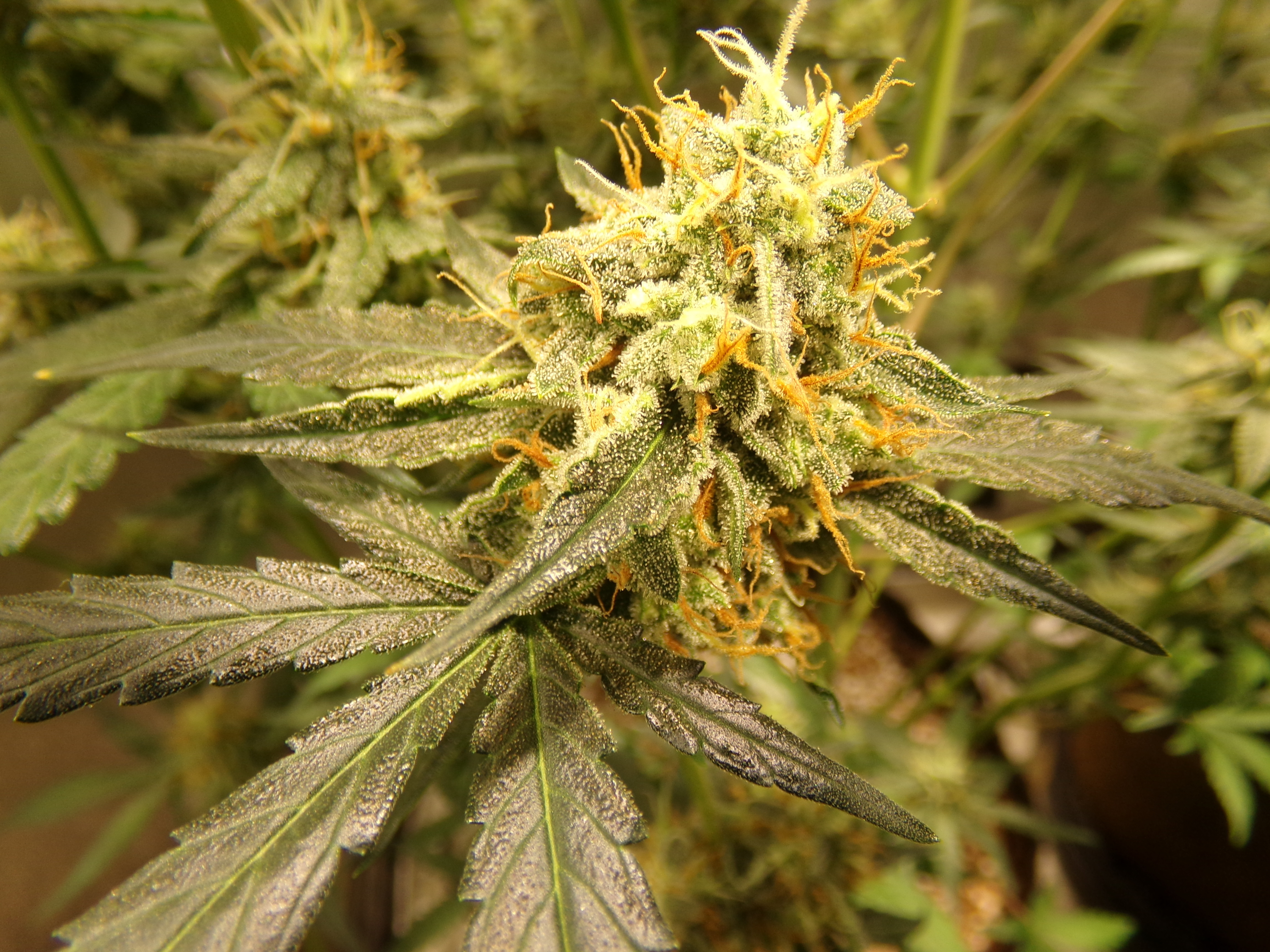 The pheno variations in the fast man's F1's have been crazy. One plant looks to want a good harvest in a couple weeks while another is still showing a fair amount of white hair. That has been typical. One plant has a fair load of trichomes while another practically reaches itself out the tent to stick to me. In my last grow, two plants were a good foot taller than the shortest and there was the codominant stem.