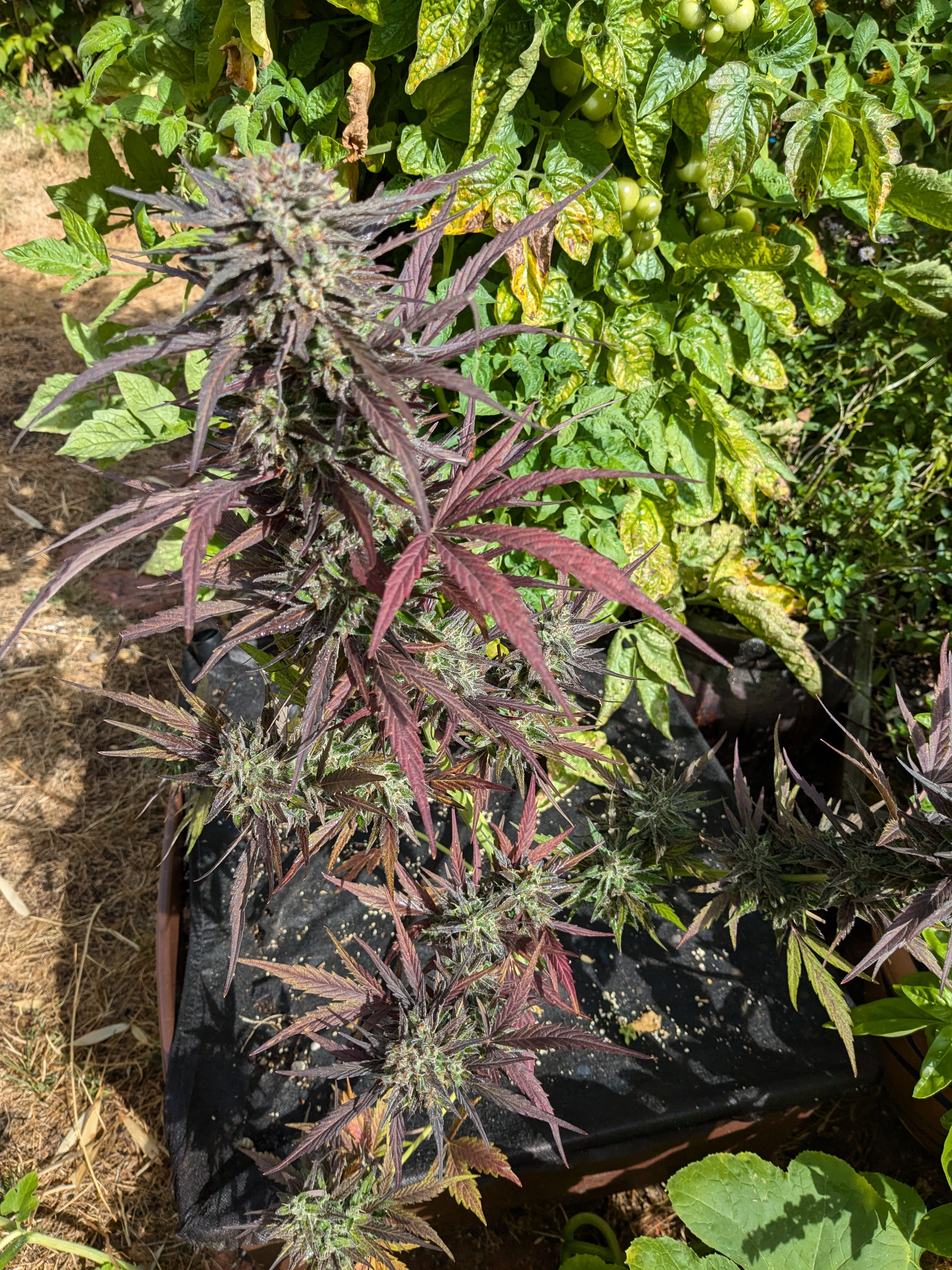 The Pound Cake and Devil's Food Cake autos from Going2fast are doing really well, as is the Honey Peach auto from Sweet Seeds. the DFC is a couple of weeks behind the others and doesn't have much smell yet but I can already tell the Pound Cake is going to be a winner, it's already beginning to glisten and has a super pungent stank aroma. Pound Town is G2F's cross between Humboldt Seed Company's Pound Town and Gas Reaper's Bessie Cake, apparently 2 must-haves, so the combo might be even better. The Honey Peach is also beginning to express, has that trademark Sweet Seeds sweet/floral smell but it's more of a background than what I found in their CBD red and what had expressed in my Red x AK-47 auto that some of you grew. It's fronted by a fruity smell that I wouldn't quite call peach yet but stonefruit might be a good description. It's smelling real nice. Sweet seeds doesn't give lineage but I'm positive there are some siblings or cousins in the Auto Red CBD and the Honey Peach CBD. Sweet seeds says it finishes in 8 weeks from seed and it popped on July 15th so should be ready by Sept 15th but I find that super hard to believe and think it will be at the earliest the first week of October.