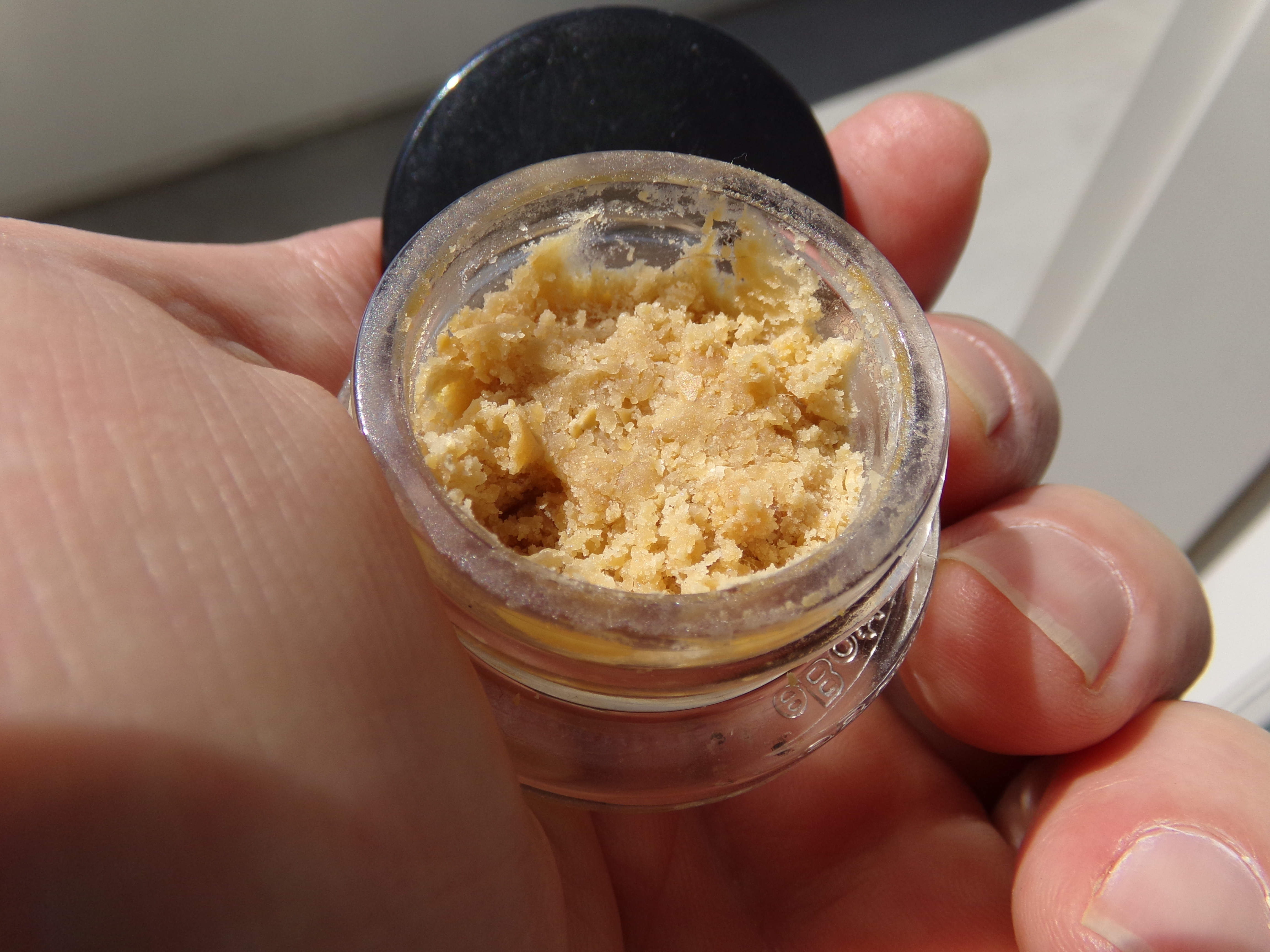 My current stash of gladzores. 3.5 grams from... I dunno... what might have been 14-21 grams of plant matter. I do not like absolutes when it comes to things like best and strongest and whatever medicinal in talking about weed. What I'll say is this is a one-hit-wonder. One dab and I'm done for a bit. I am rarely done for a bit after a single dab. Rarely-rarely.