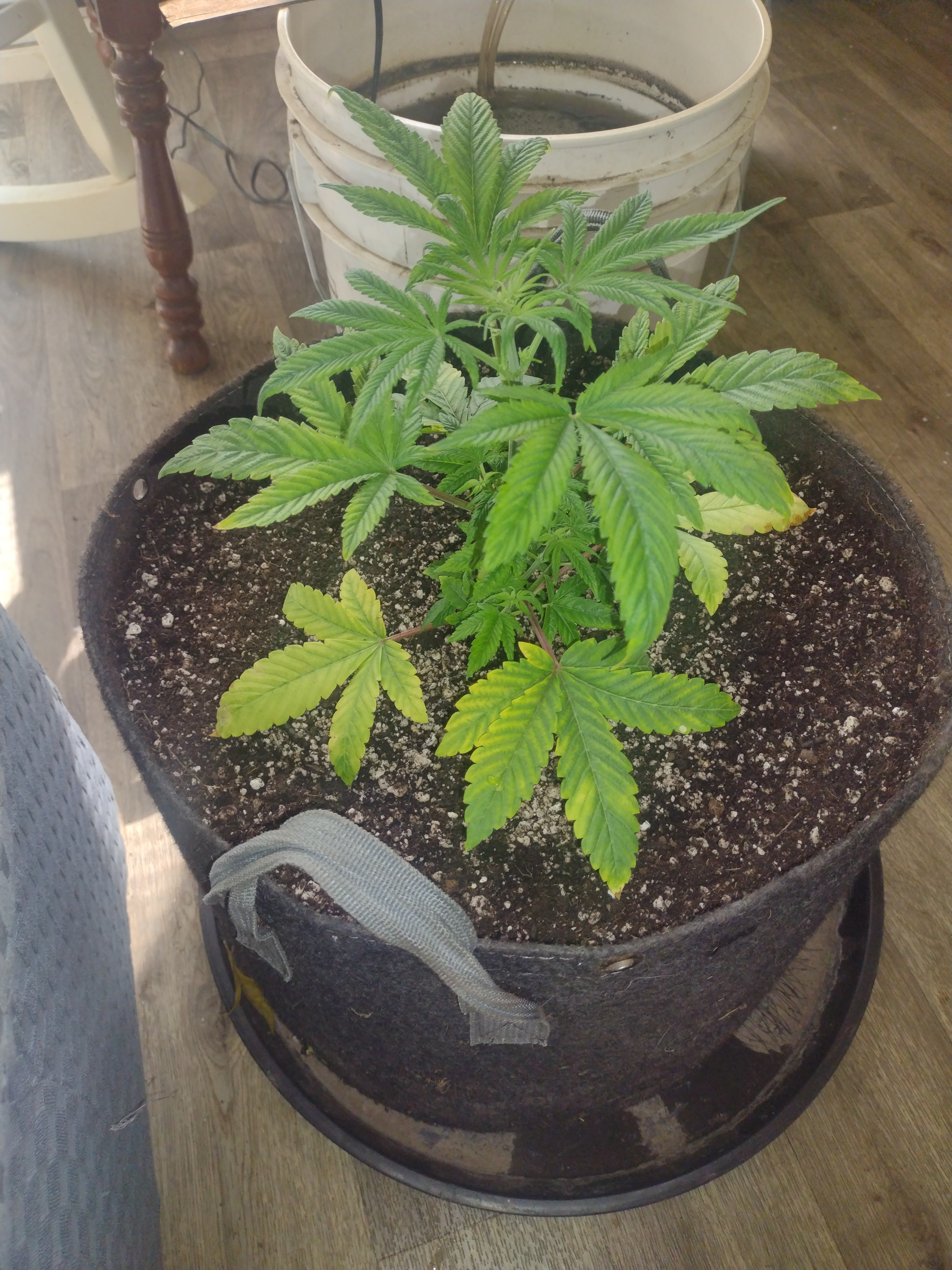 I'd consider bigger pots for those larger outdoor grows and I love black plastic pots for them too.Flower Room: 11' x 7' x 7.5'H, 480w AC, 13gal/day dehumidifier, 1.5gal ultrasonic humidifier, 60gal (27gal usable) nute tank, 16" pedestal fan & 18" wall fan. Lighting and climate automated. Hand watering.