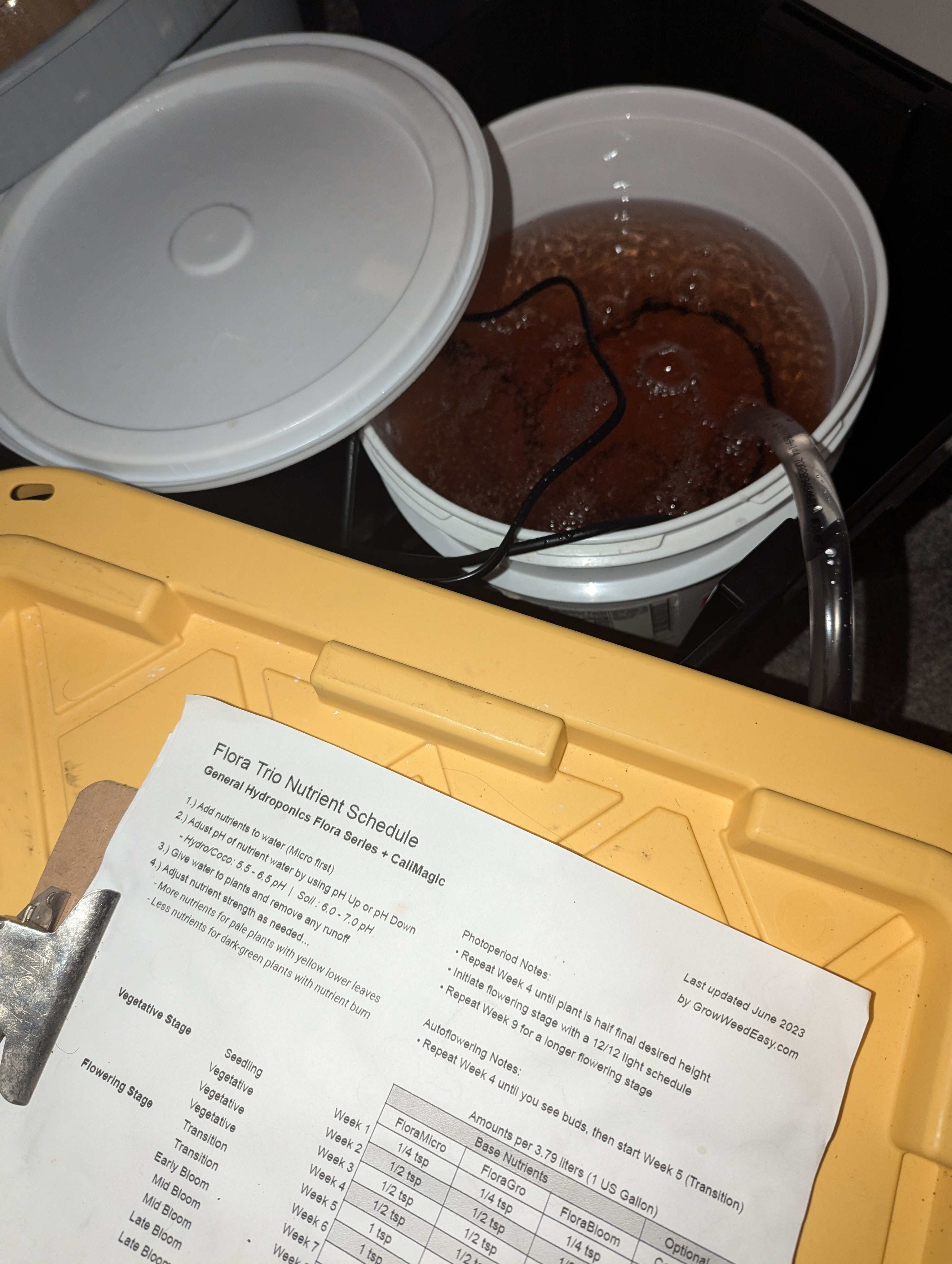I up'd the dosage. 2 feedings are not enough. It's still healthy, just the slightest shade of yellow. I like this auto-feed. Although it's time to scale up from the bucket to the whole tub. I just wanted to test small and then scale up. Easier to add than take.