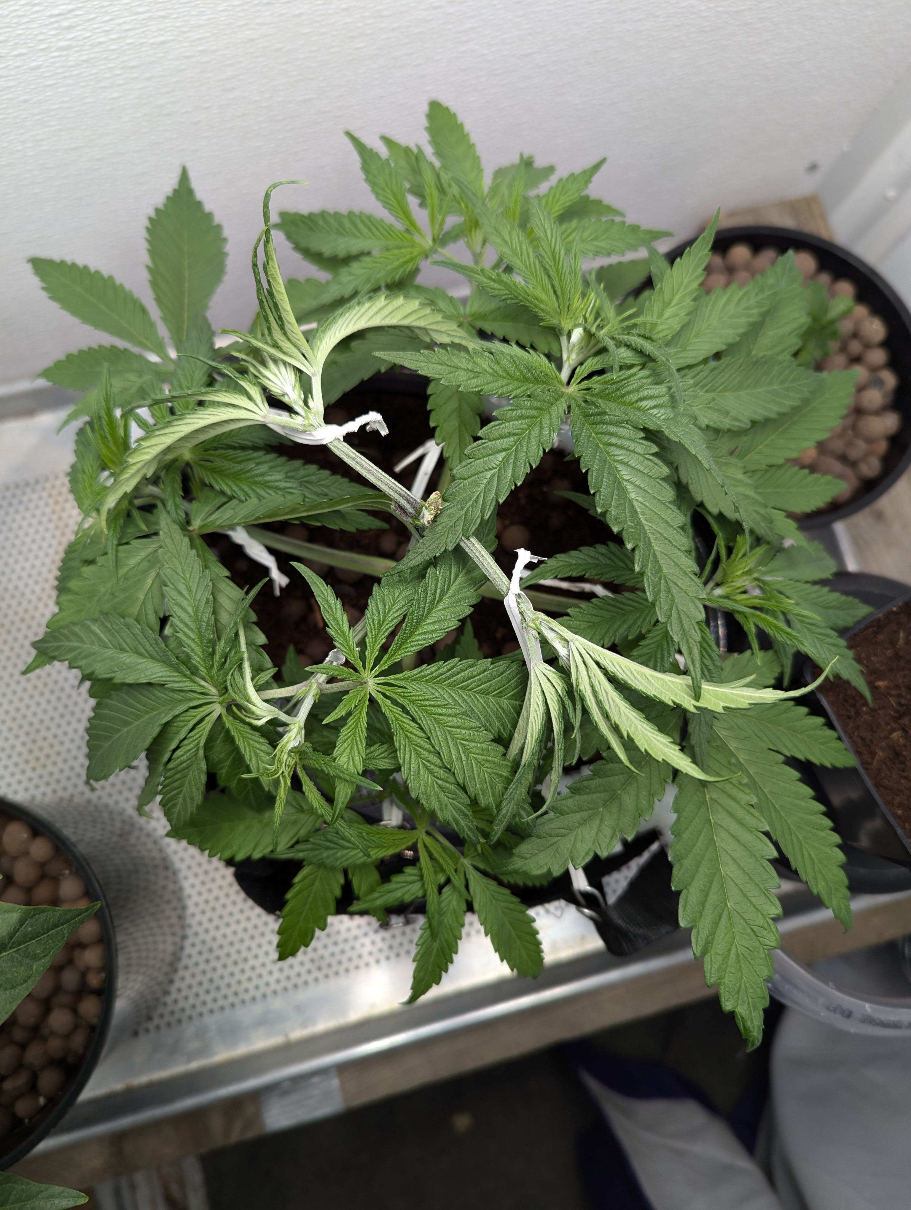 Haha I washed my hands well. Here is a closer picture of the cut. Maybe I should've cut a little farther down the stem, I mean it's not too late to cut a little more. I was planning to use LST to widen the plant and create more bud sites. Just need to find something to anchor to the grow bag without ripping it.