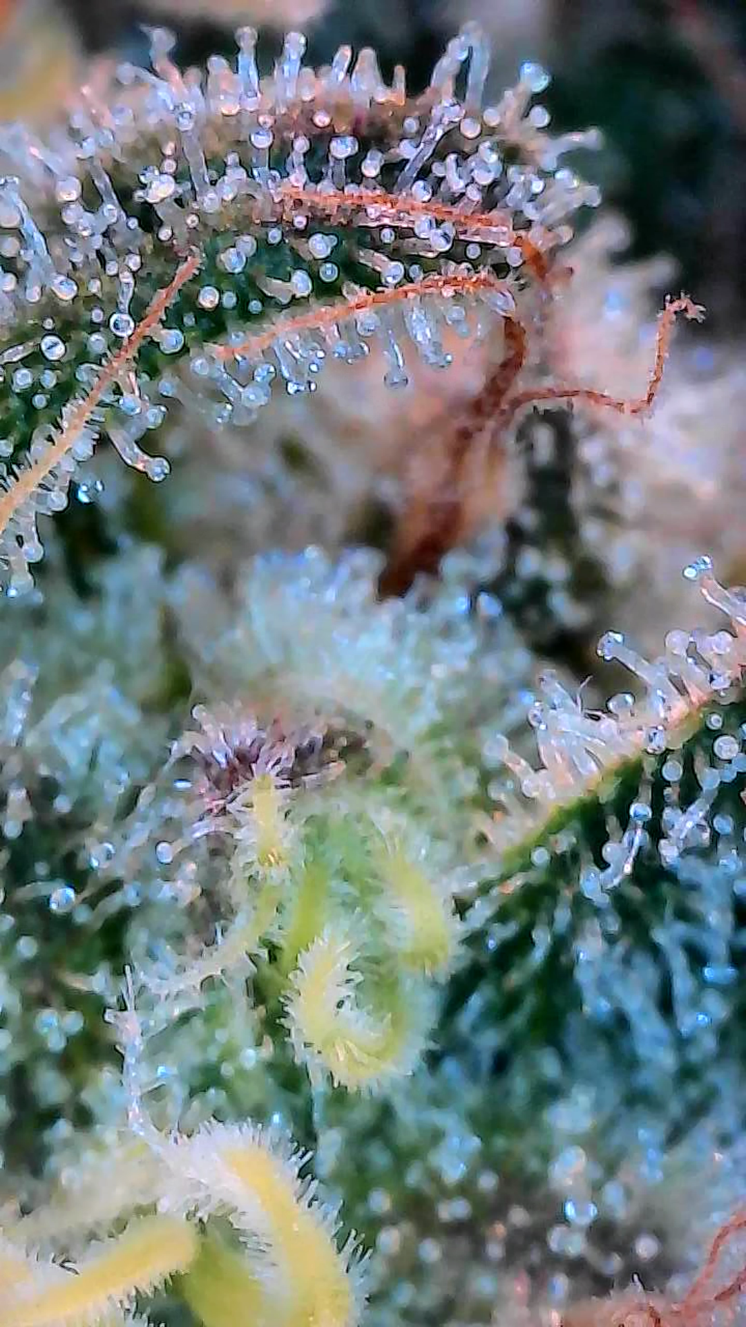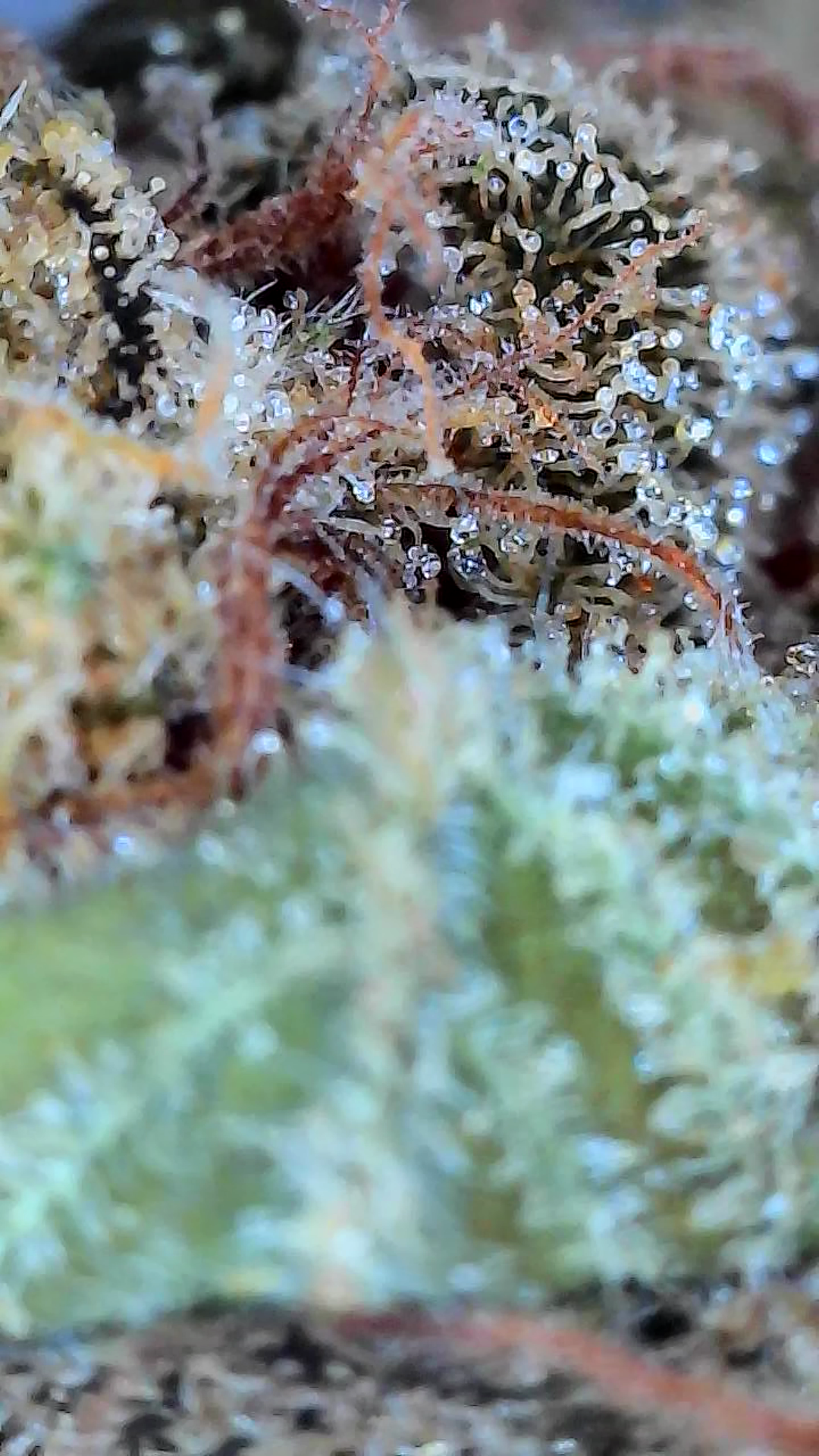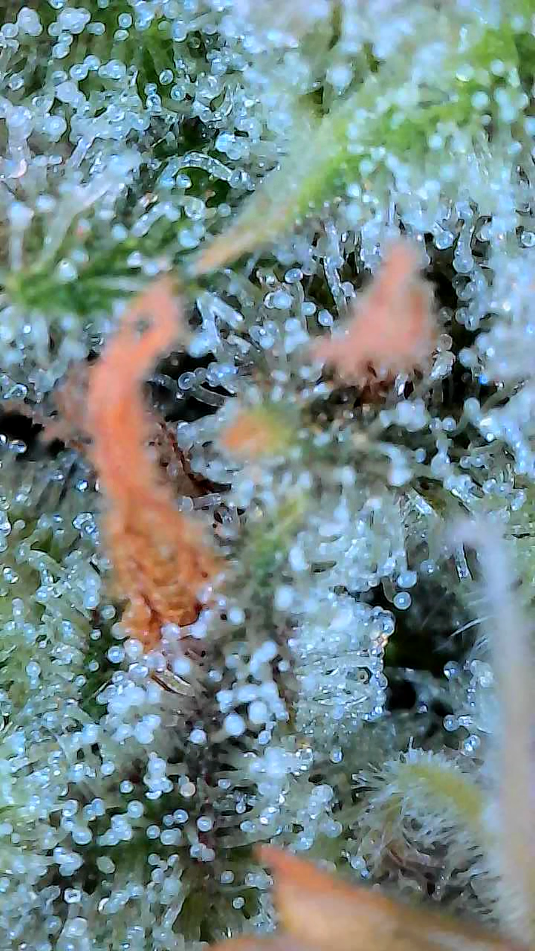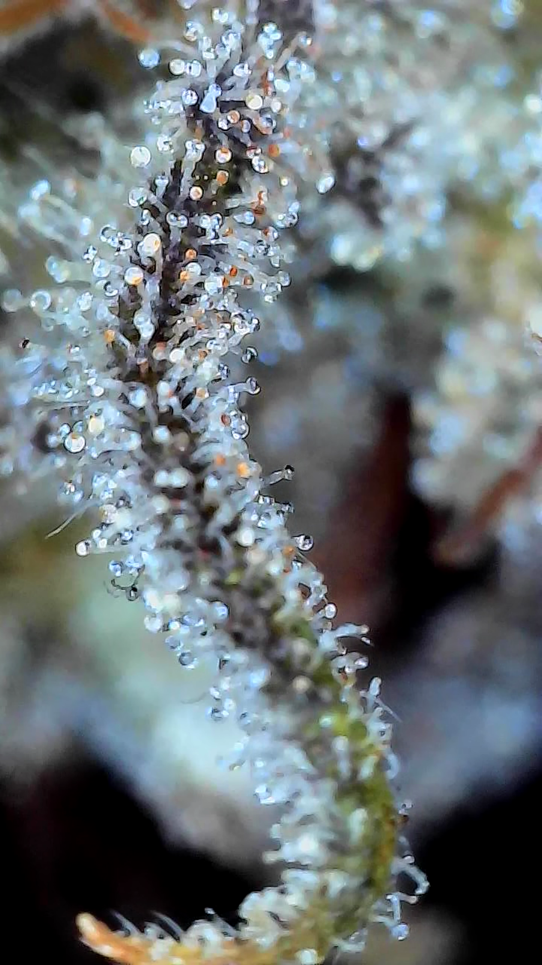 3 pics are from day of harvest, 3 pics are about 36 hours after cutting, and 3 are about 72 hours after. Same bud. Didn't know if anyone has actually observed trichomes develop during the drying and curing process. I'll keep it up dated as time progresses. Notice they are still maturing during the drying process....Something to keep in mind when going by trichome clear, cloudy, amber to gauge harvest window.