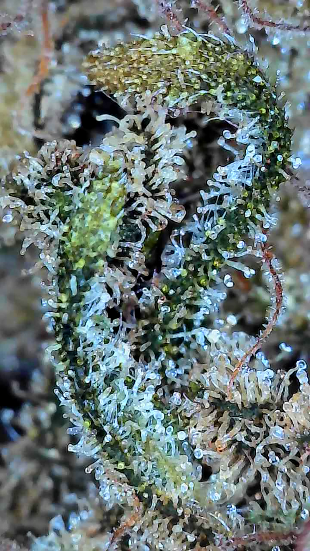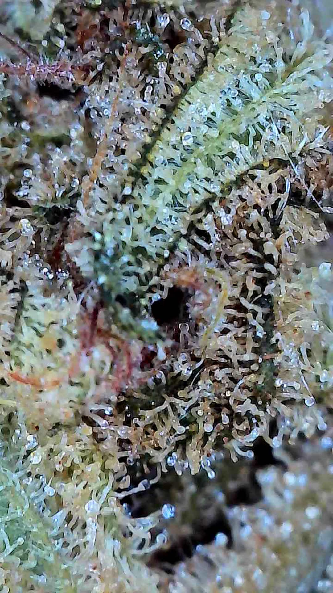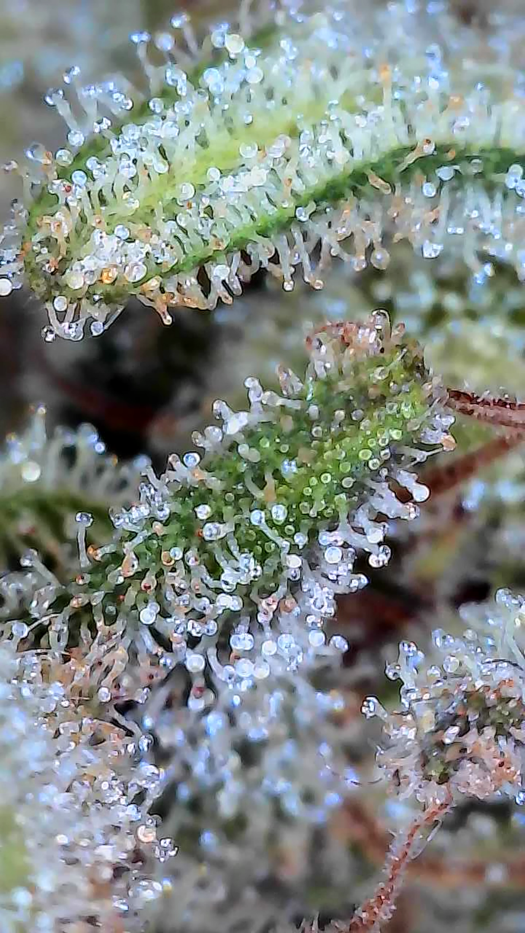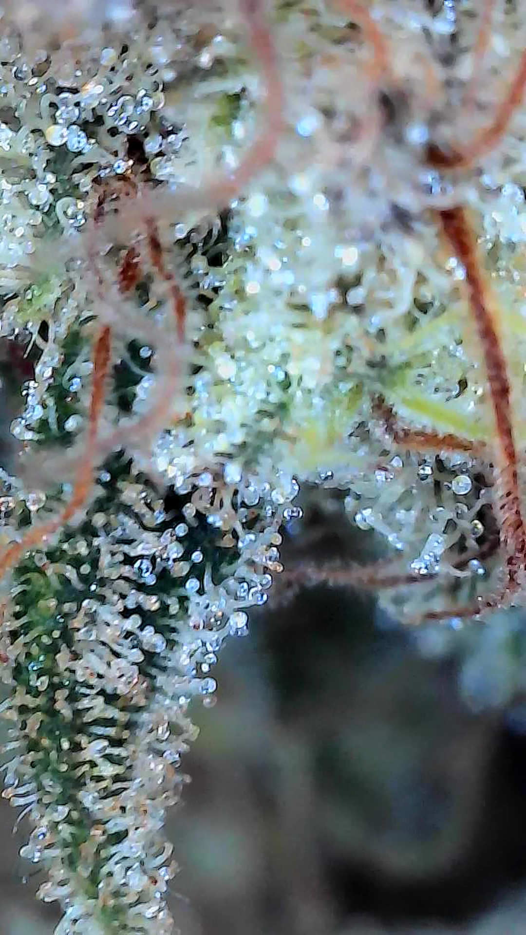 3 pics are from day of harvest, 3 pics are about 36 hours after cutting, and 3 are about 72 hours after. Same bud. Didn't know if anyone has actually observed trichomes develop during the drying and curing process. I'll keep it up dated as time progresses. Notice they are still maturing during the drying process....Something to keep in mind when going by trichome clear, cloudy, amber to gauge harvest window.