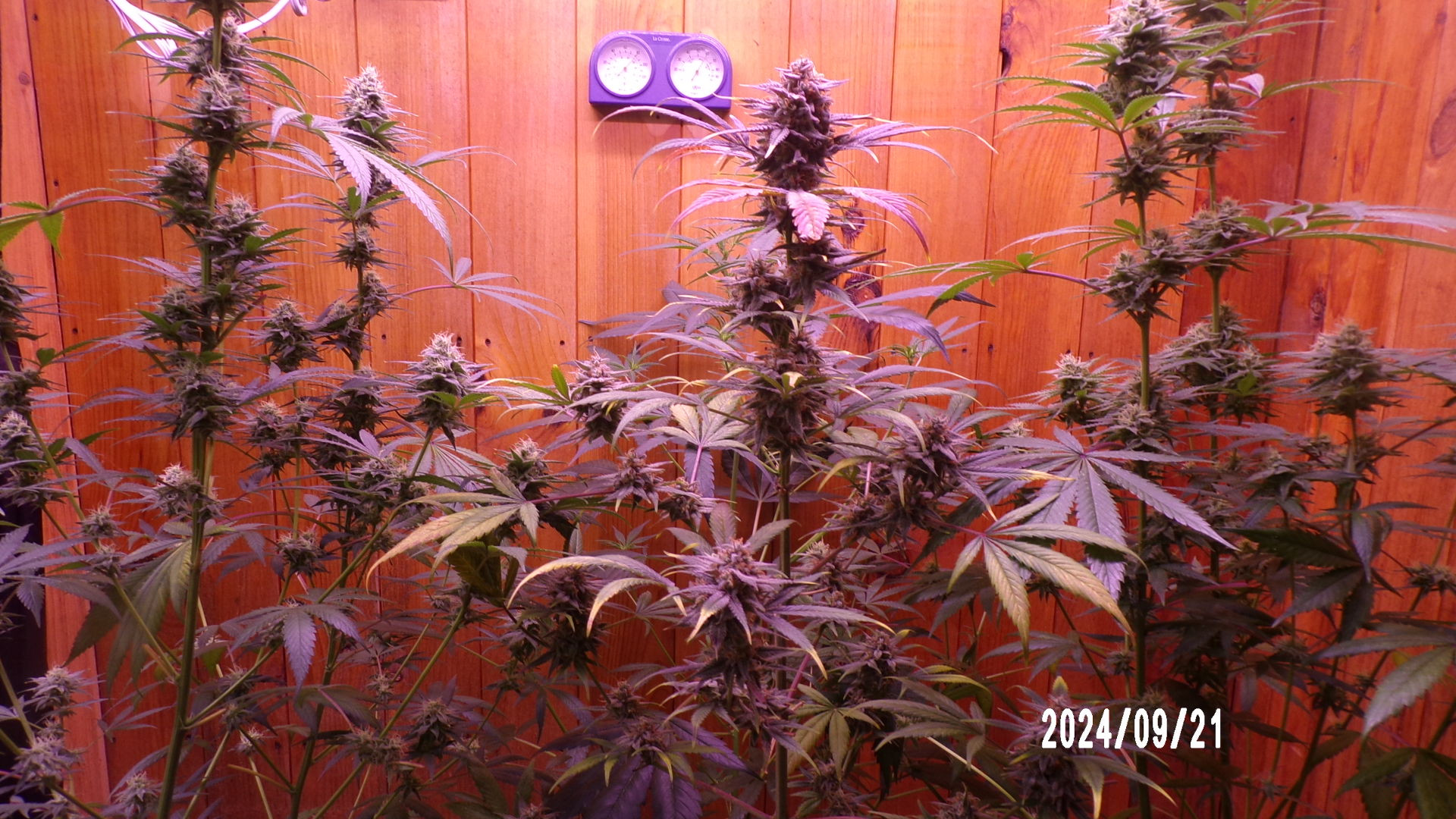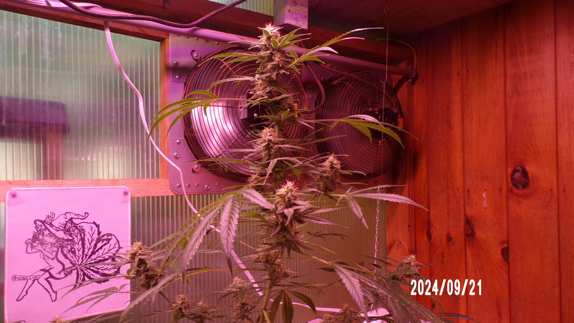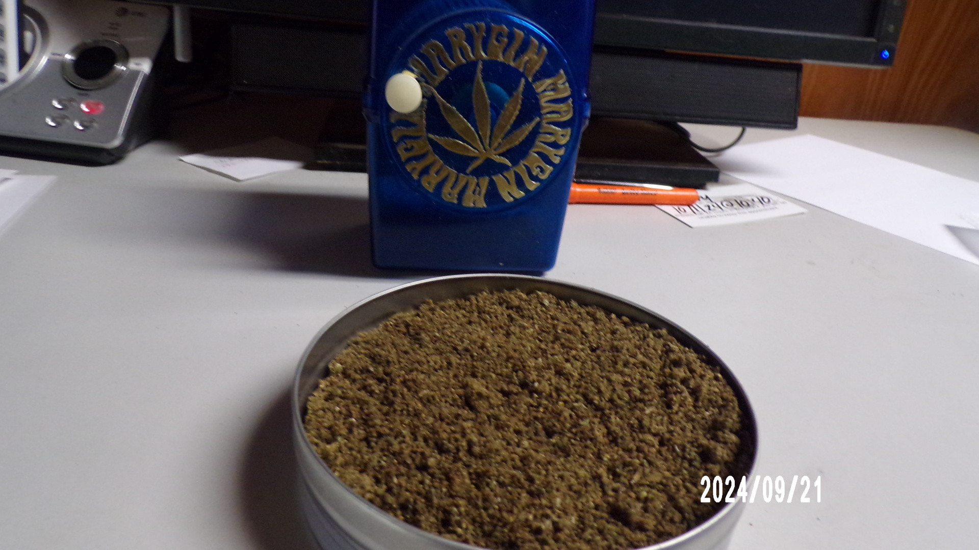 apacin0; I like wood and the blackout curtains are open 12 hrs a day. If anything I need better lights. This is a low budget grow room. I have sativa in the dark room and autoflower on the bench.The tin is my fresh ground, daily relaxer.