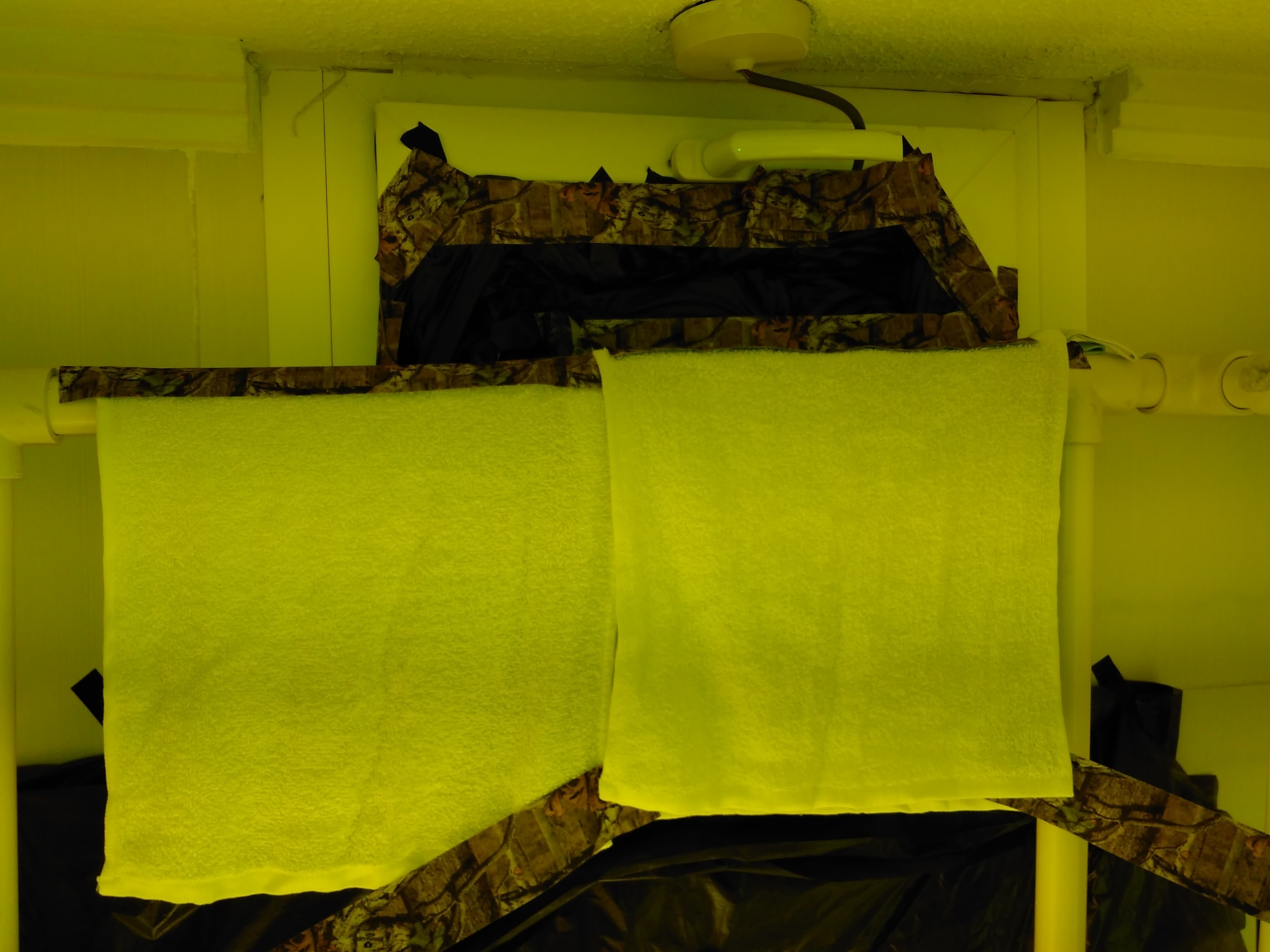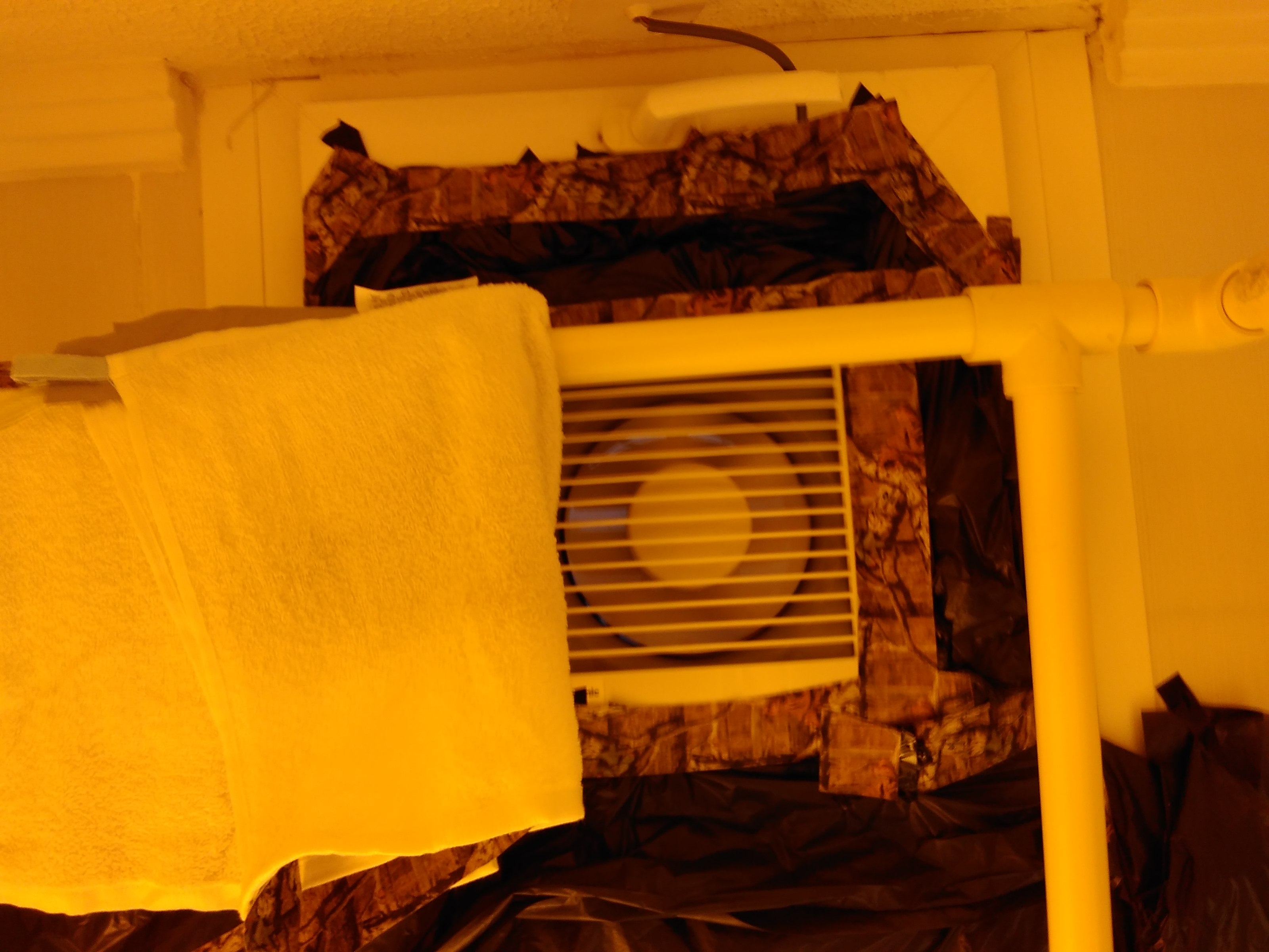 So my exhaust fan used to be set up like this (Notice how the towels are laid out in front of it):