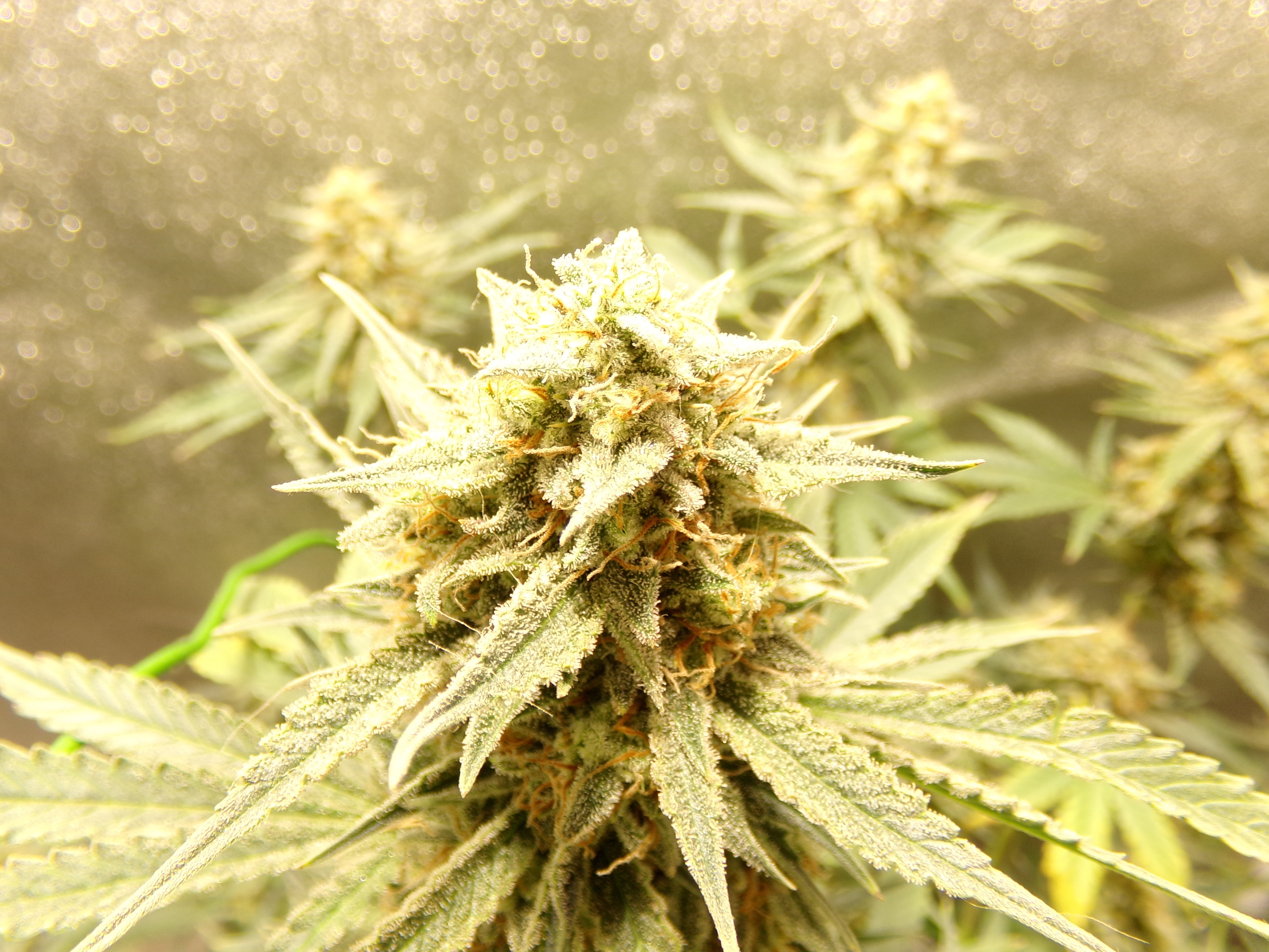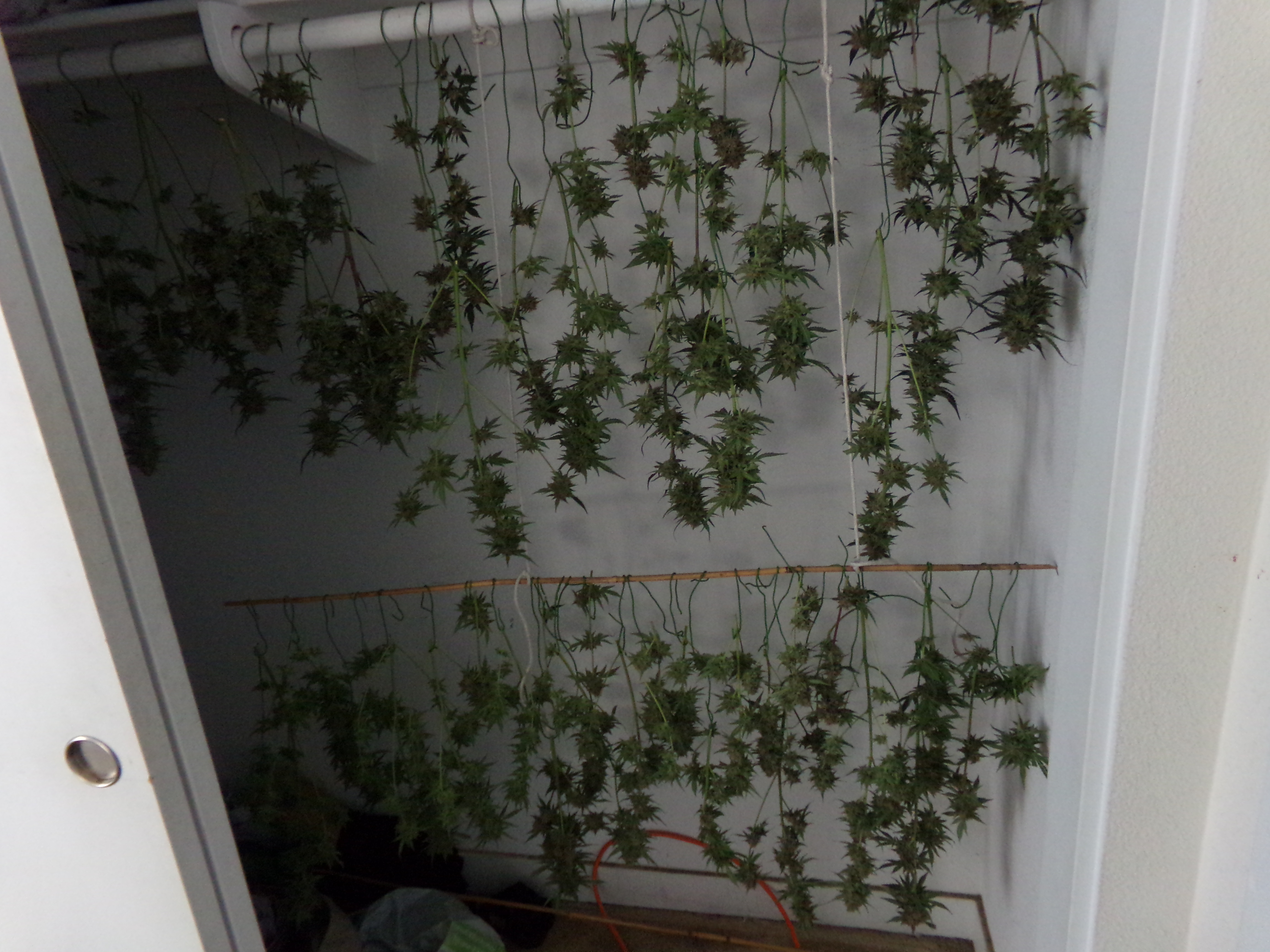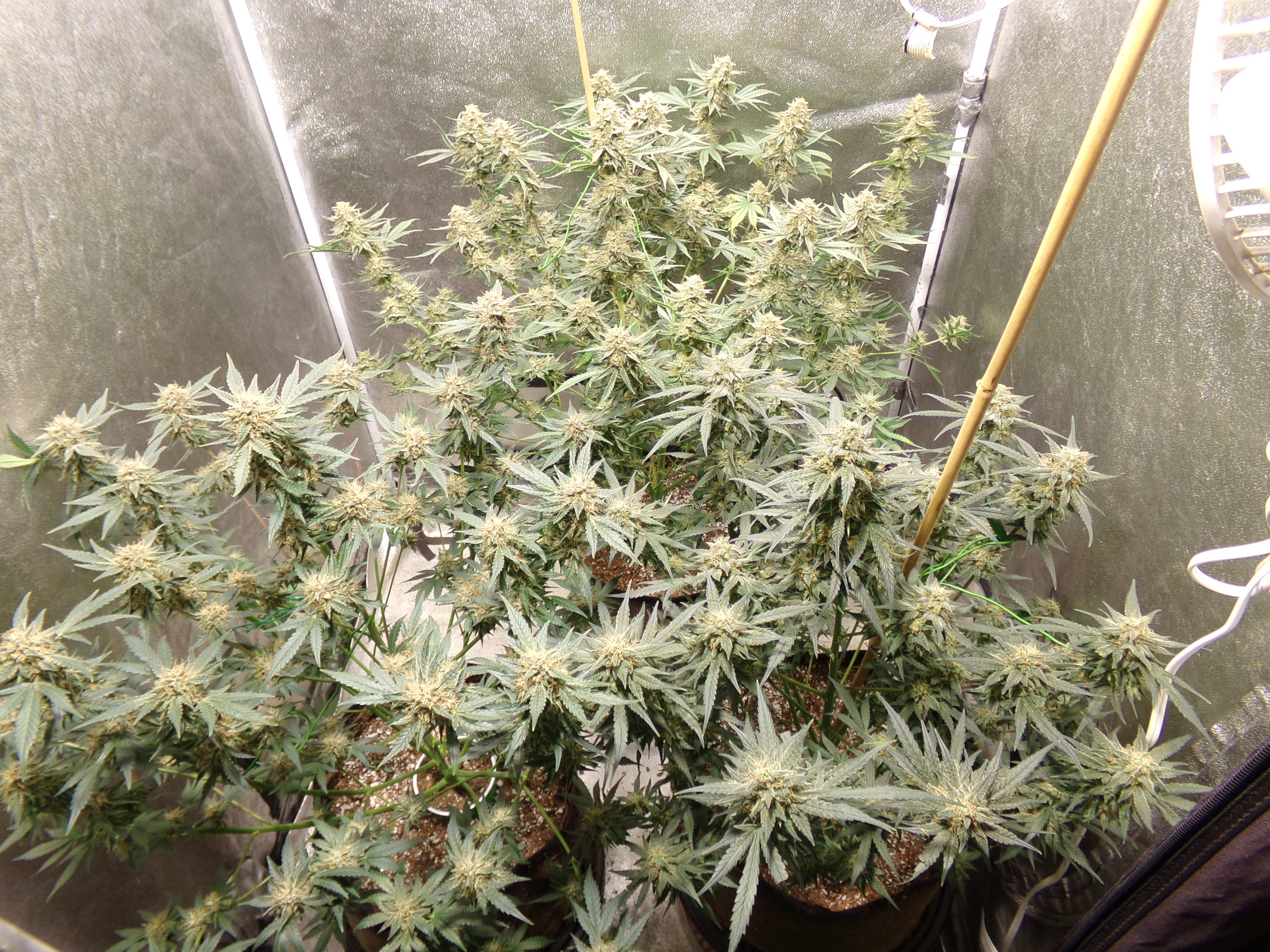 Week 11. The three plants originally filled my tent to capacity. If I still had the first that got harvested too early, I'da been boned. Don't seem to have gotten any pictures of that first. Trim, popcorn, and all other processable trichome baring material came to about 85 grams. See my Hash talk thread. Page six, post 90, is where it begins.​