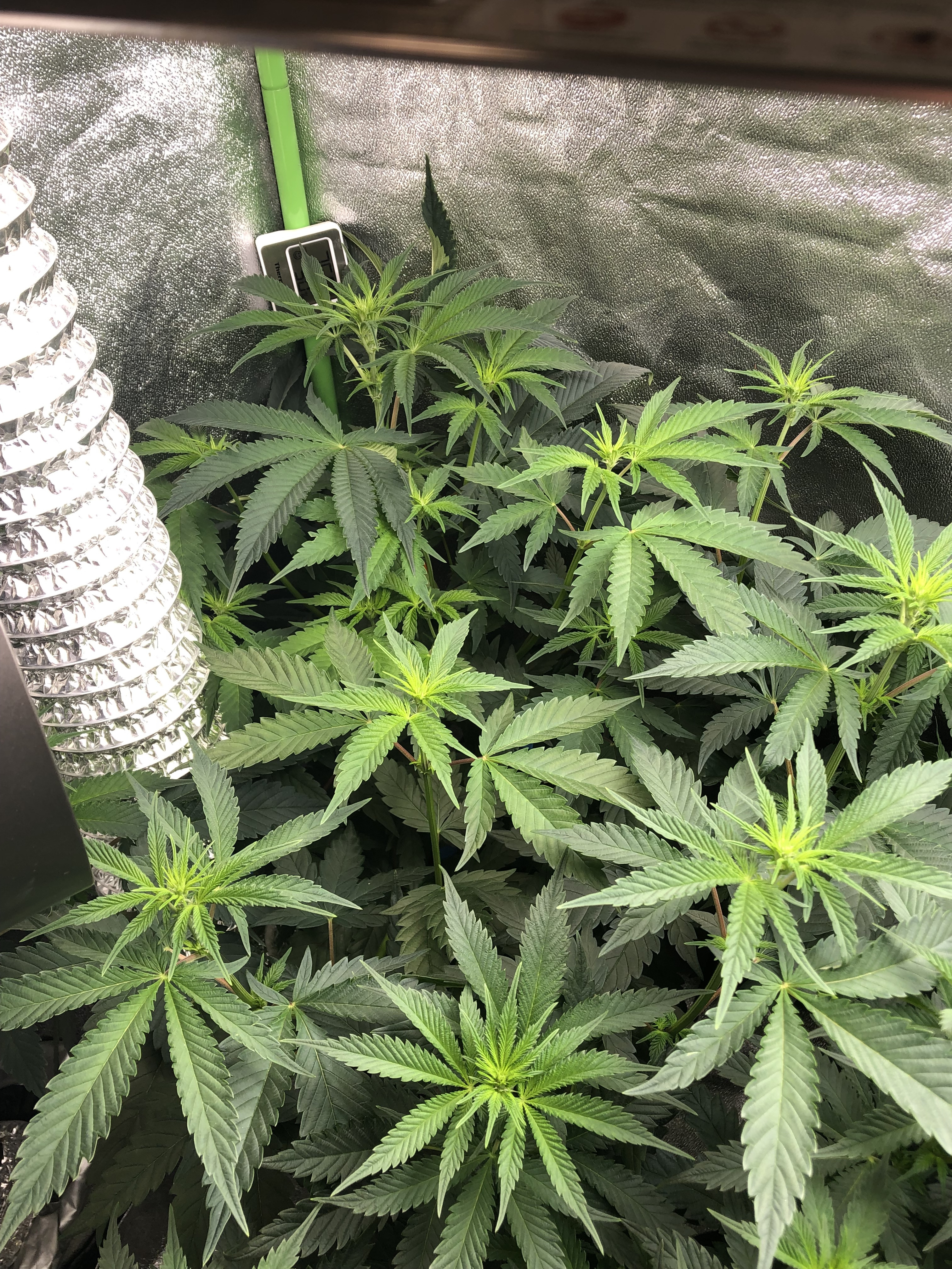 Yeah I’m with ya. I’ve never grown one indoors without training it to some degree. That stubborn pheno 2 I was worried would fall behind but she picked up. The varying heights are a reason a like have multiple 100w leds vs one long 300w. Imma add some training wire to the taller ones to hold them down.