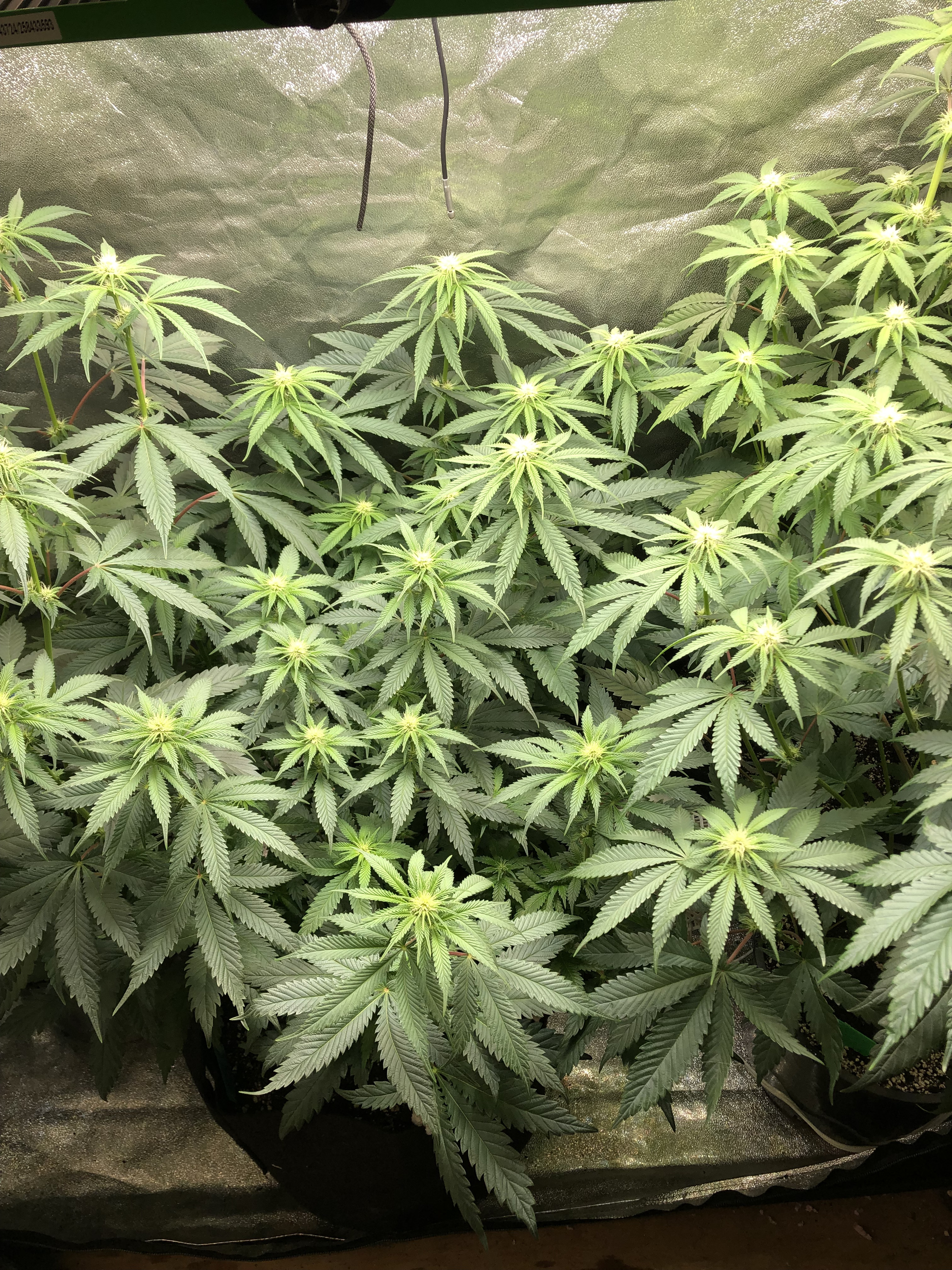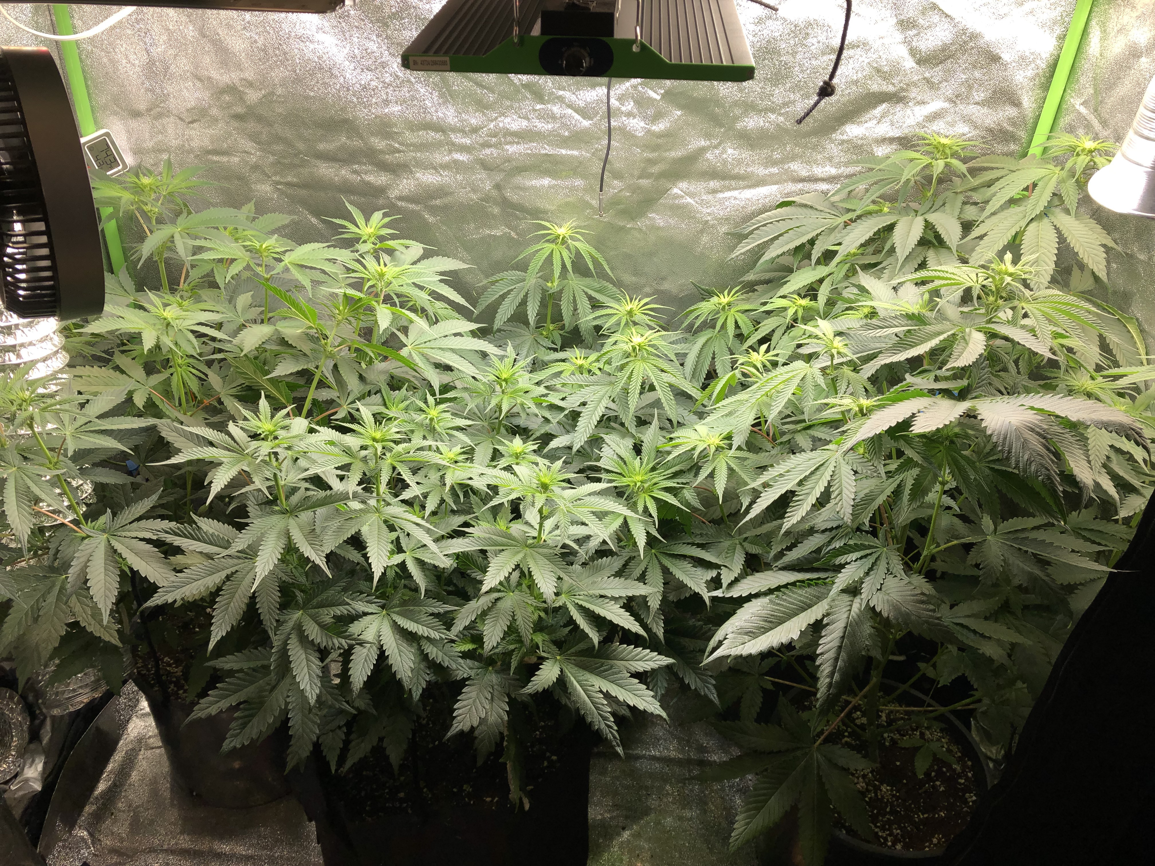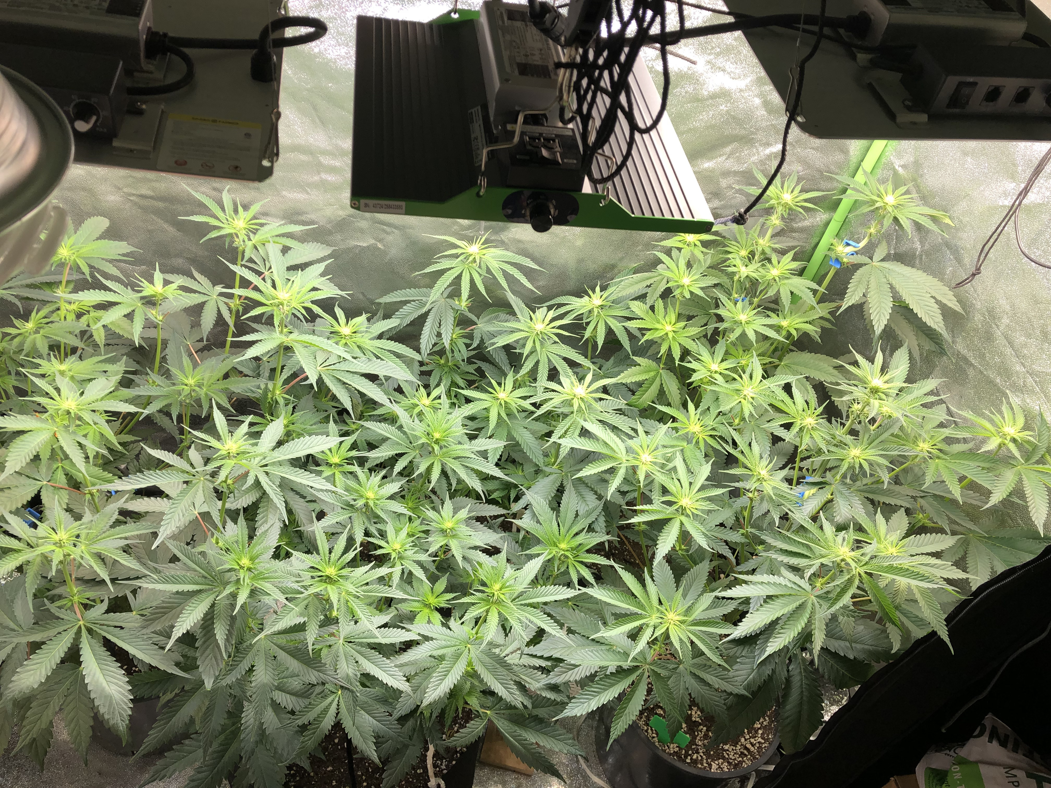 Happy Friday everyone! The T20 girls are looking great! They are almost 2 weeks after the flip, and ready for a defoliation this weekend. The 3 gallons are drinking more than the 5’s but measuring by size, health, bud sites, etc I see no difference in the plants. I am enjoying the water only, organic dry amendments thus far too. It’s go time though and I hope they can ride the stretch staying healthy. Pics from last night.