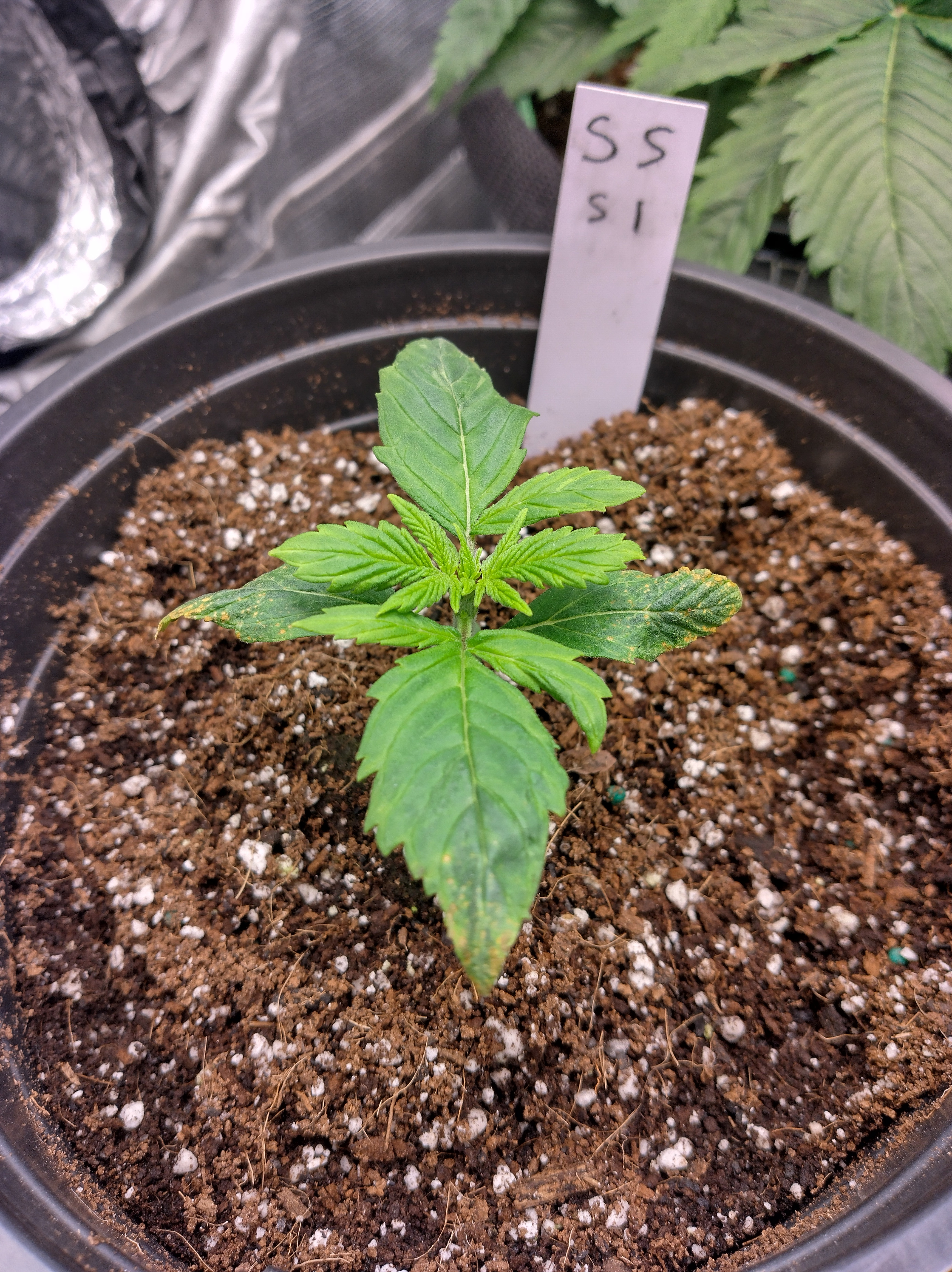 The OZ S1 Franklin is up to 6 nodes and 8 inches tall. Transplanted and doing well. Fat leaves