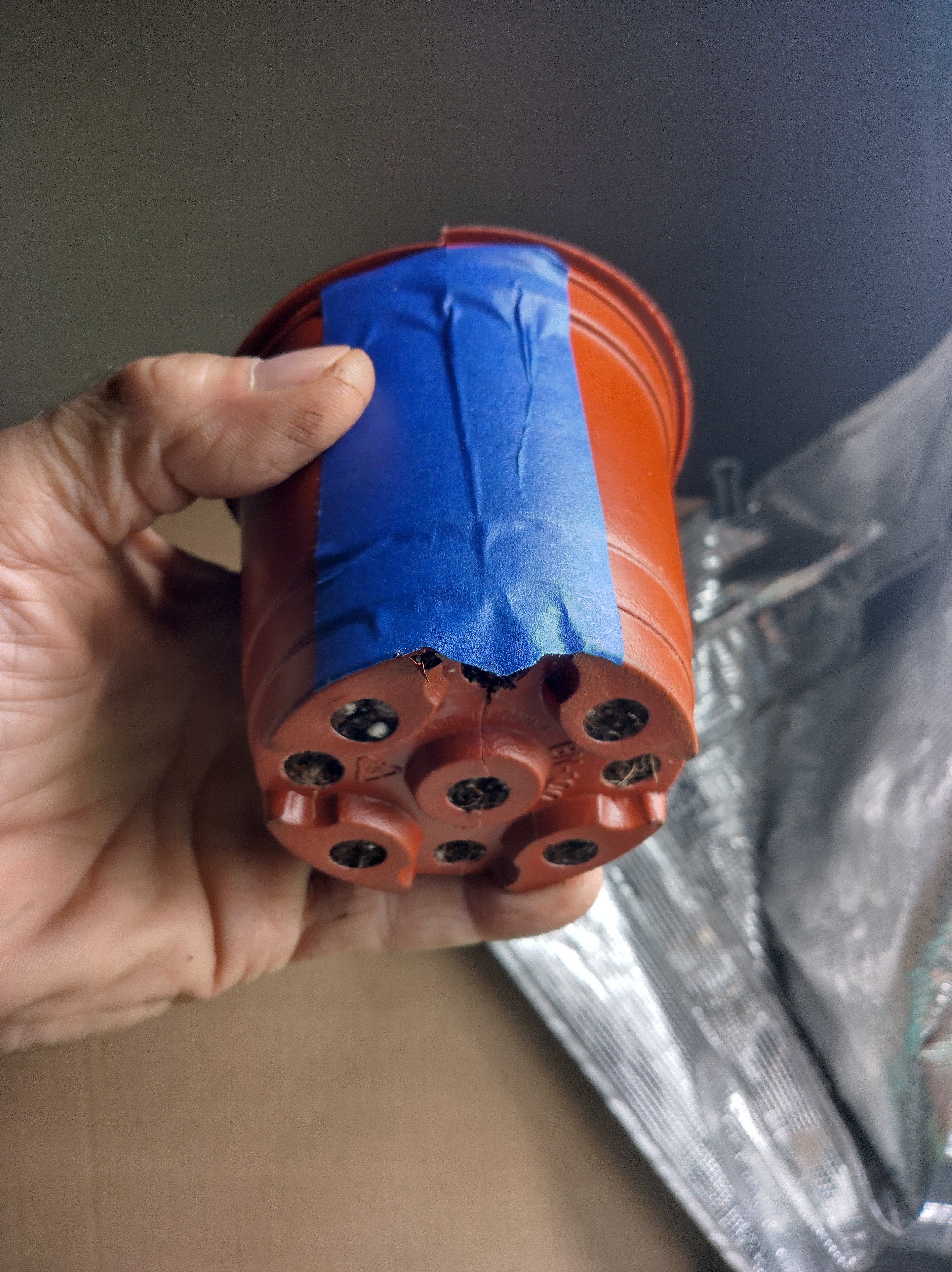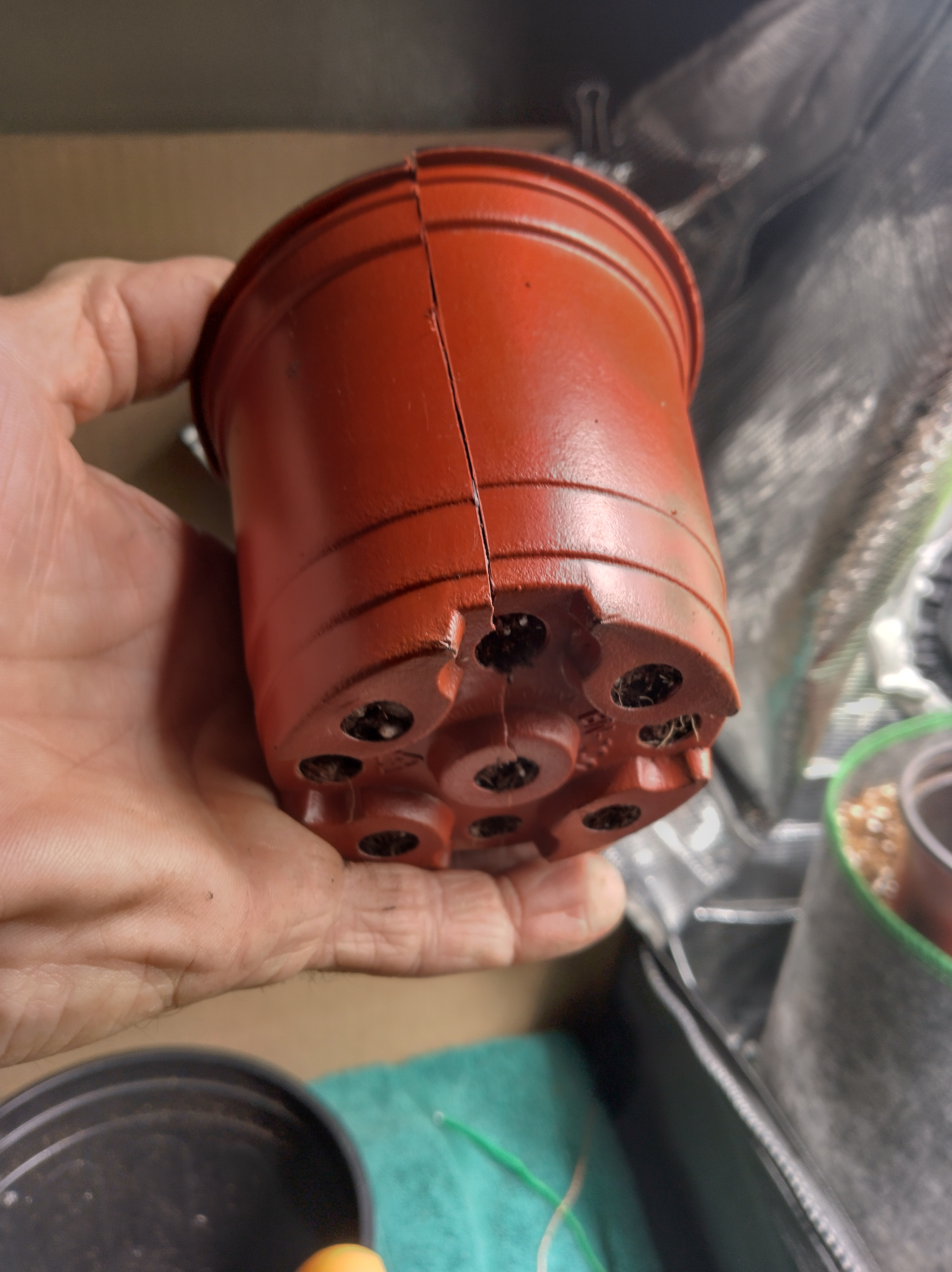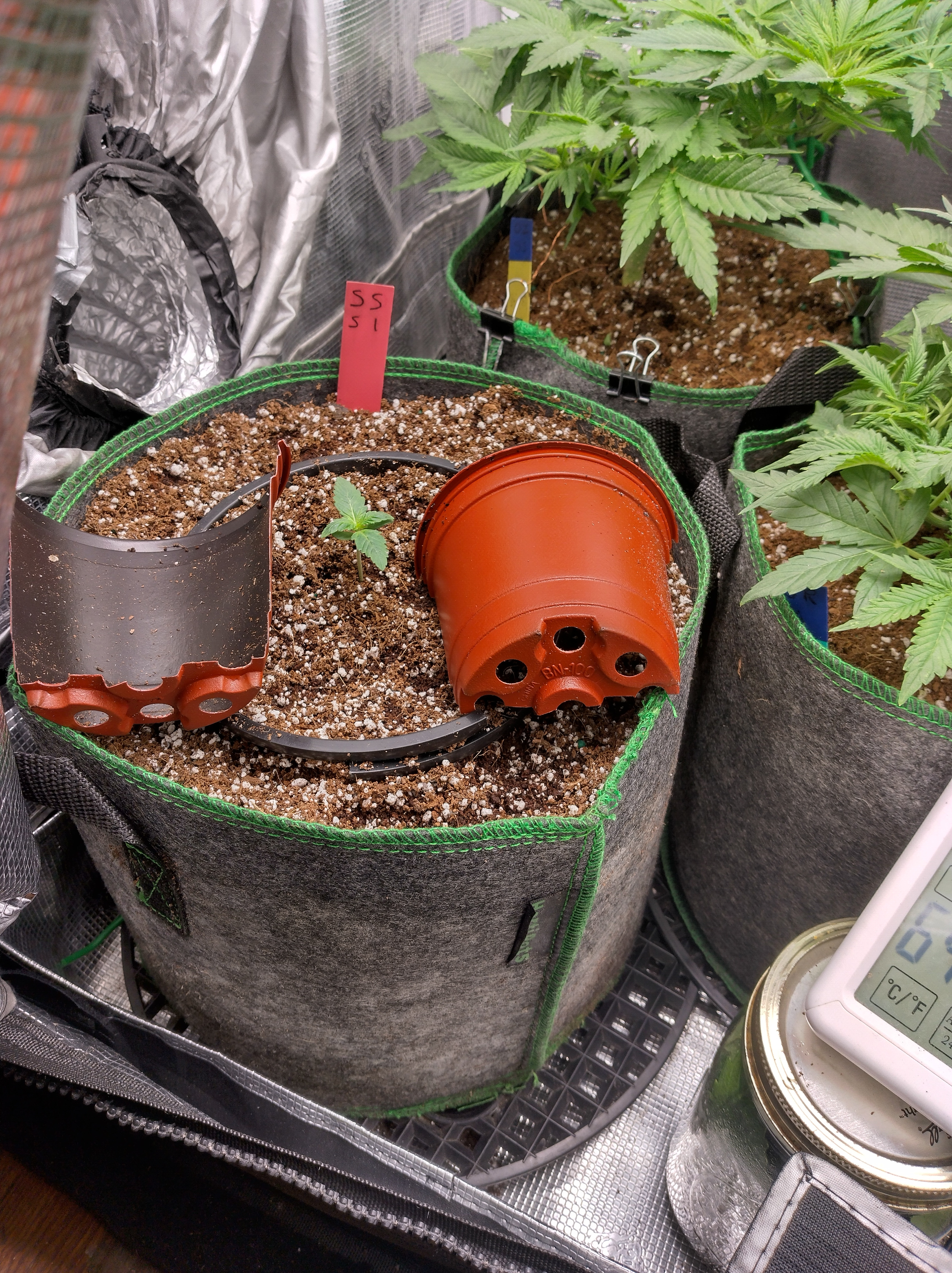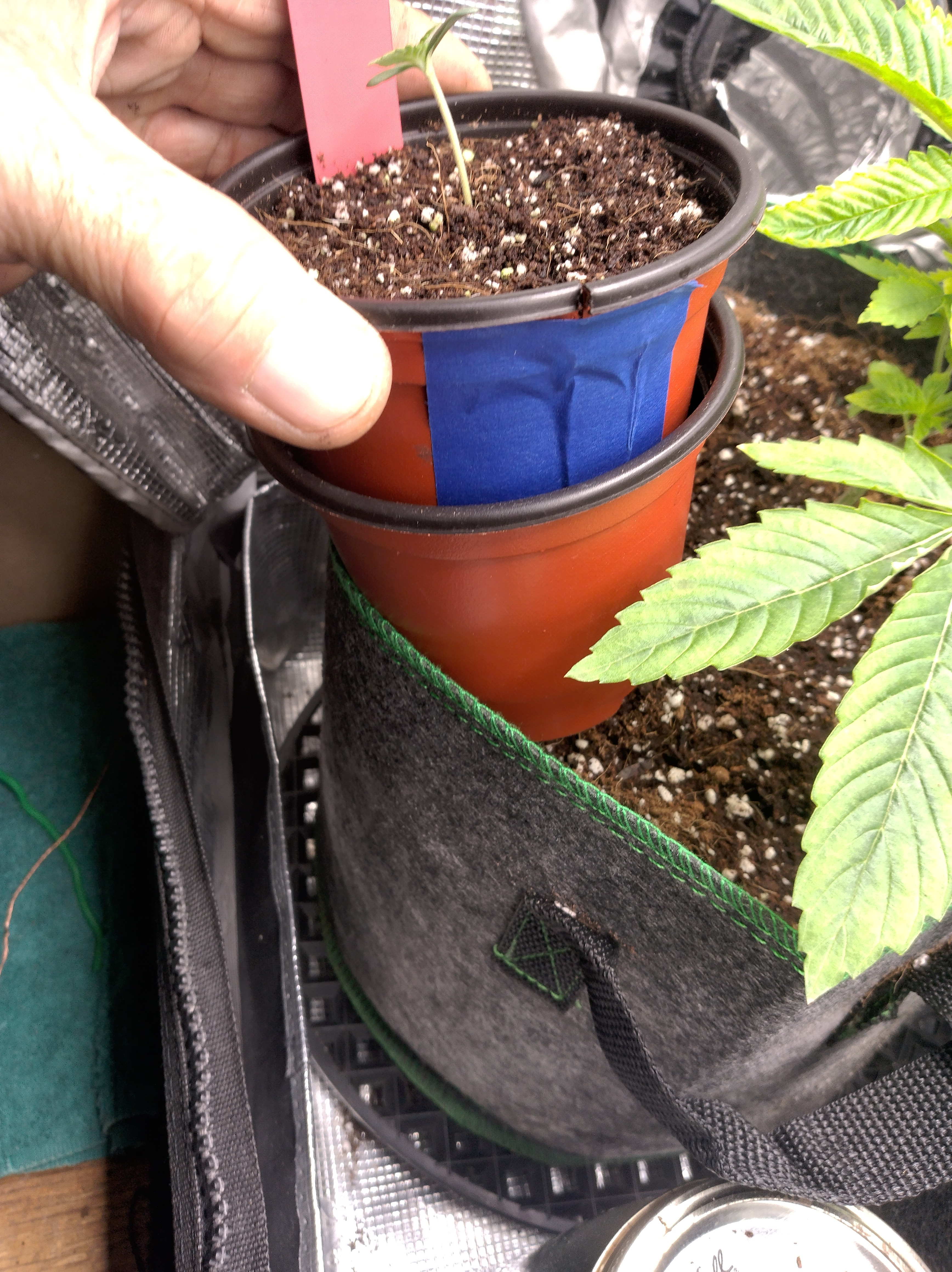 I cut the bottom out of small planter cups and down the sides and re tape with paper tape before I put in the substrate and seedling. After germination I wet it down good to keep all the substrate together when I take it apart to transplant. Works fairly well. I tend to drown seedlings in 3 or 5 gallon pots every time!! If I could just buy clones already past this stage I surely would. Prohibition sux asre