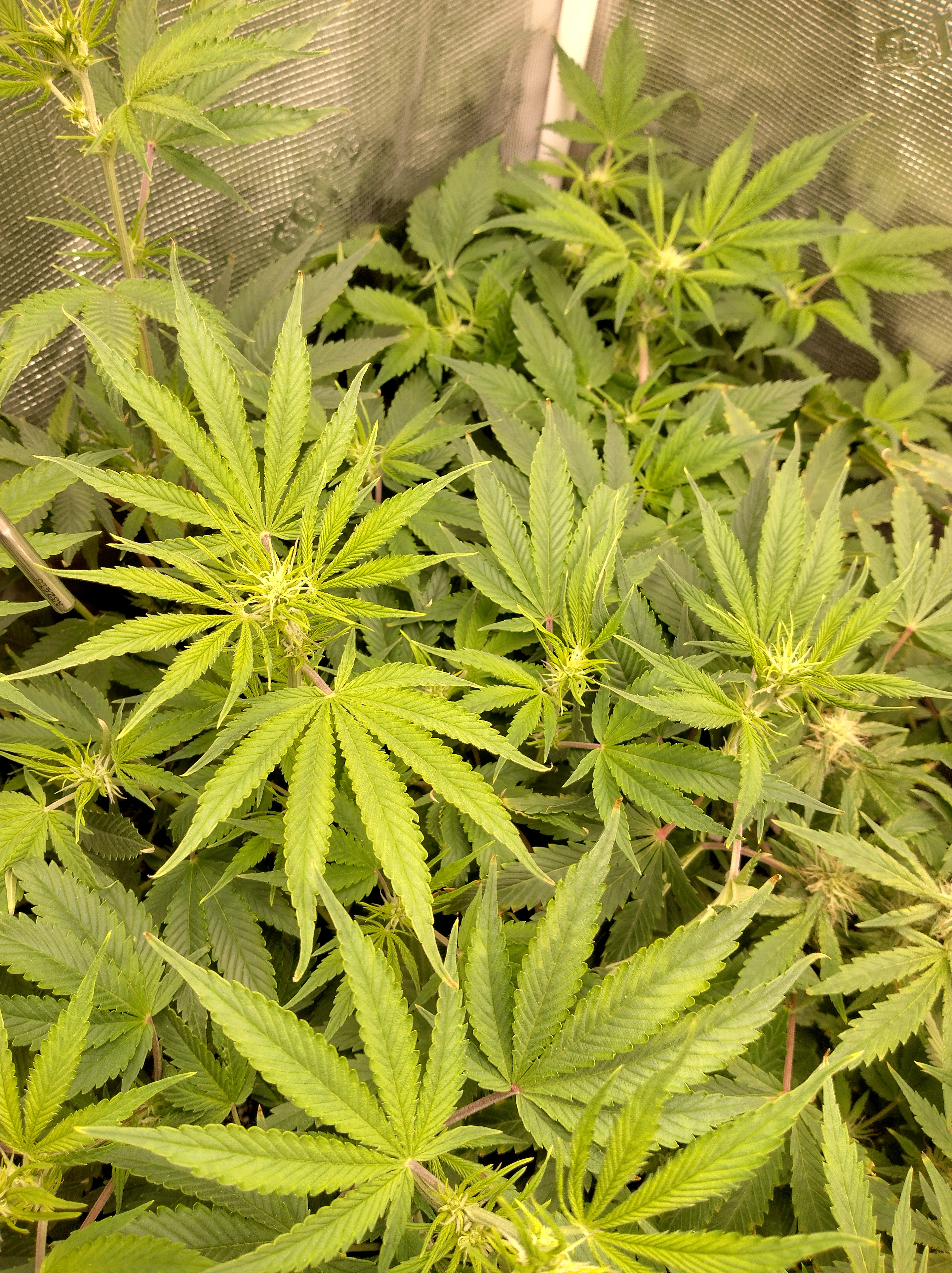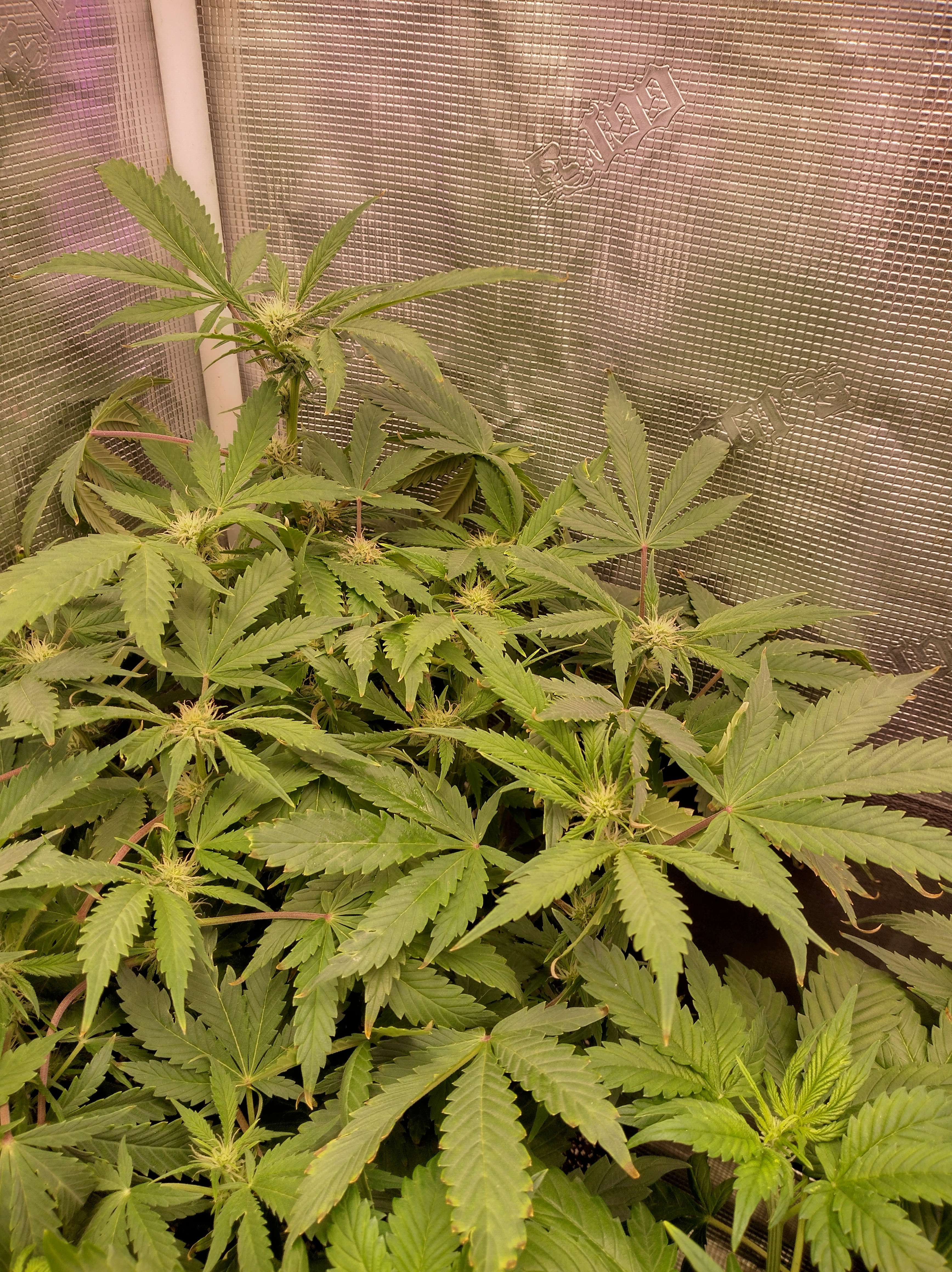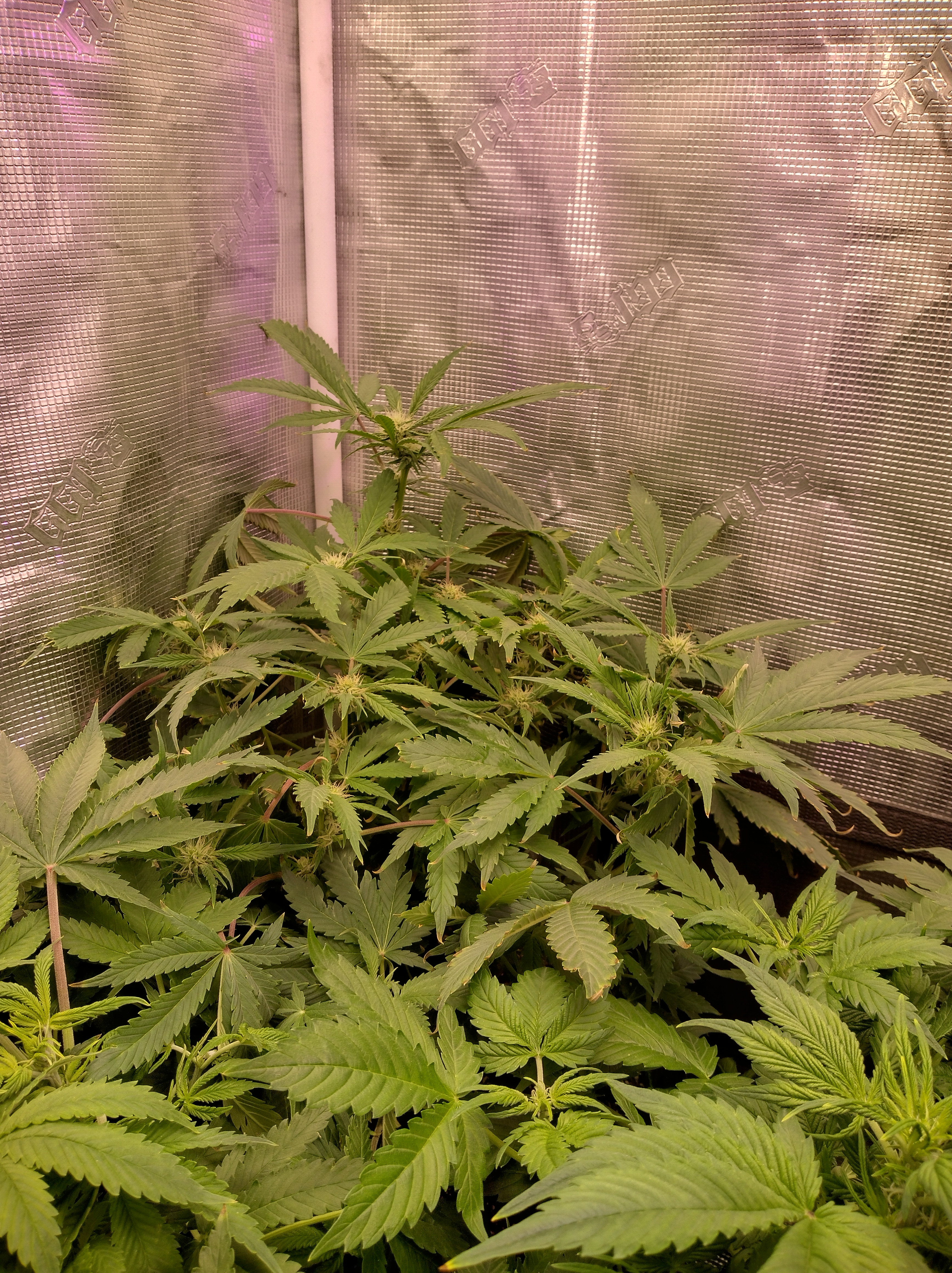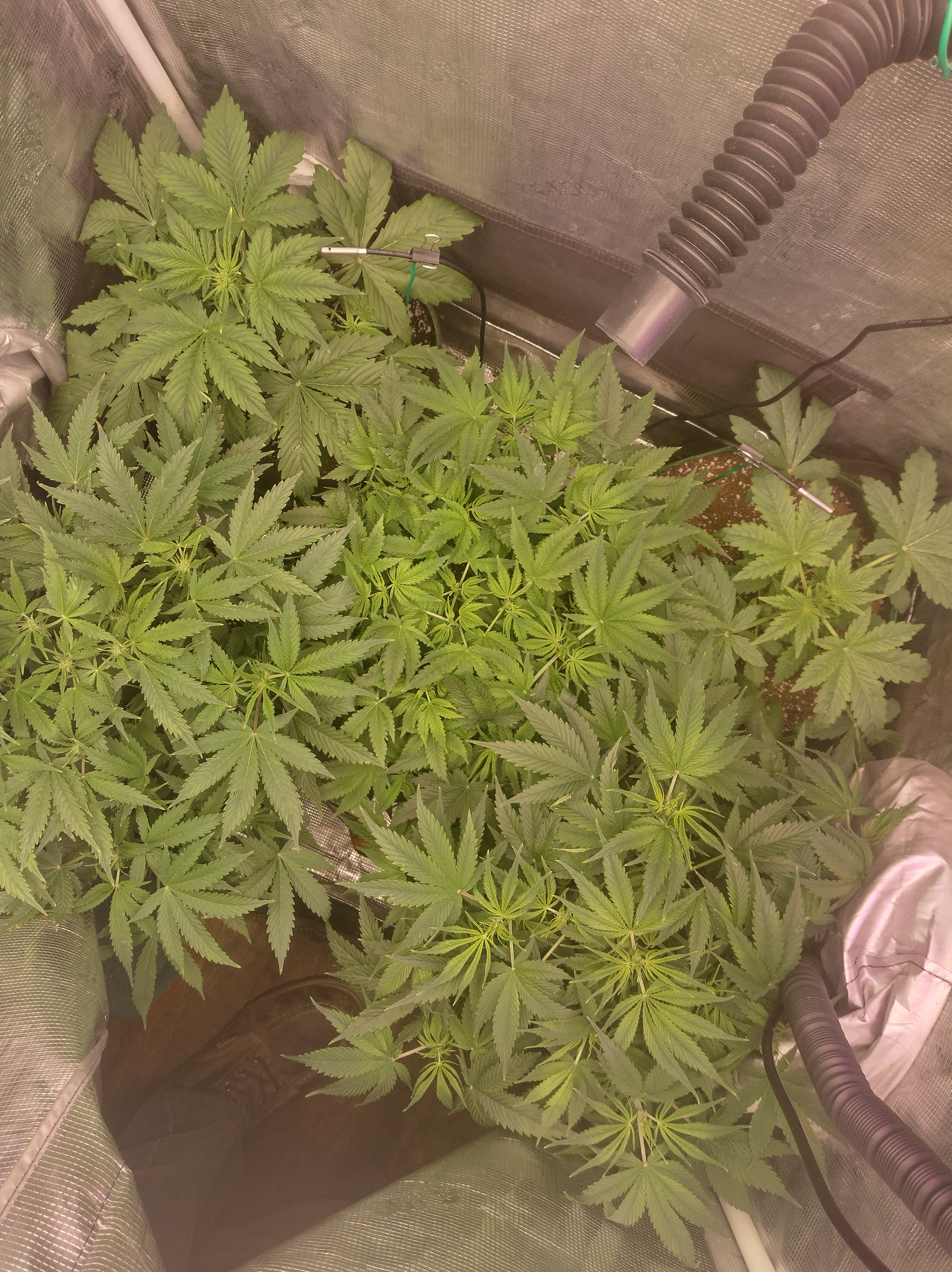 Got flowers on all 5 now. Pics in order are Going2fast Scarlet Sun S1 PIC 1 and 2 are about 1 week apart. Scarlet Runts PIC 3 and 4 are (OZ S1) Orange Barb and Zikittles S1Franklin Pic 6 is a crowded tent for sure. It smells like a Avon perfume counter in my bedroom from time to time.
